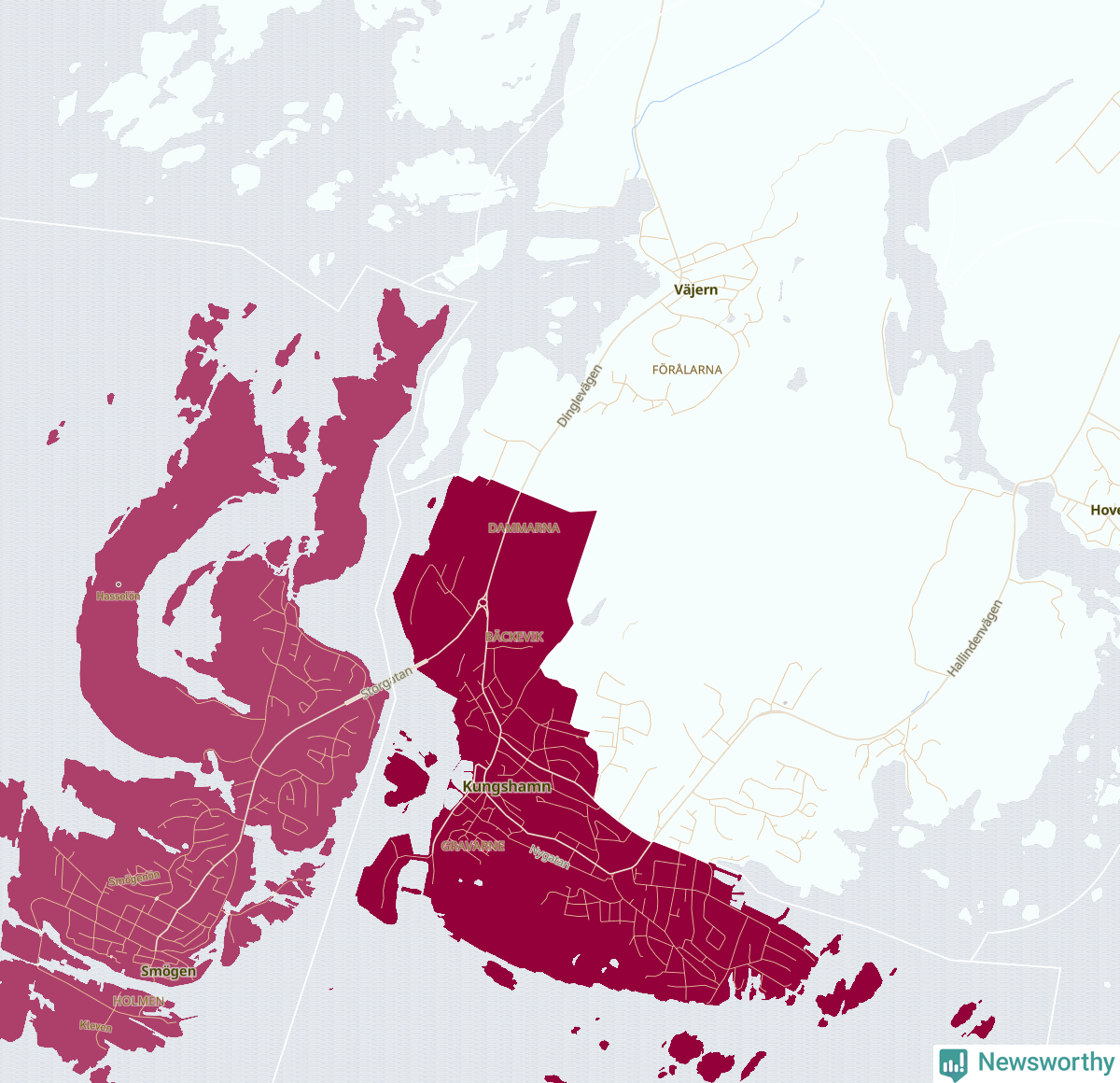 Skillnaderna mellan olika områden i Sotenäs är relativt små. Det visar data för de senaste fem åren, som Newsworthy begärt ut från polisen. De anmälda stölderna har kopplats till SCB:s fem statistiska områden i kommunen. Det rör sig om mellan en handfull och ett tjugotal anmälda stölder per område.