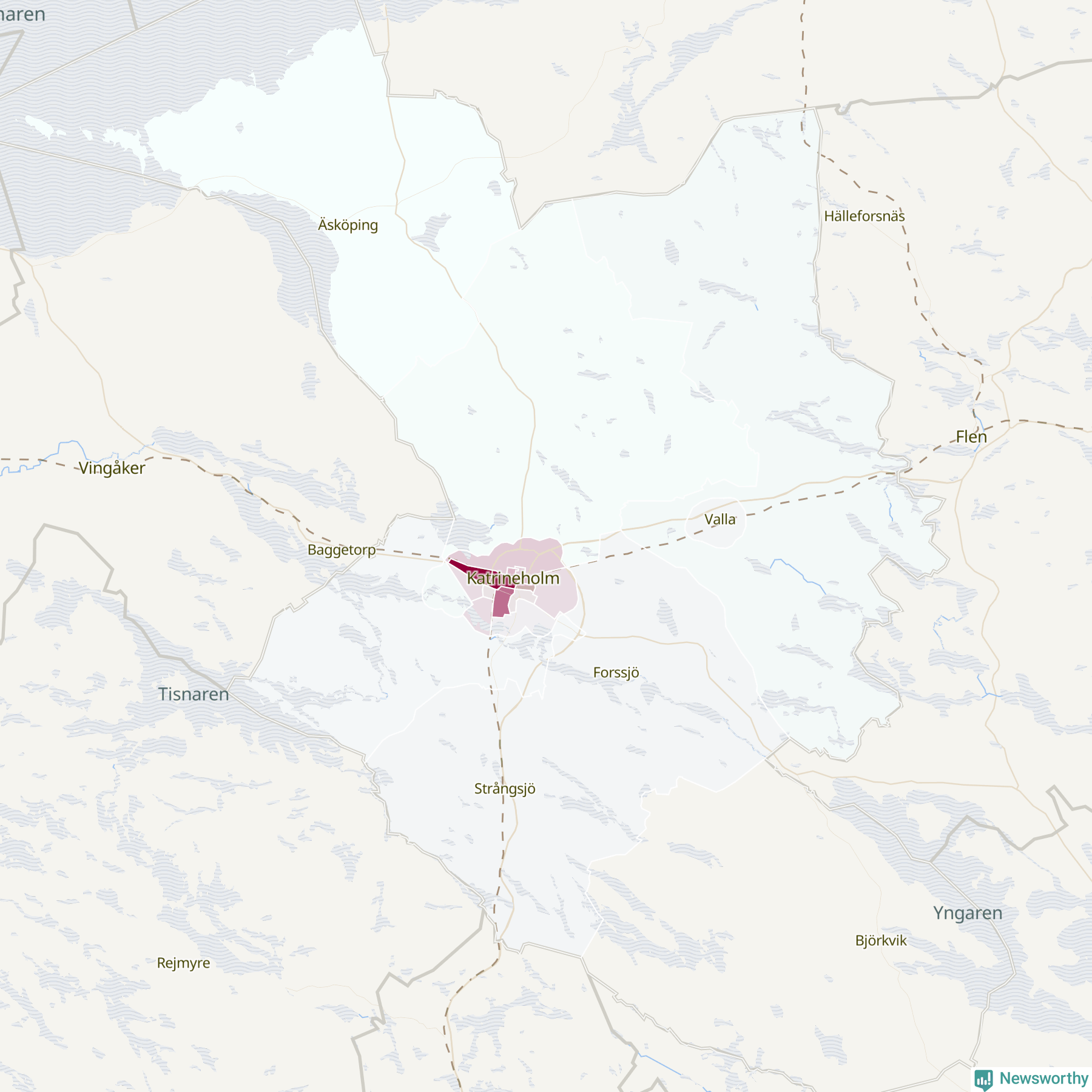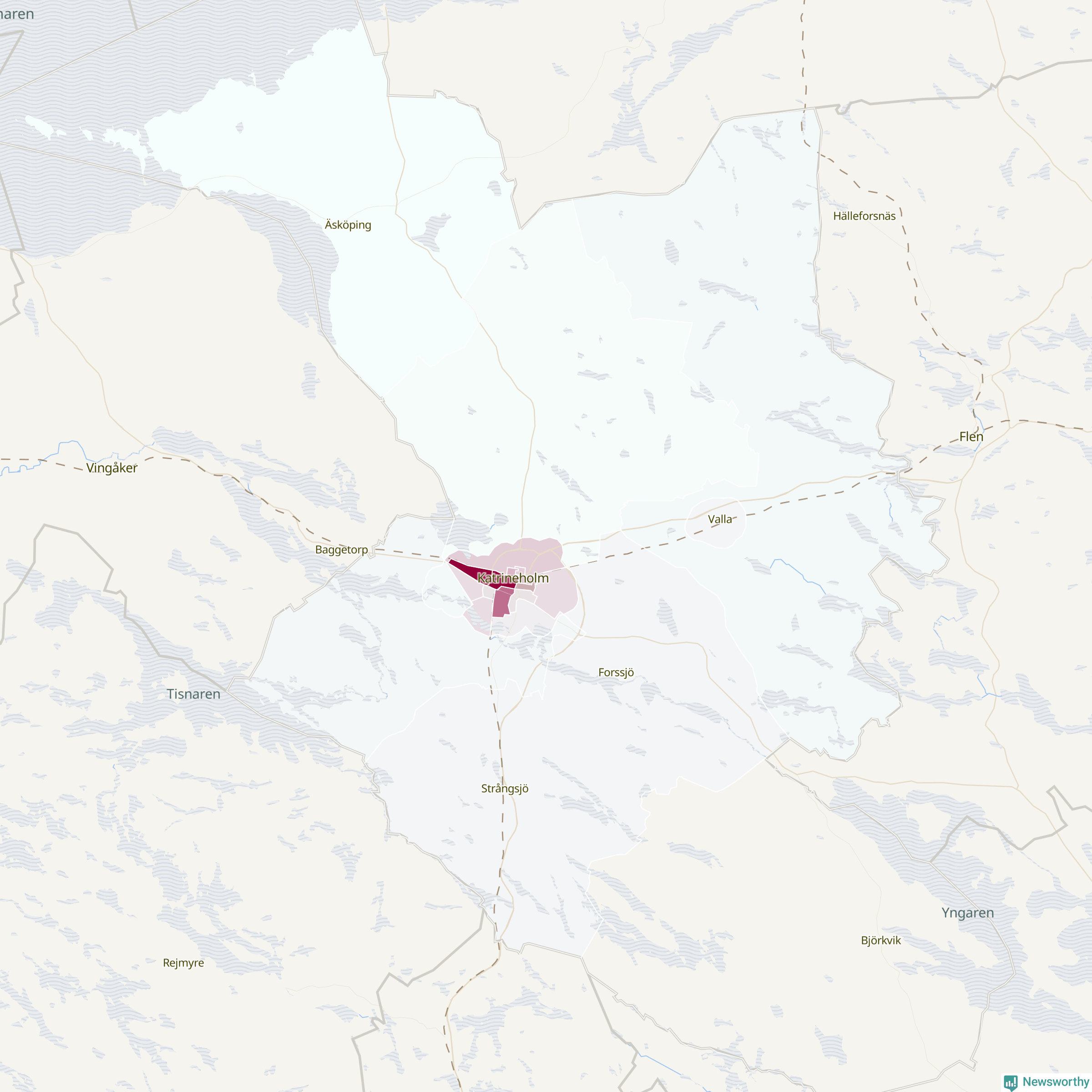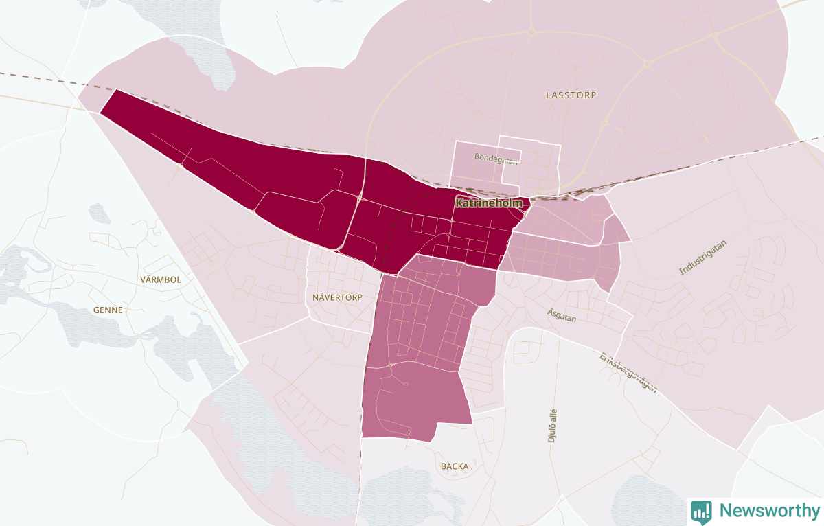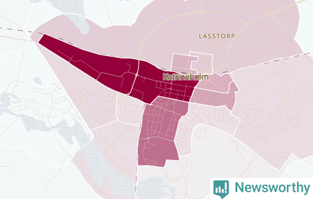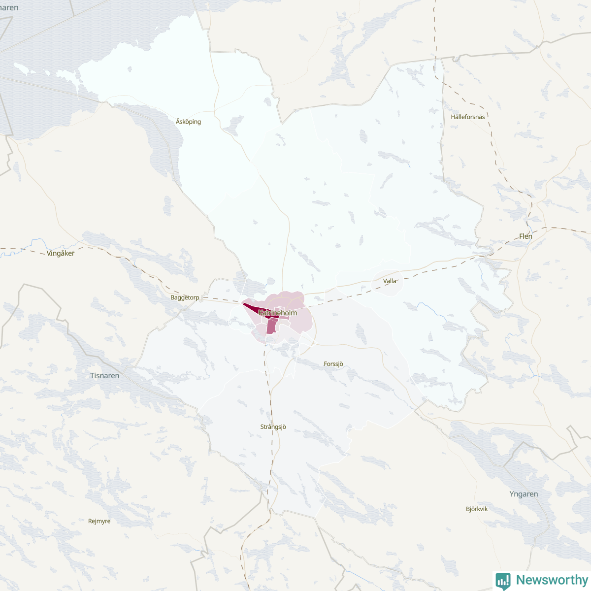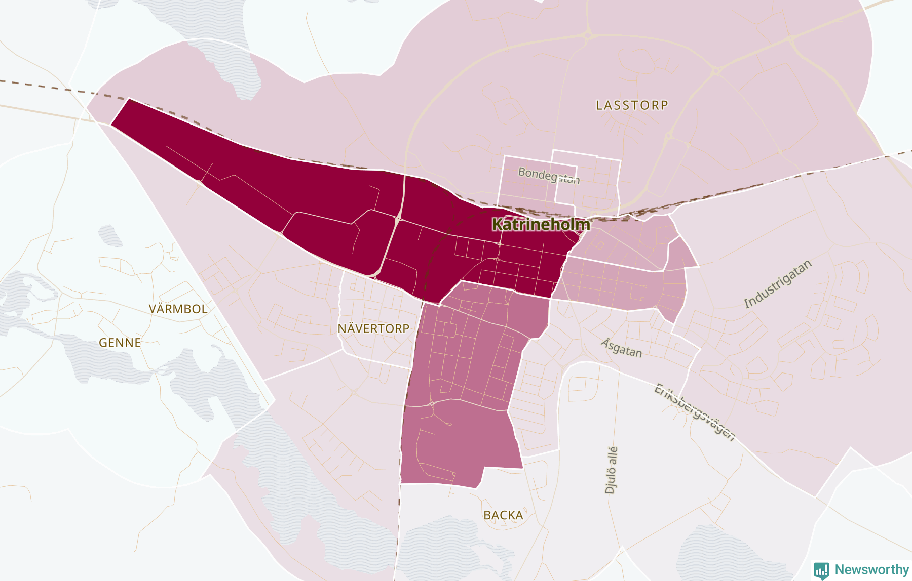 Men alla delar av Katrineholm är inte lika hårt drabbade. Det visar data för de senaste fem åren, som Newsworthy begärt ut från polisen. De anmälda stölderna har kopplats till SCB:s 21 statistiska områden i kommunen. I ett område finns inga cykelstölder registrerade, men i de övriga rör det sig om mellan en handfull och drygt 100 anmälda stölder per område.