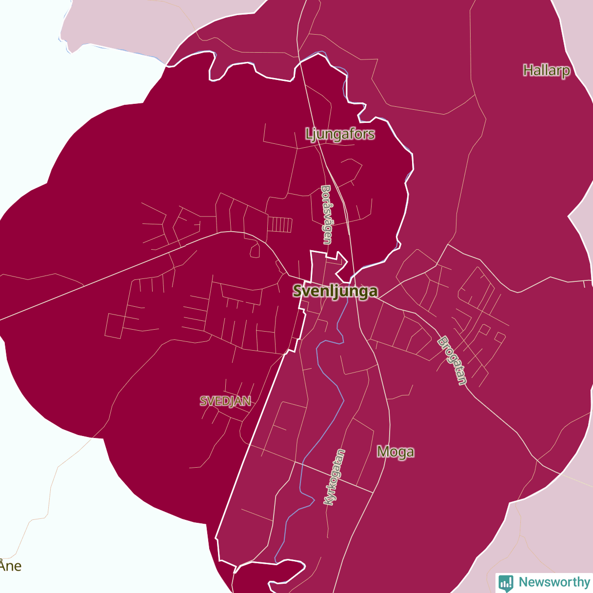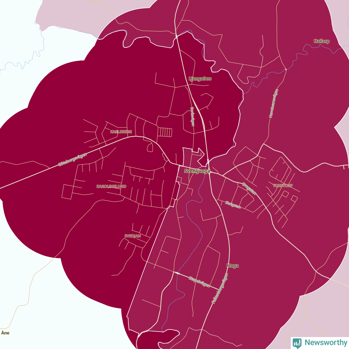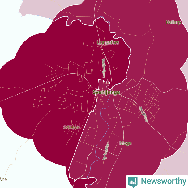 Skillnaderna mellan olika områden i Svenljunga är relativt små. Det visar data för de senaste fem åren, som Newsworthy begärt ut från polisen. De anmälda stölderna har kopplats till SCB:s sex statistiska områden i kommunen. Det rör sig om mellan en handfull och ett tjugotal anmälda stölder per område.