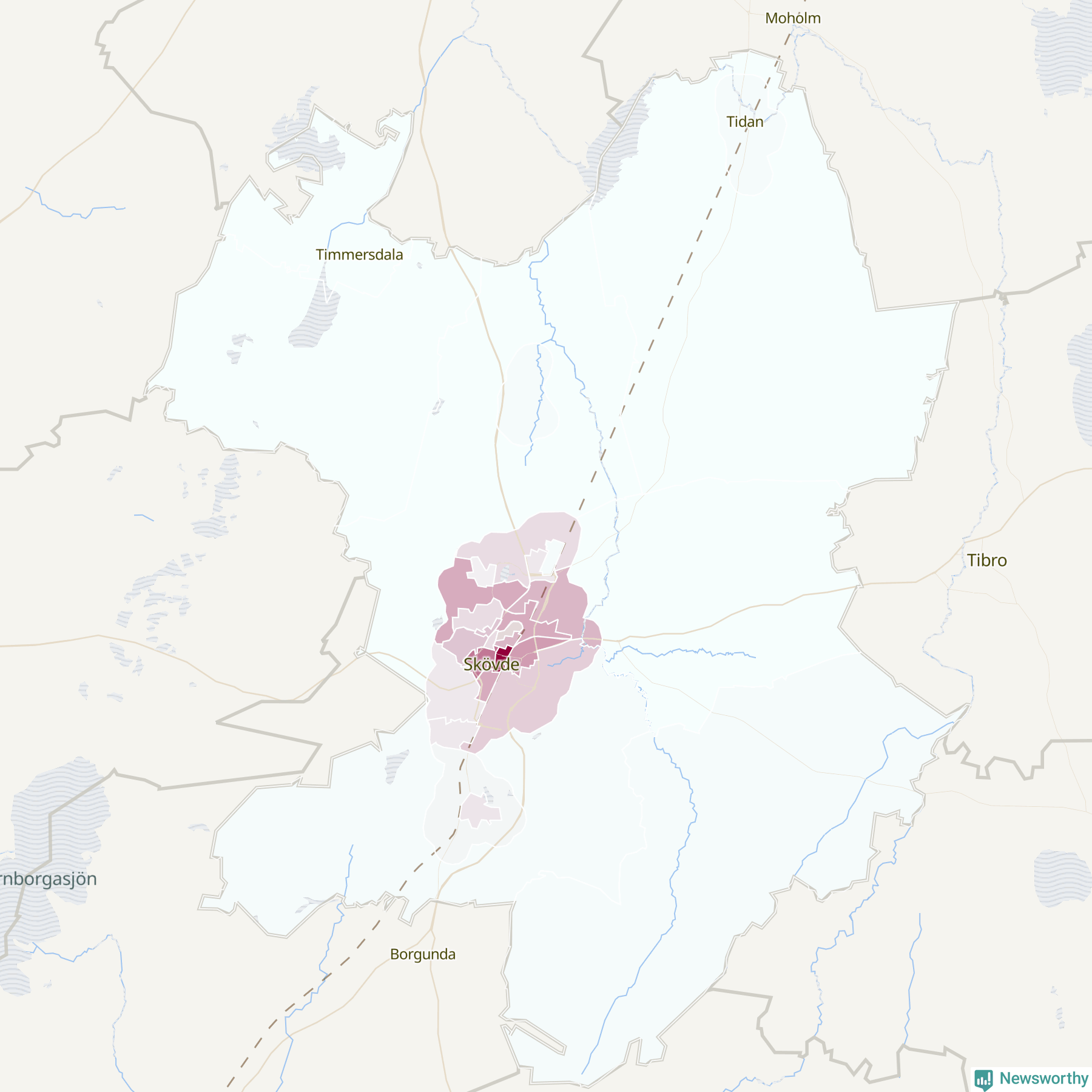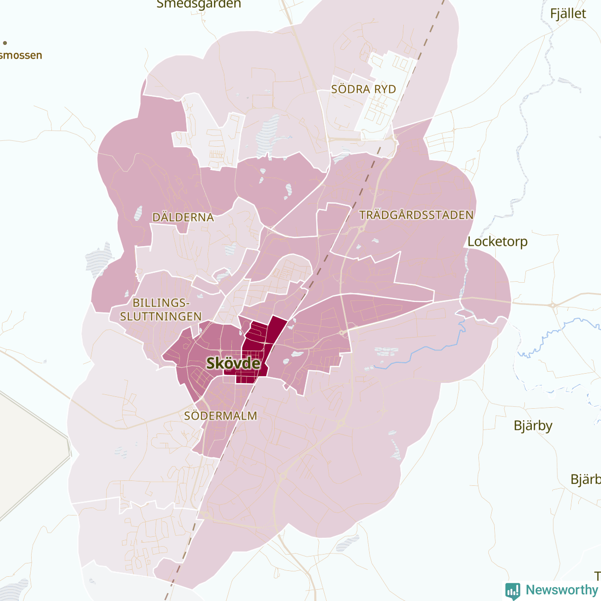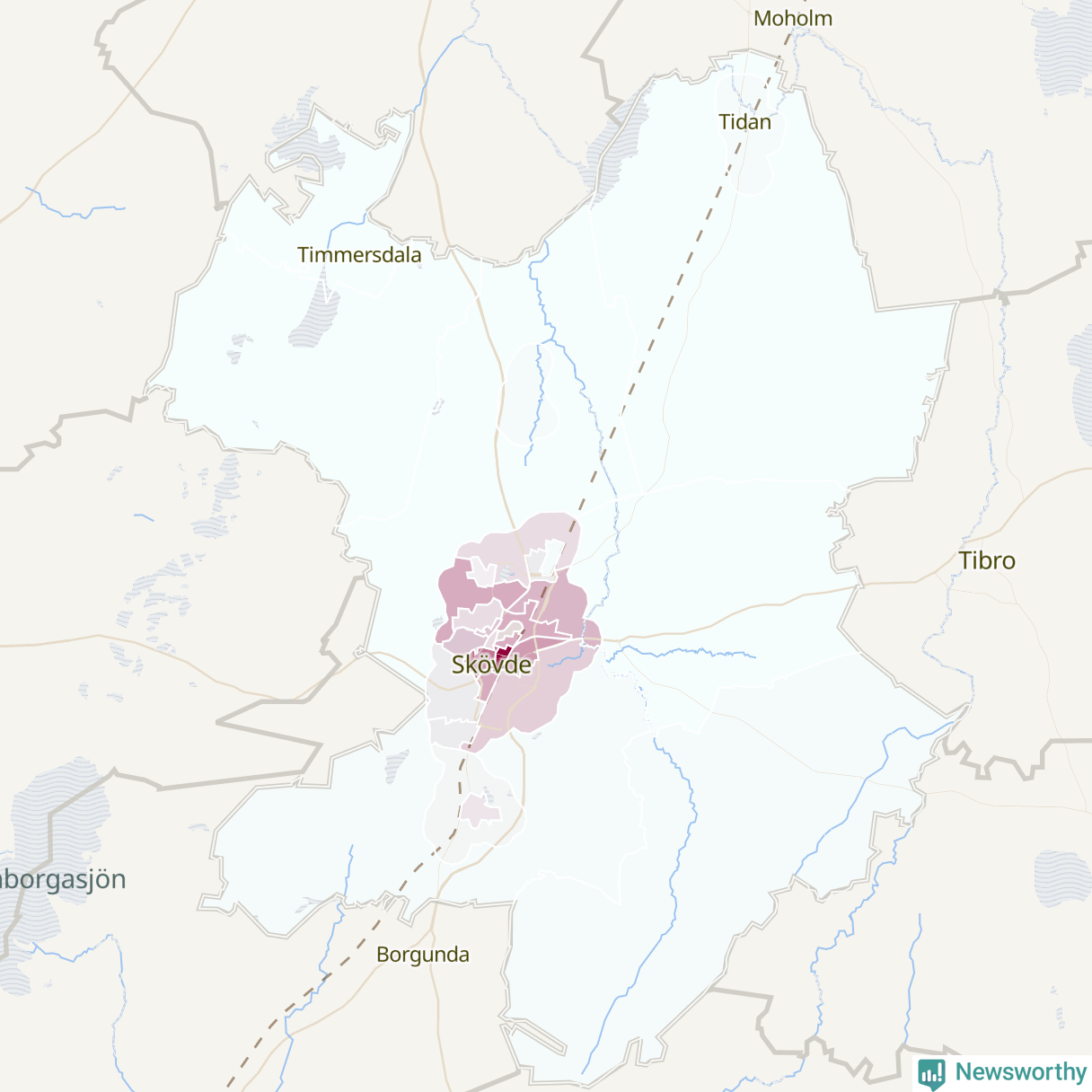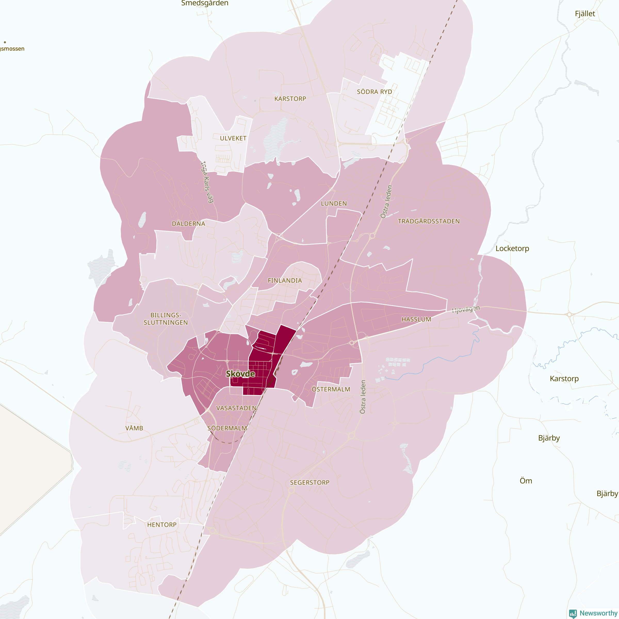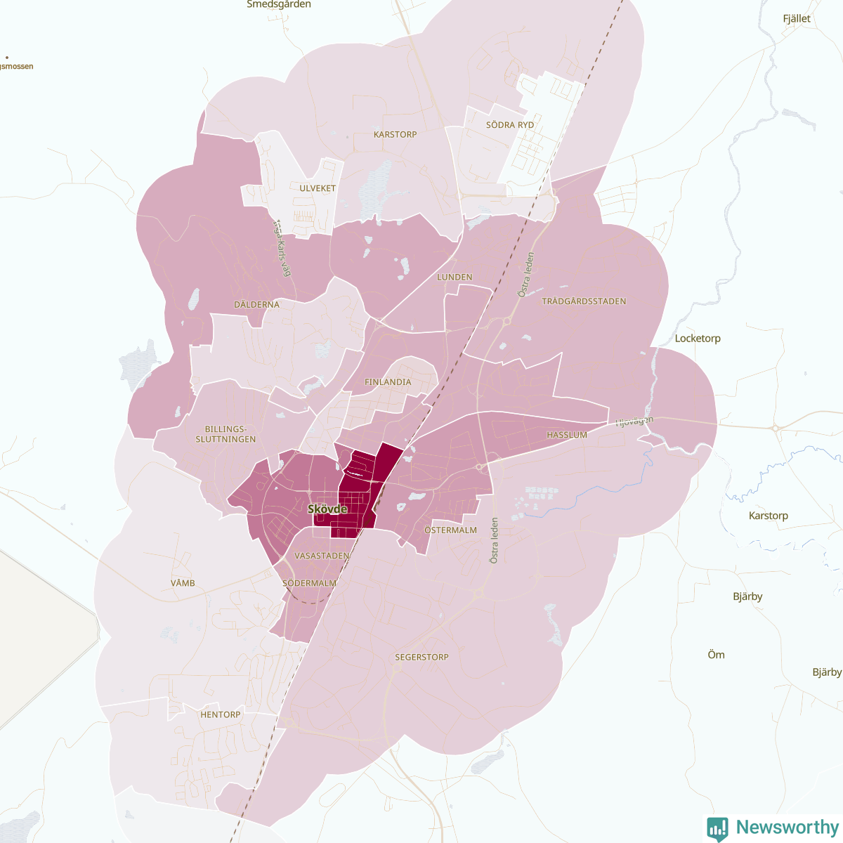 Men alla delar av Skövde är inte lika hårt drabbade. Det visar data för de senaste fem åren, som Newsworthy begärt ut från polisen. De anmälda stölderna har kopplats till SCB:s 31 statistiska områden i kommunen. Det rör sig om mellan en handfull och knappt 300 anmälda stölder per område.