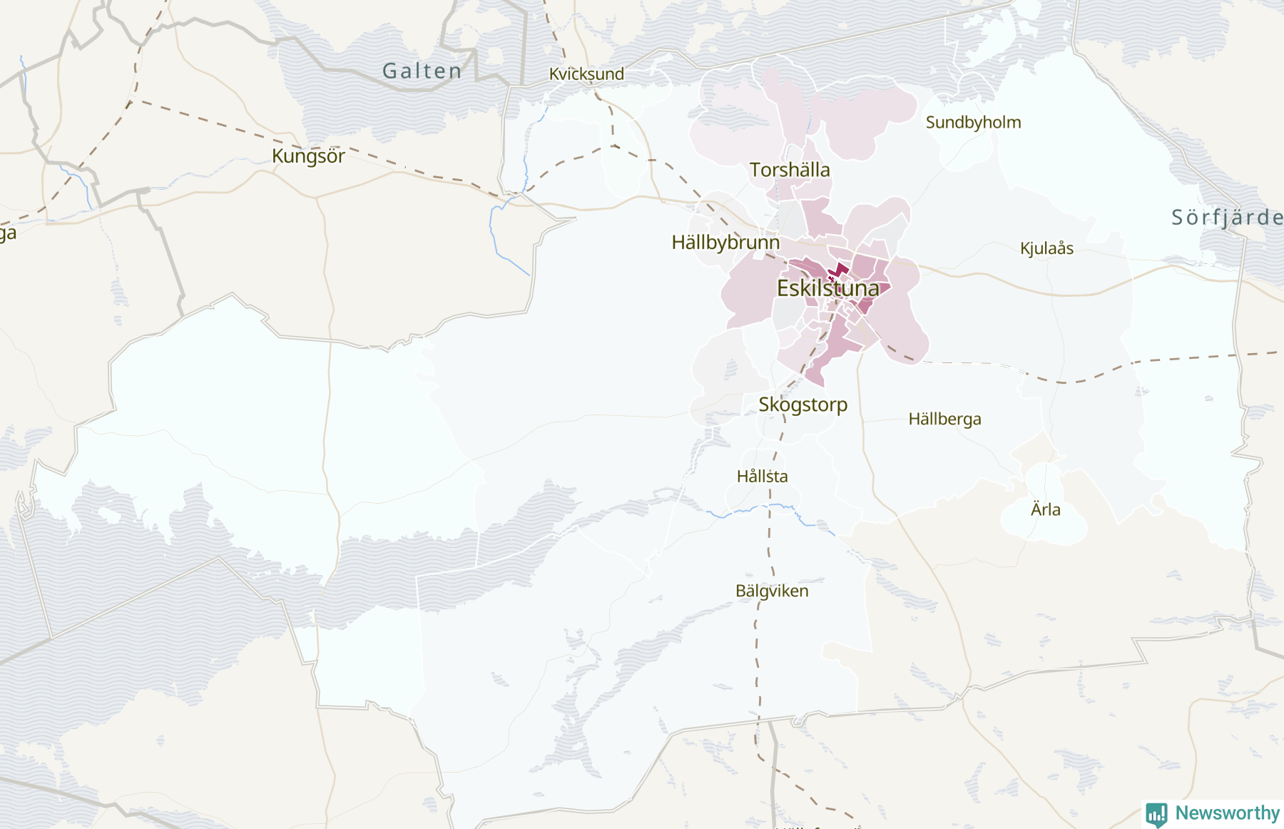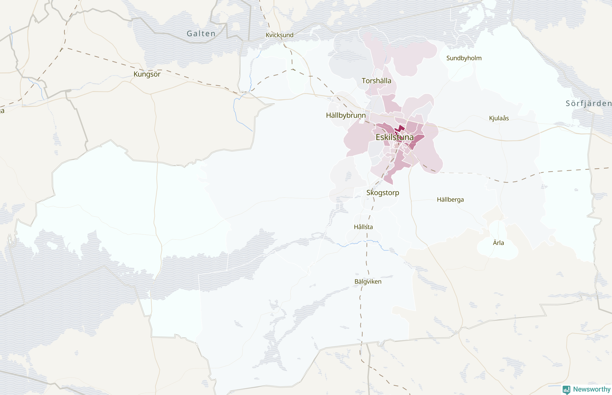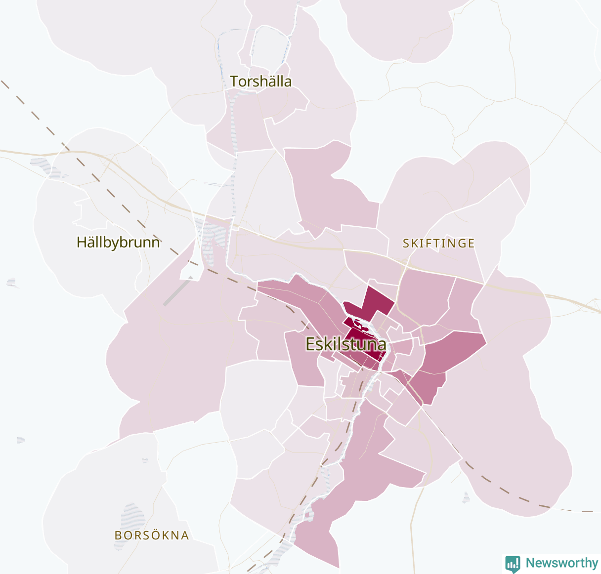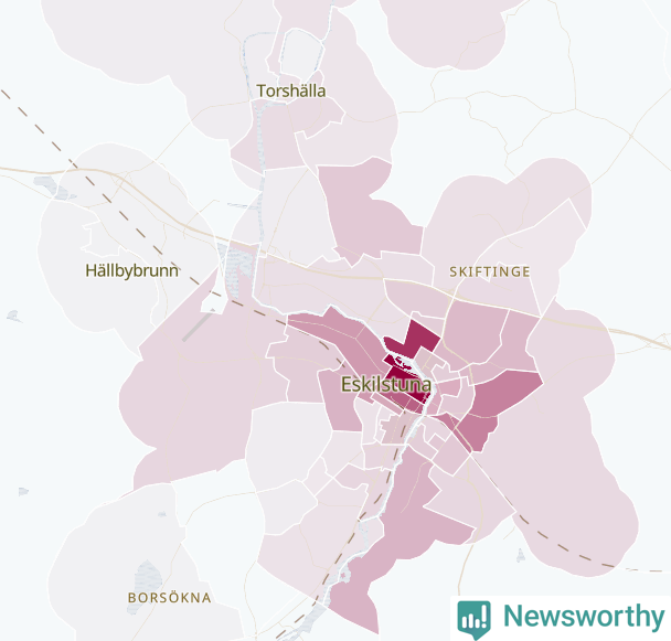 Men alla delar av Eskilstuna är inte lika hårt drabbade. Det visar data för de senaste fem åren, som Newsworthy begärt ut från polisen. De anmälda stölderna har kopplats till SCB:s 61 statistiska områden i kommunen. I ett område finns inga cykelstölder registrerade, men i de övriga rör det sig om mellan en handfull och knappt 300 anmälda stölder per område.