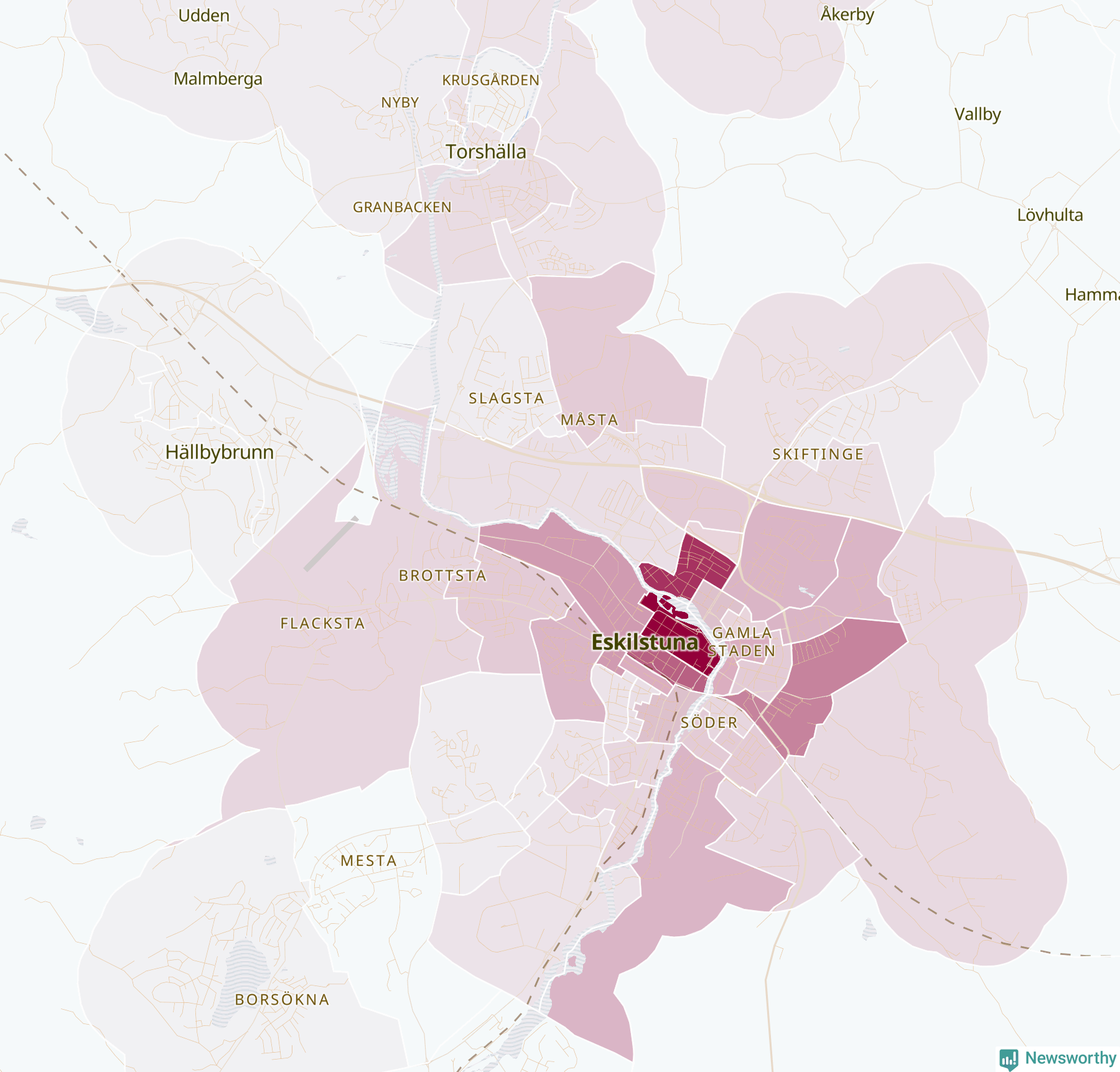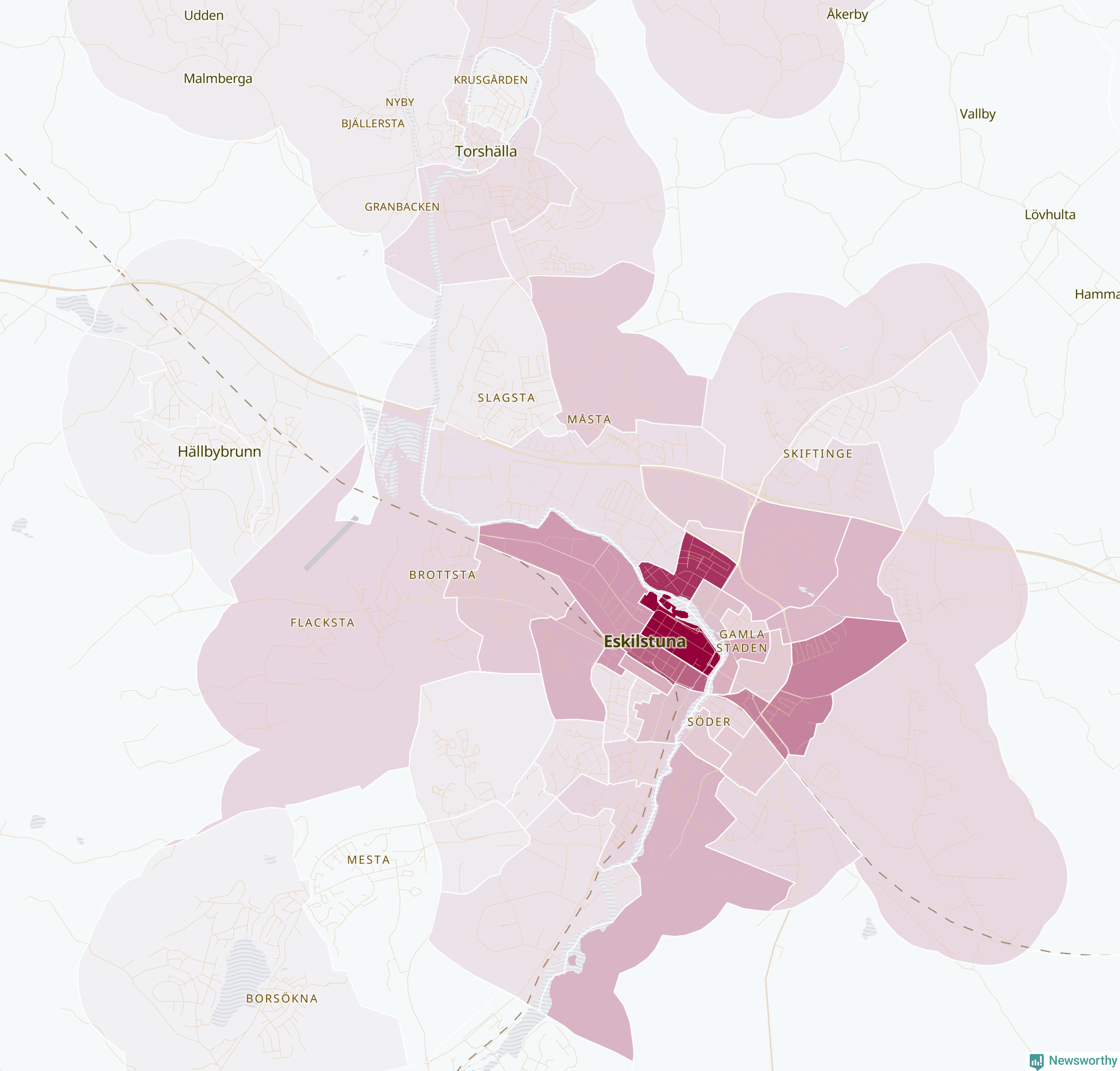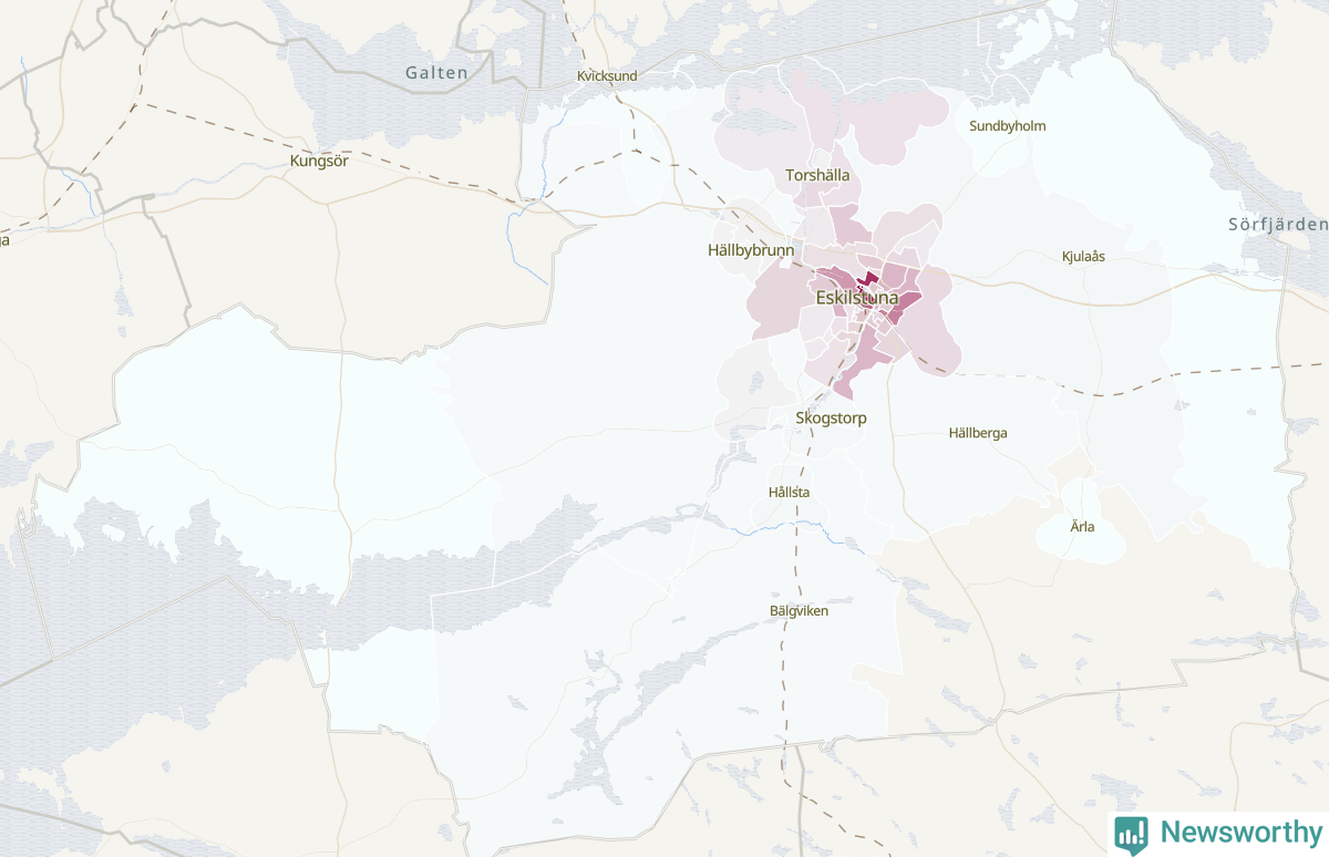 Men alla delar av Eskilstuna är inte lika hårt drabbade. Det visar data för de senaste fem åren, som Newsworthy begärt ut från polisen. De anmälda stölderna har kopplats till SCB:s 61 statistiska områden i kommunen. I ett område finns inga cykelstölder registrerade, men i de övriga rör det sig om mellan en handfull och knappt 300 anmälda stölder per område.