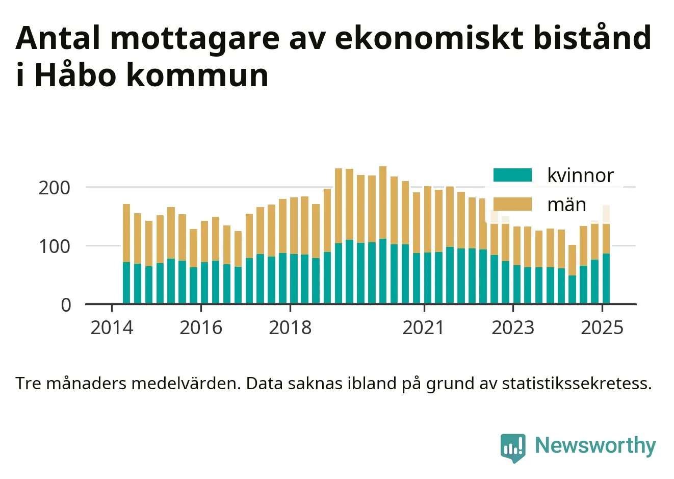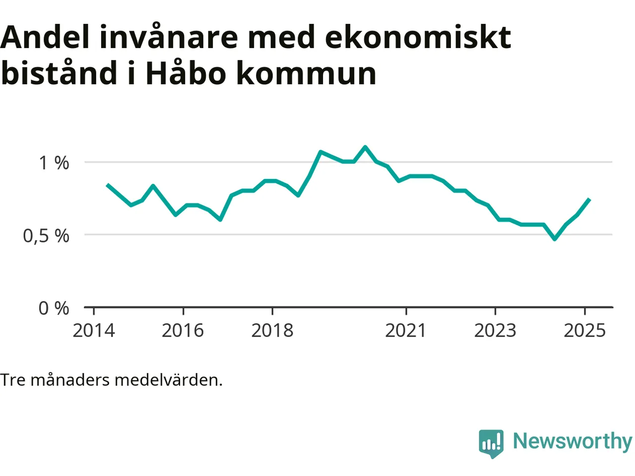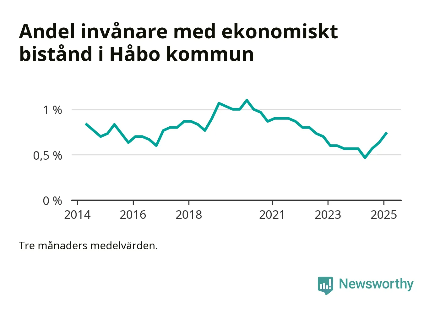 Andelen invånare med ekonomiskt bistånd i Håbo kommun var högre under vintern jämfört med motsvarande period året innan. Det visar den senaste, preliminära statistiken från Socialstyrelsen.