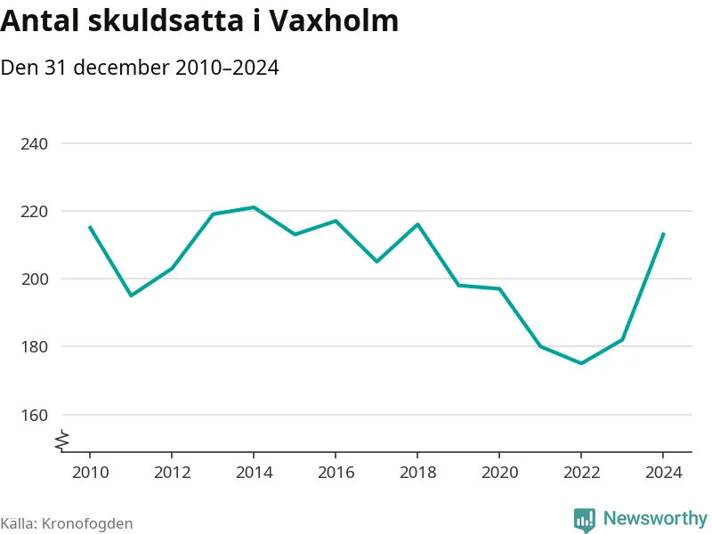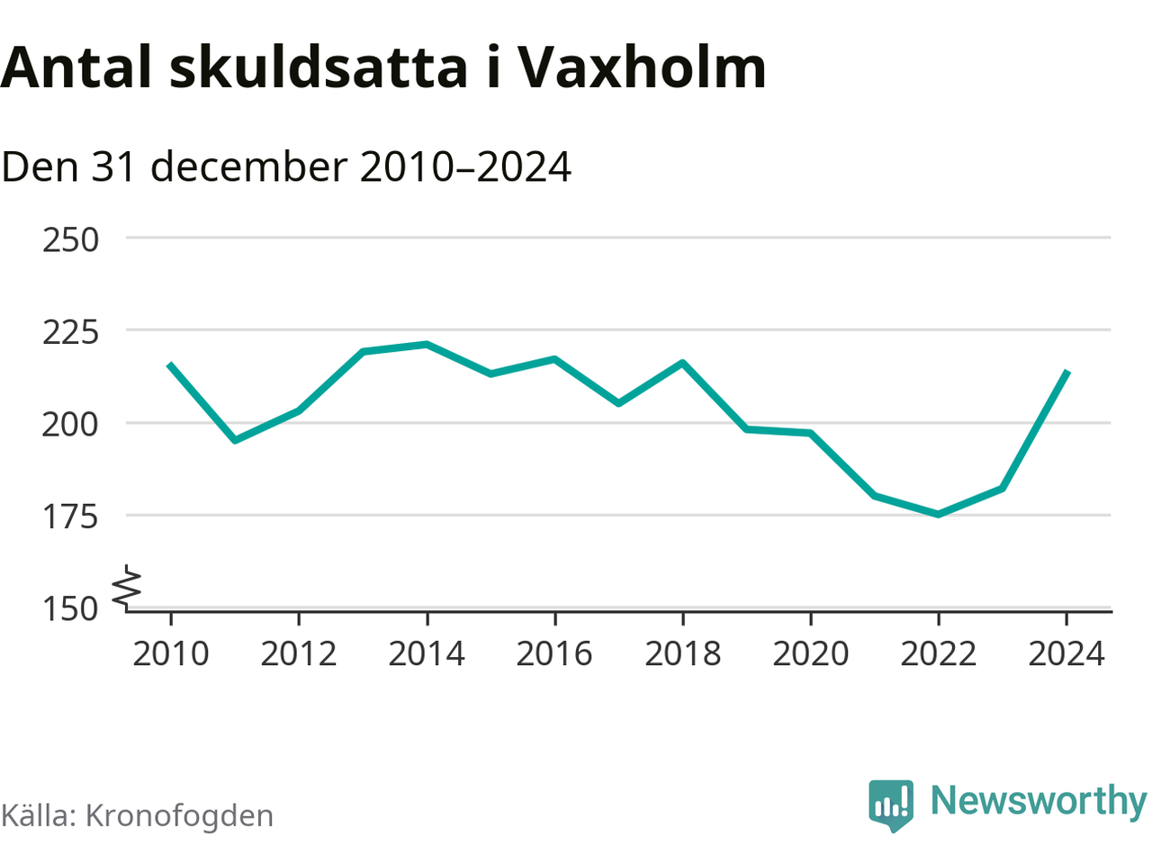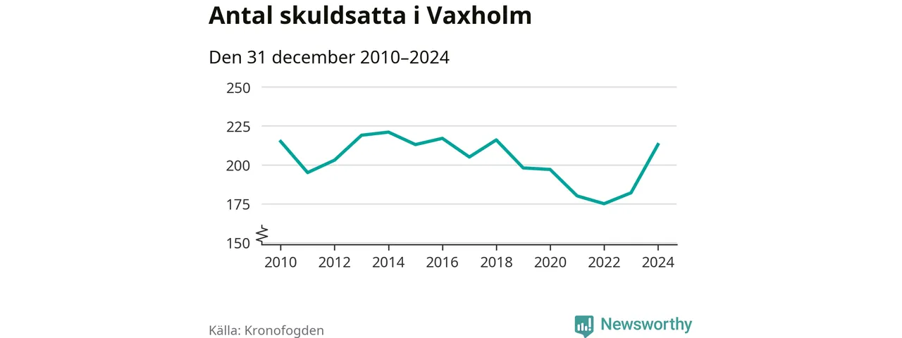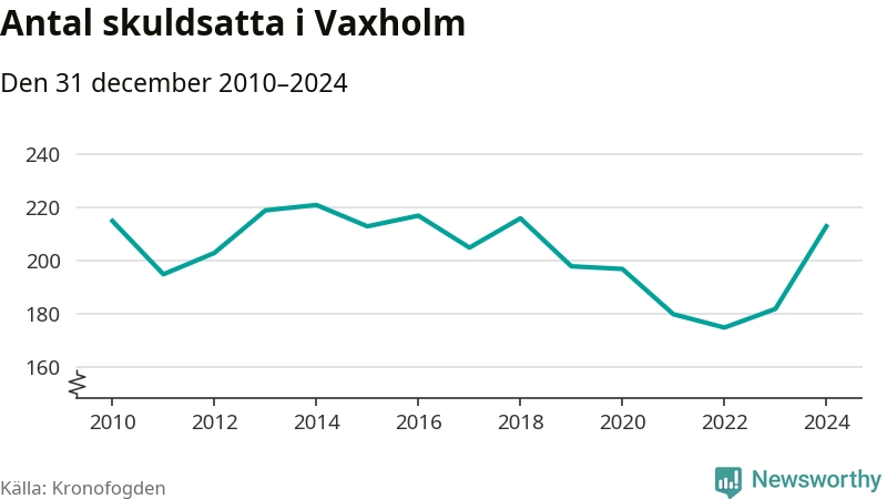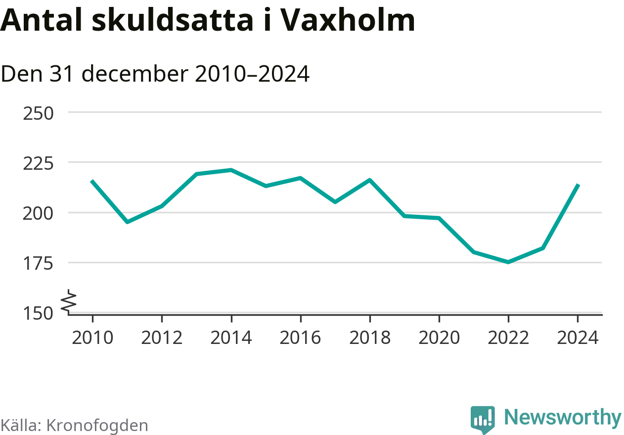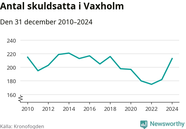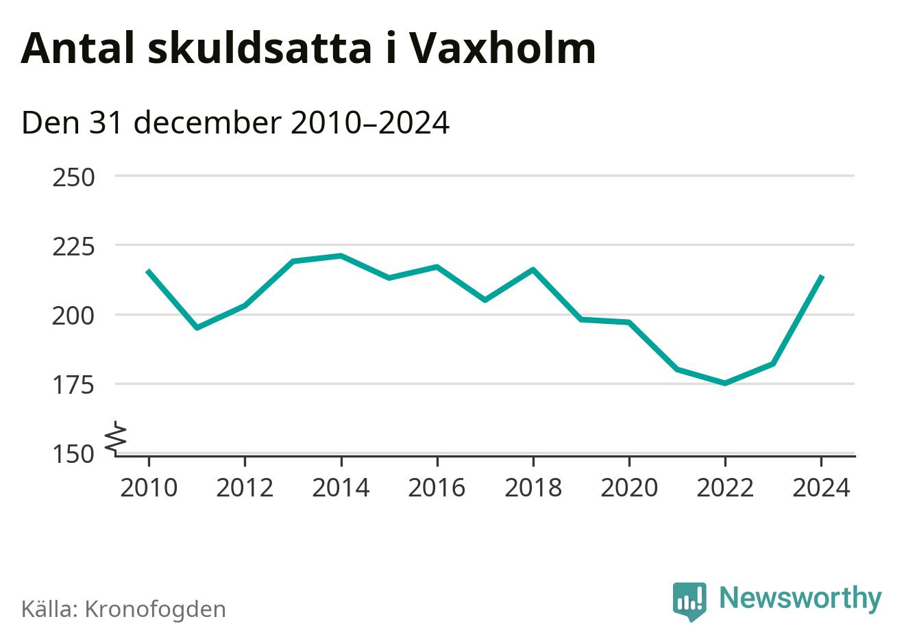 Allt fler Vaxholmsbor hamnar hos Kronofogden. Vid årskiftet var 213 invånare i kommunen skyldiga totalt 73,6 miljoner kronor. Det är en ökning med 31 personer – eller 17 procent – jämfört med året innan.