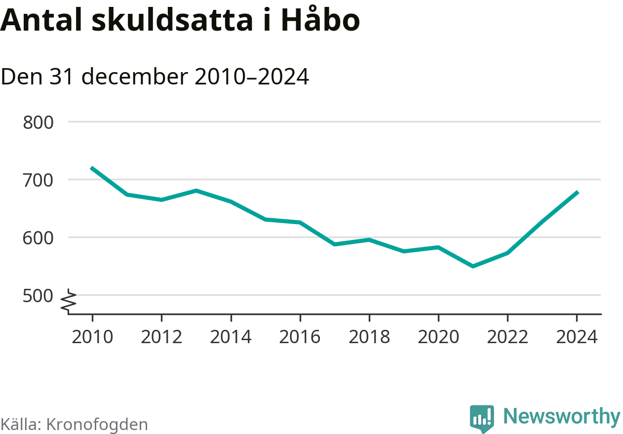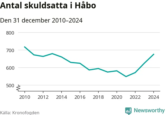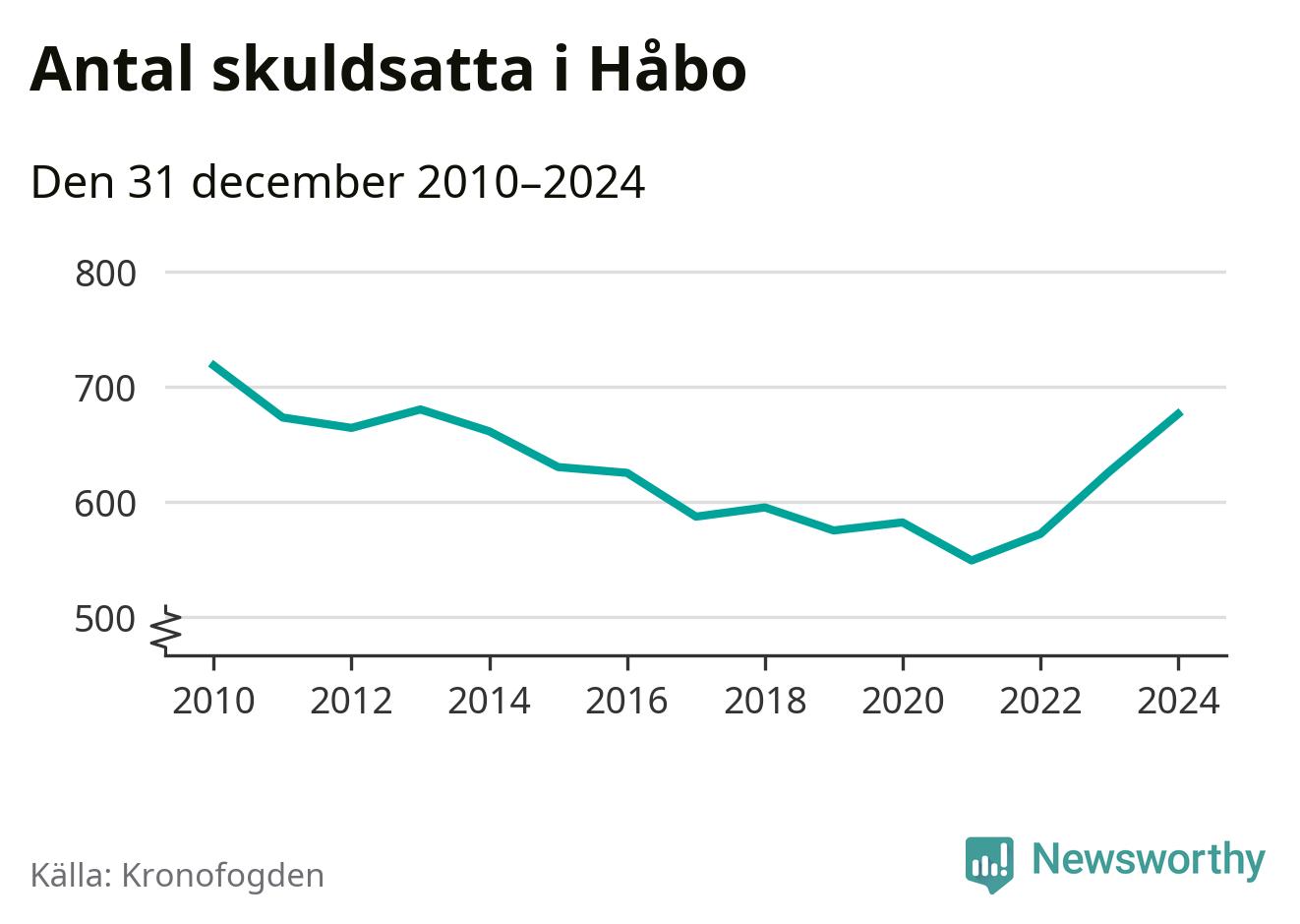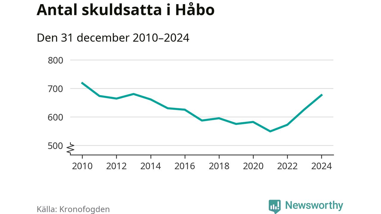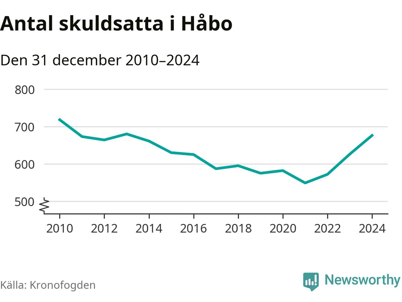 Allt fler Håbobor hamnar hos Kronofogden. Vid årskiftet var 676 invånare i kommunen skyldiga totalt 277,4 miljoner kronor. Det är en ökning med 50 personer – eller 8 procent – jämfört med året innan.