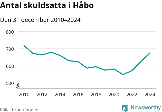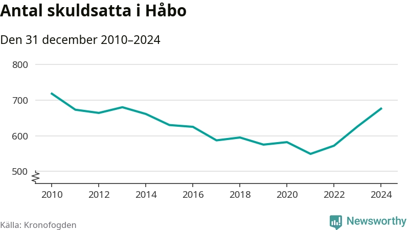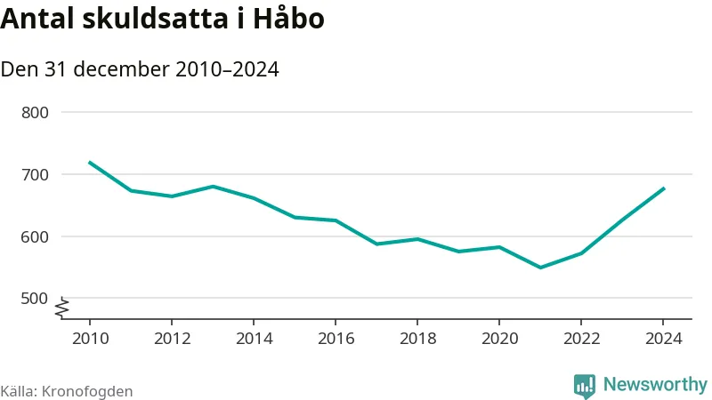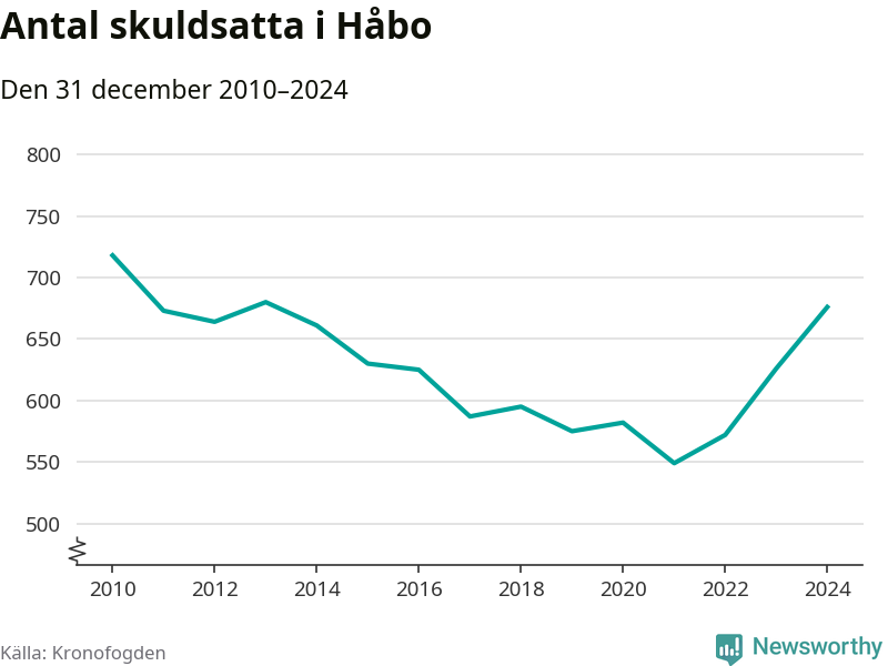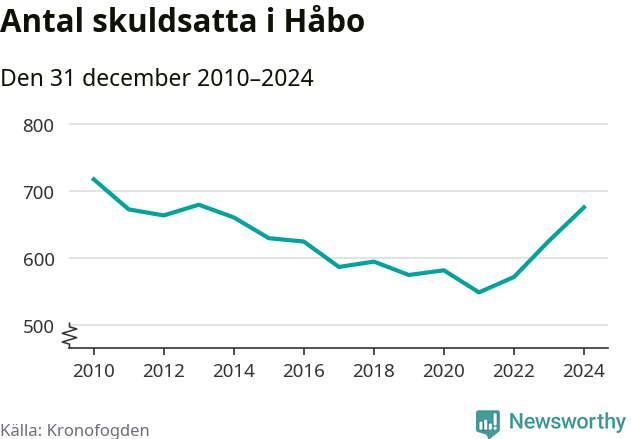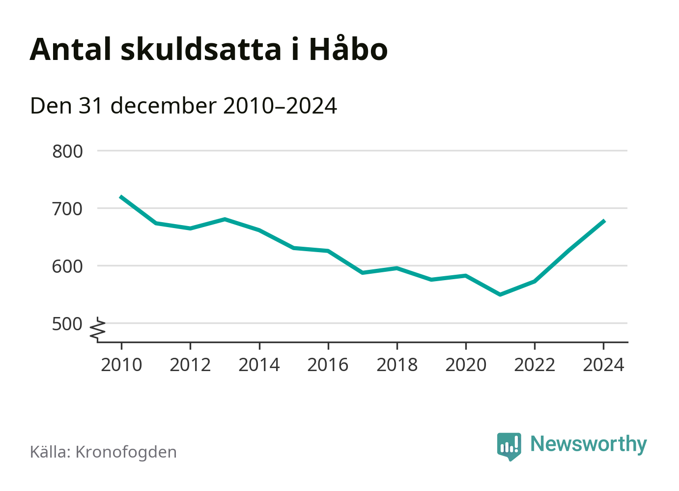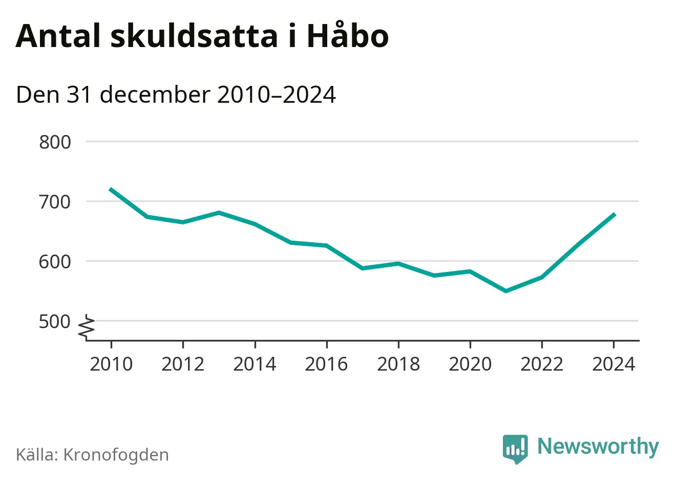 Allt fler Håbobor hamnar hos Kronofogden. Vid årskiftet var 676 invånare i kommunen skyldiga totalt 277,4 miljoner kronor. Det är en ökning med 50 personer – eller 8 procent – jämfört med året innan.