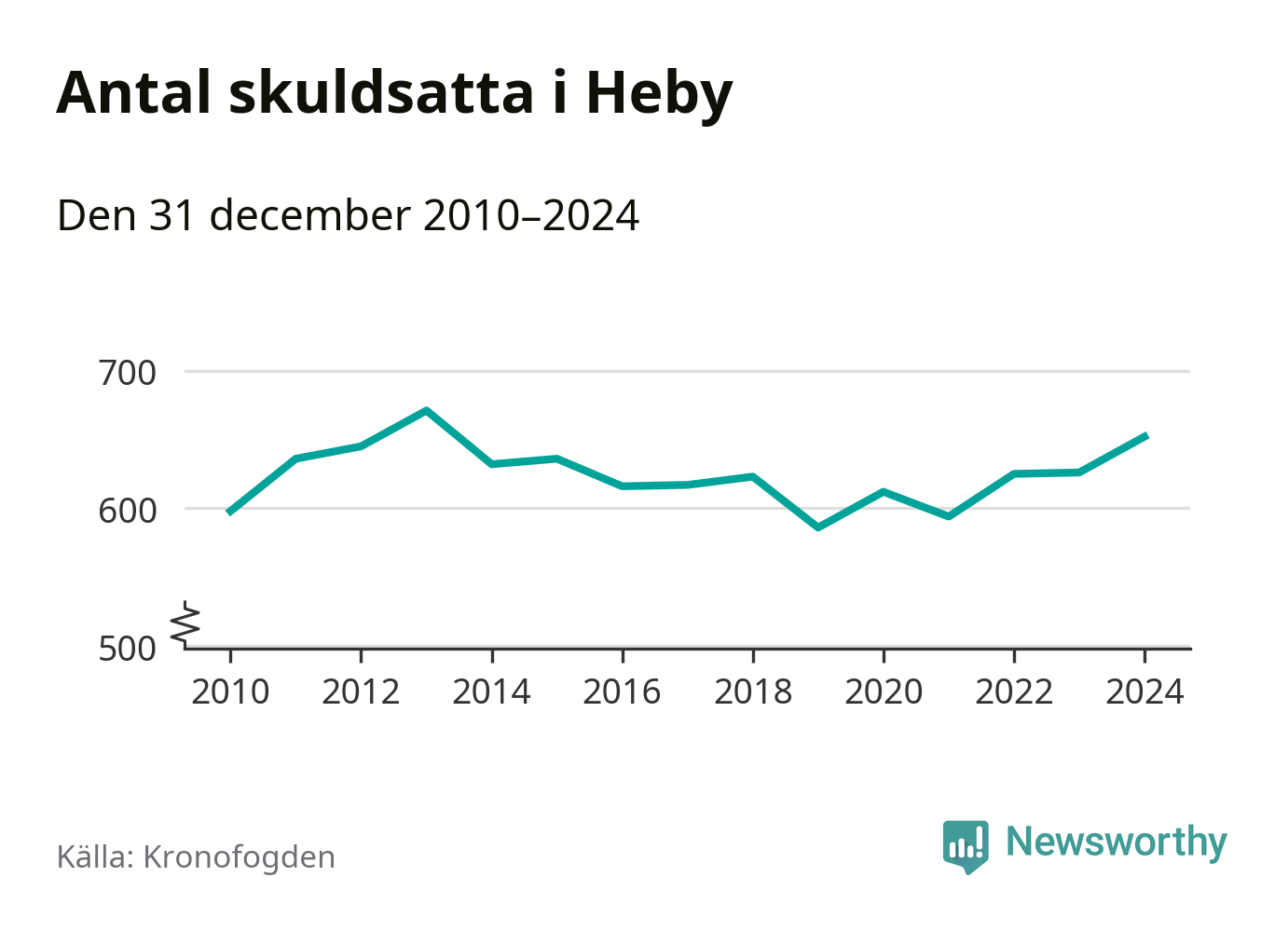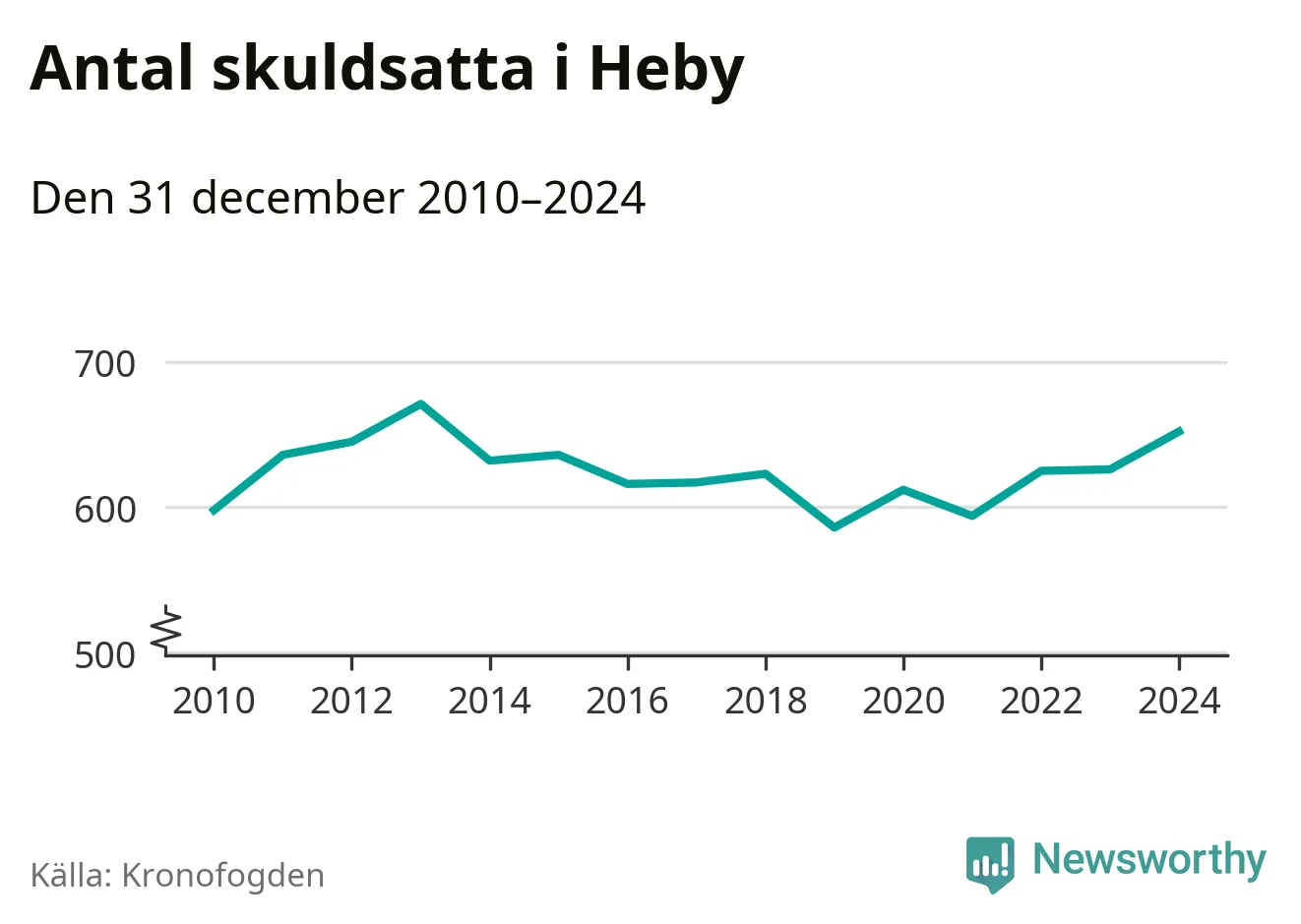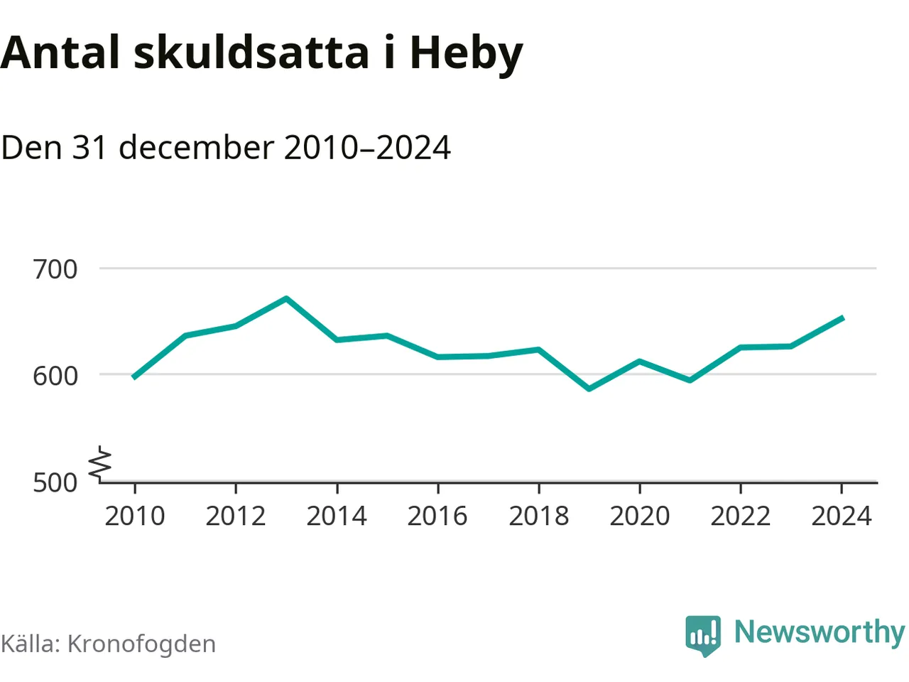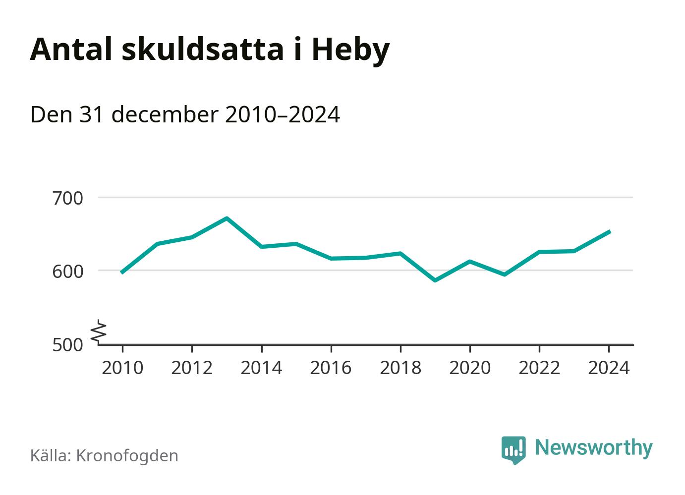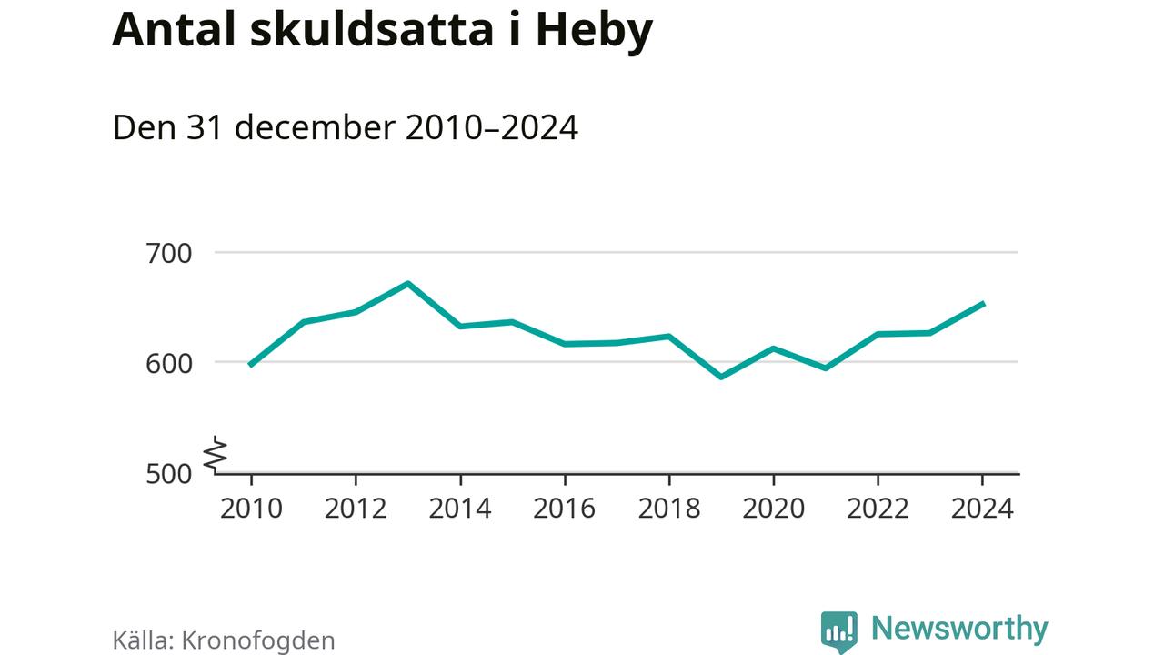 Allt fler Hebybor hamnar hos Kronofogden. Vid årskiftet var 652 invånare i kommunen skyldiga totalt 164,2 miljoner kronor. Det är en ökning med 26 personer – eller 4 procent – jämfört med året innan.