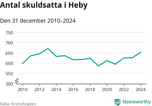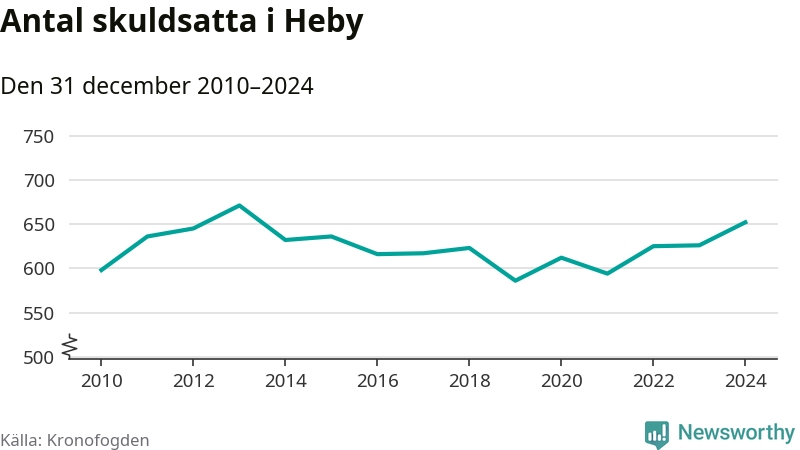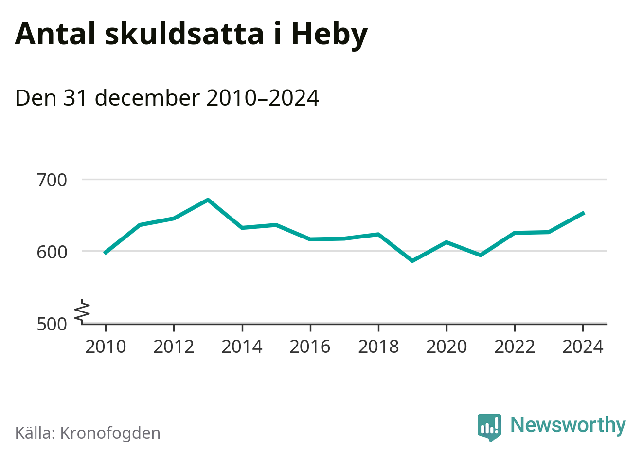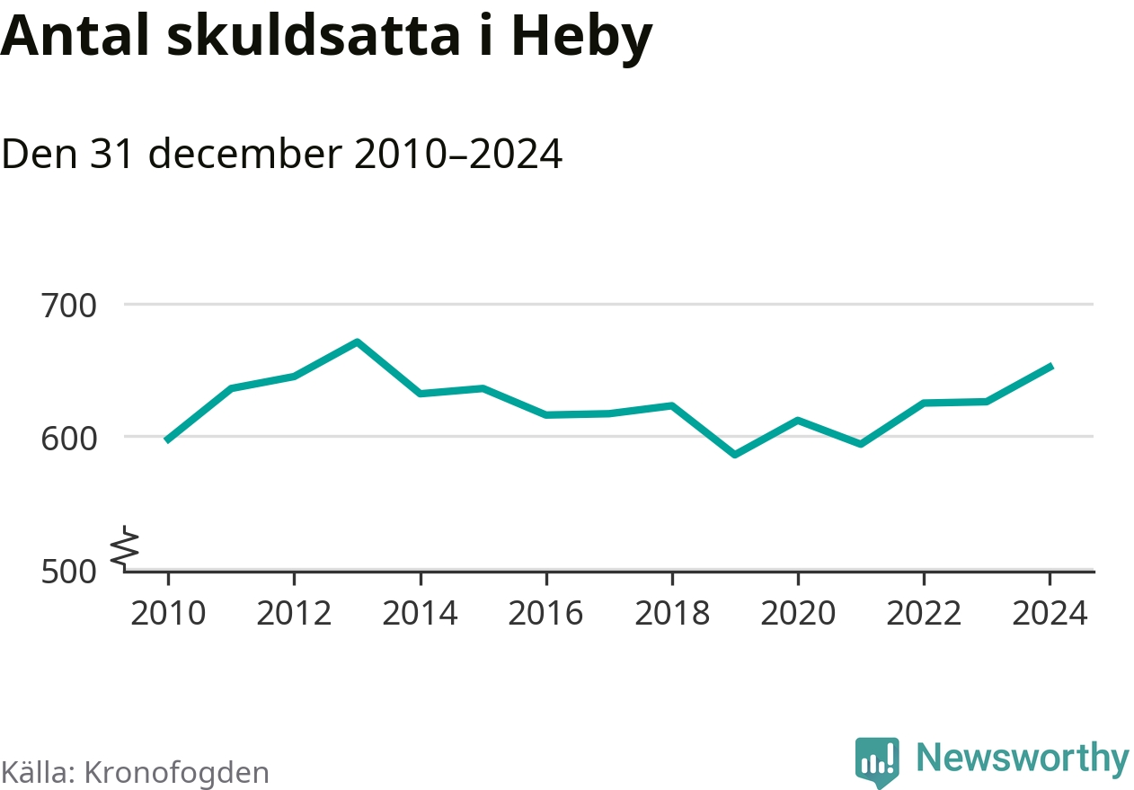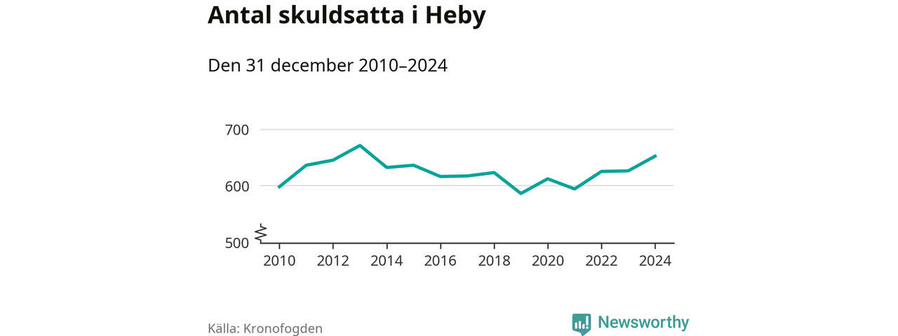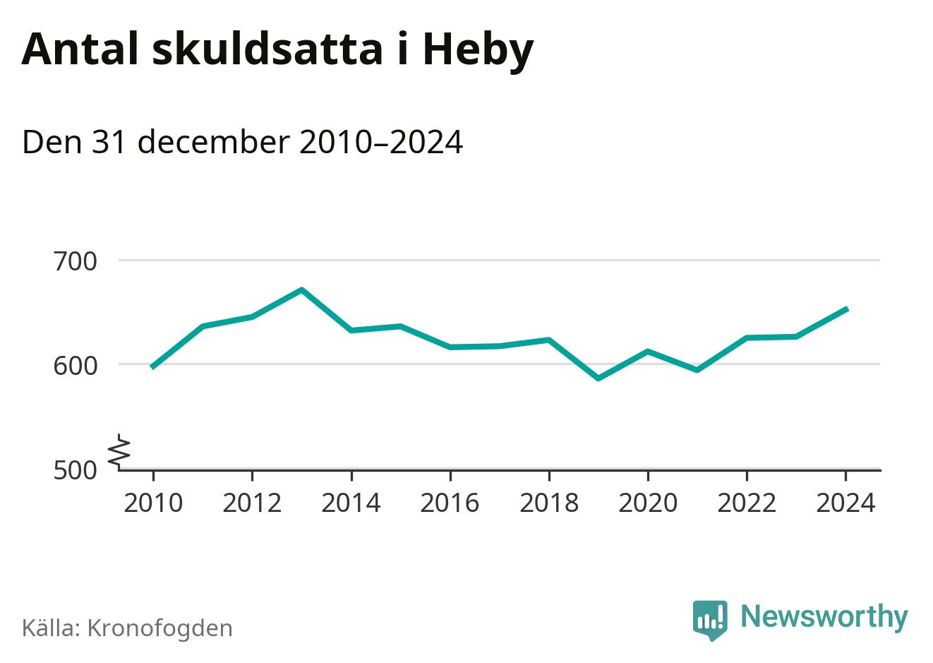 Allt fler Hebybor hamnar hos Kronofogden. Vid årskiftet var 652 invånare i kommunen skyldiga totalt 164,2 miljoner kronor. Det är en ökning med 26 personer – eller 4 procent – jämfört med året innan.