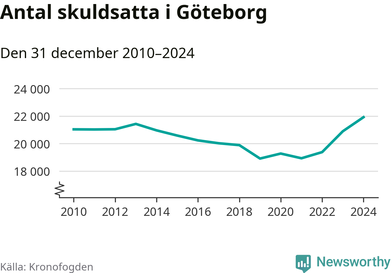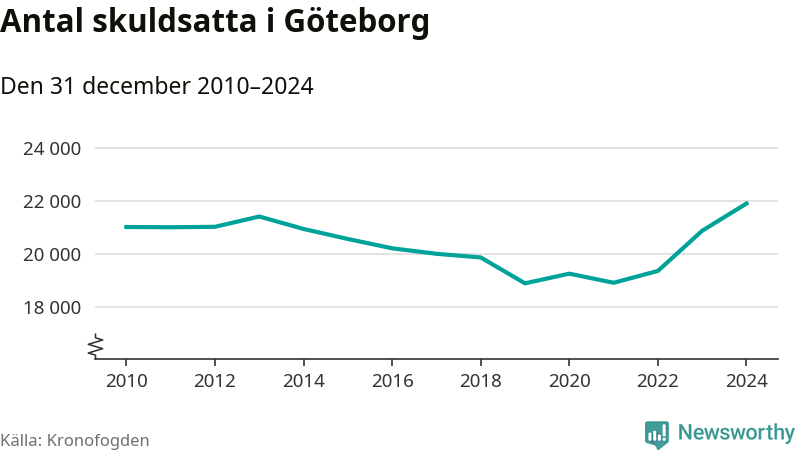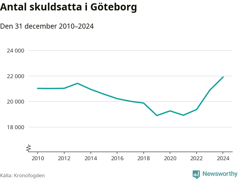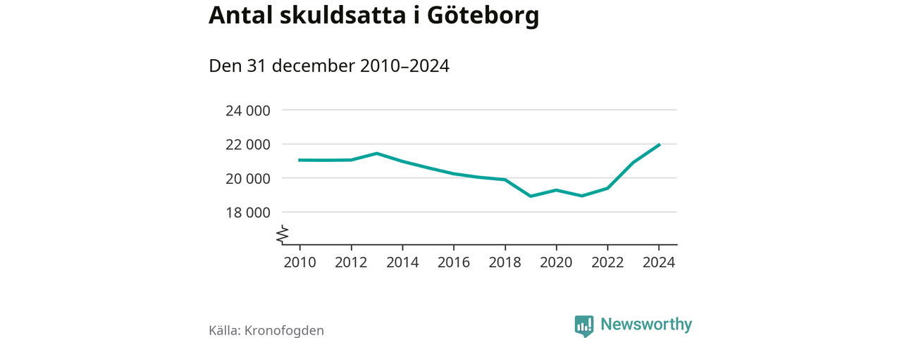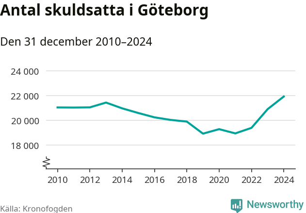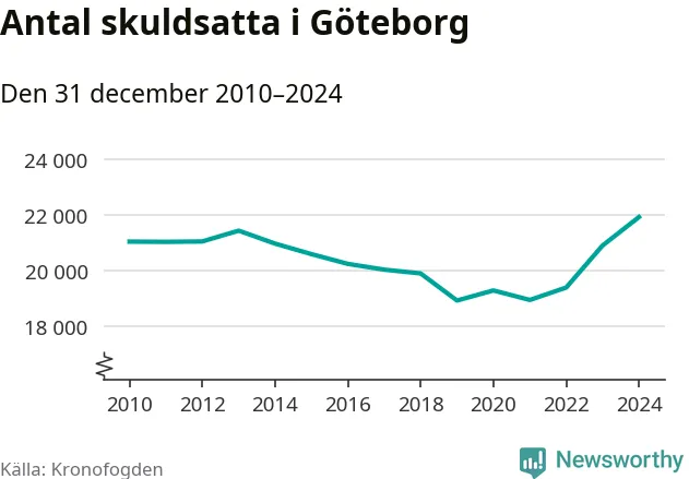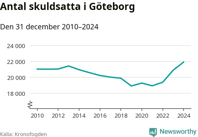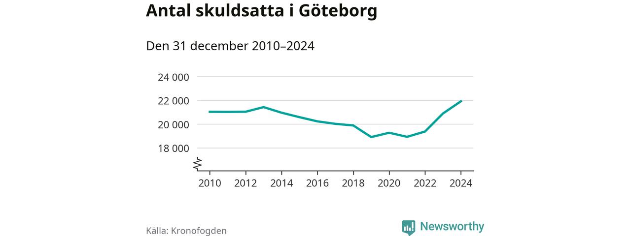 Inte sedan åtminstone 2010 har så många göteborgare hamnat hos Kronofogden. Vid årskiftet var 21 919 invånare i kommunen skyldiga totalt 8,5 miljarder kronor. Det är en ökning med 1 025 personer – eller 5 procent – jämfört med året innan.