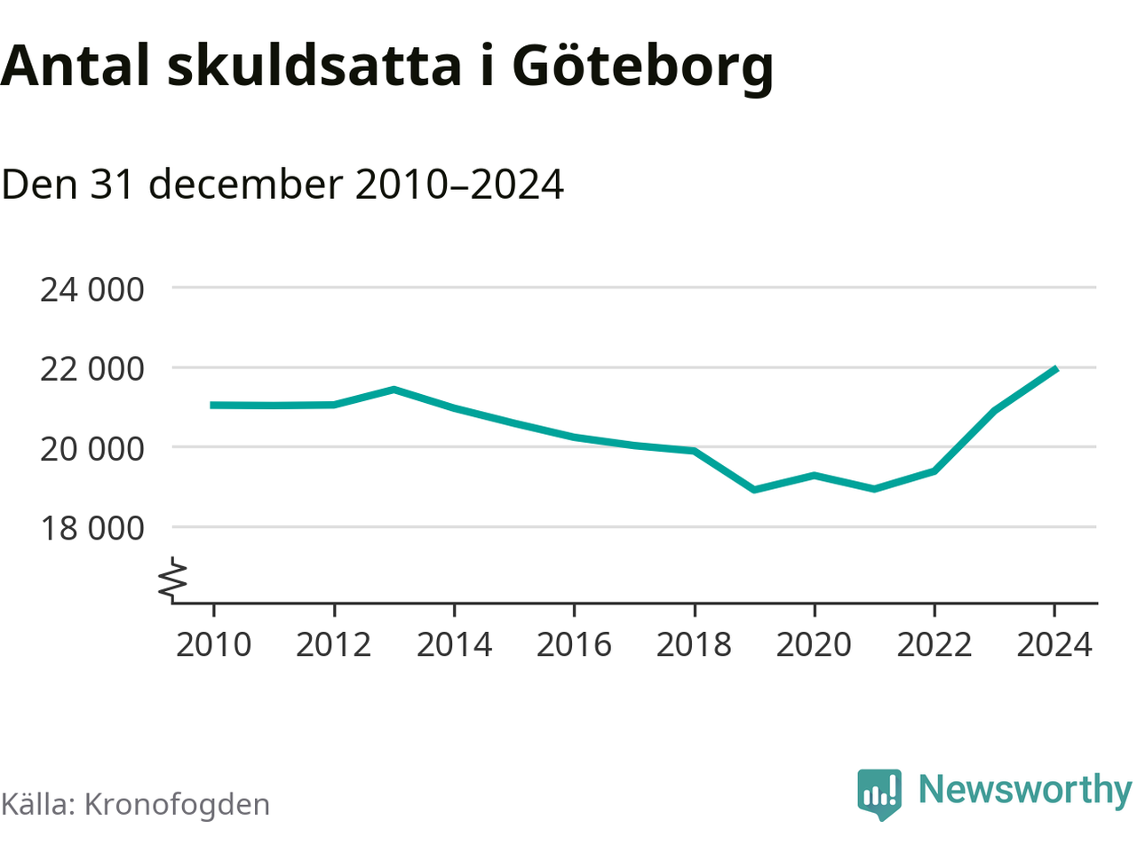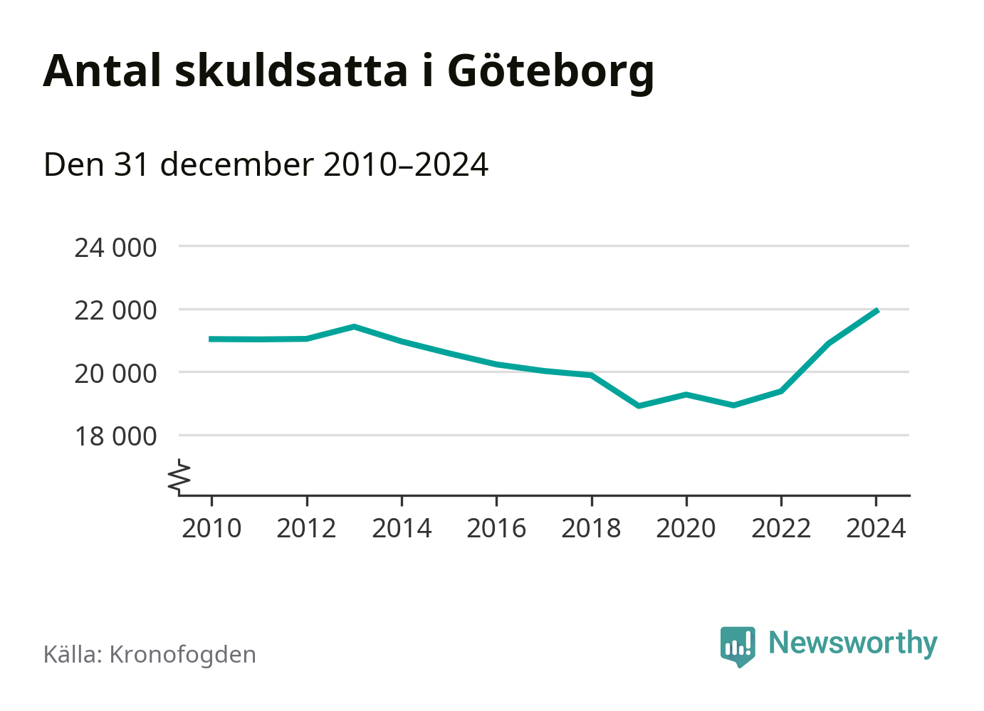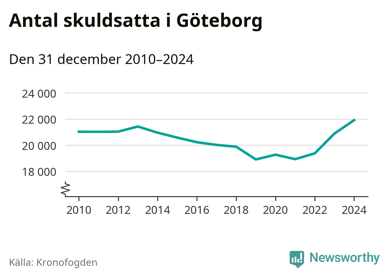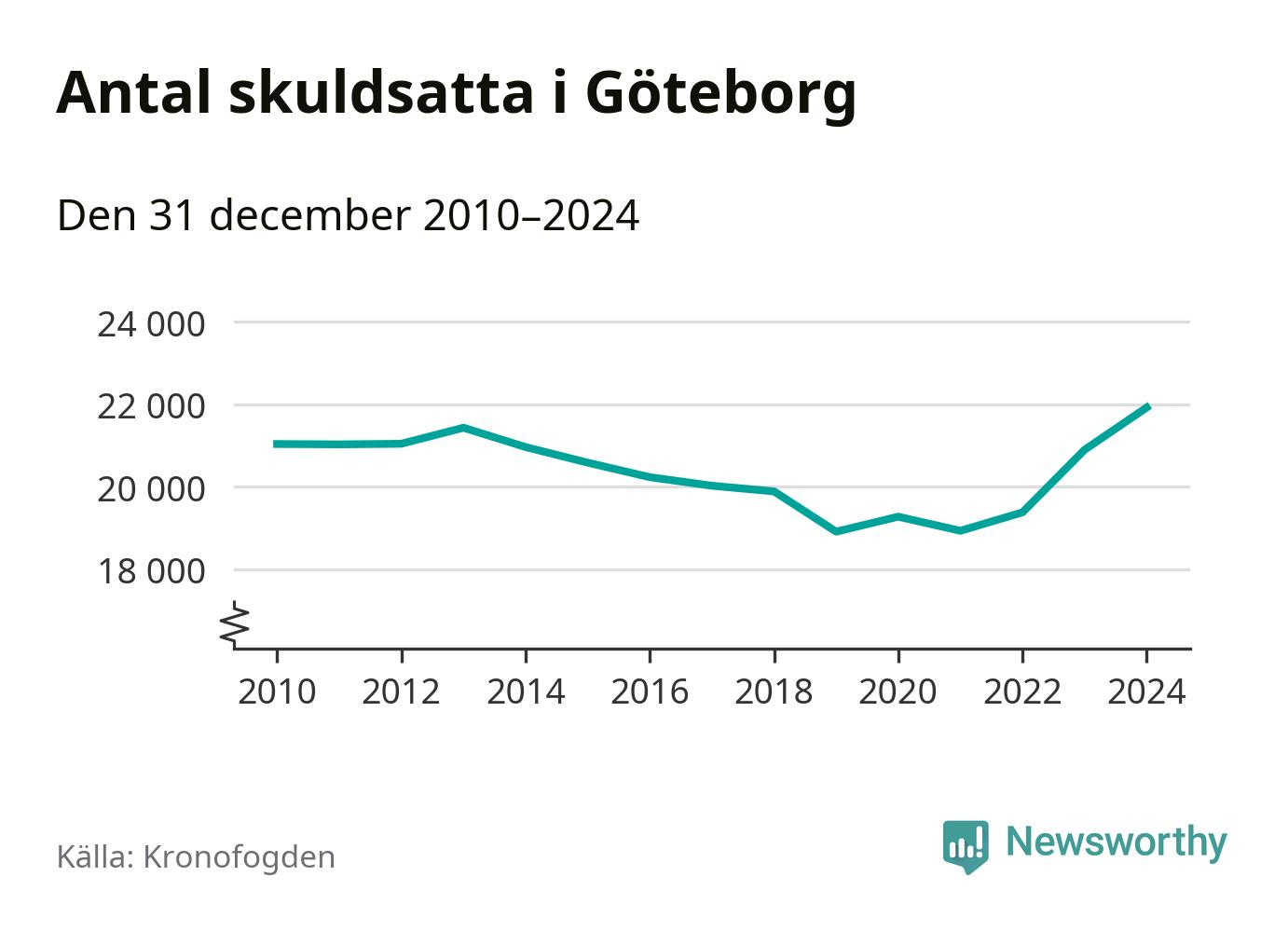 Inte sedan åtminstone 2010 har så många göteborgare hamnat hos Kronofogden. Vid årskiftet var 21 919 invånare i kommunen skyldiga totalt 8,5 miljarder kronor. Det är en ökning med 1 025 personer – eller 5 procent – jämfört med året innan.