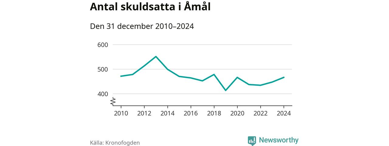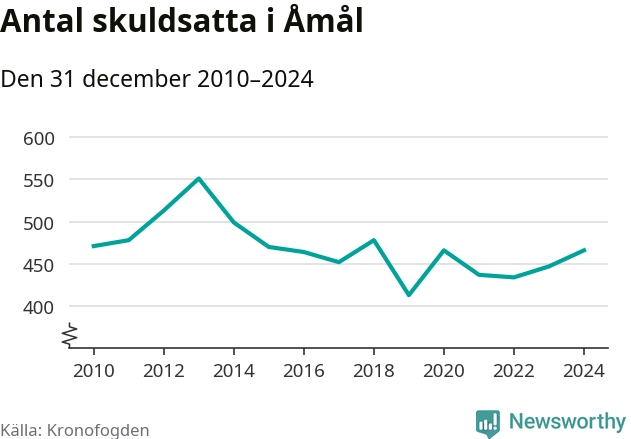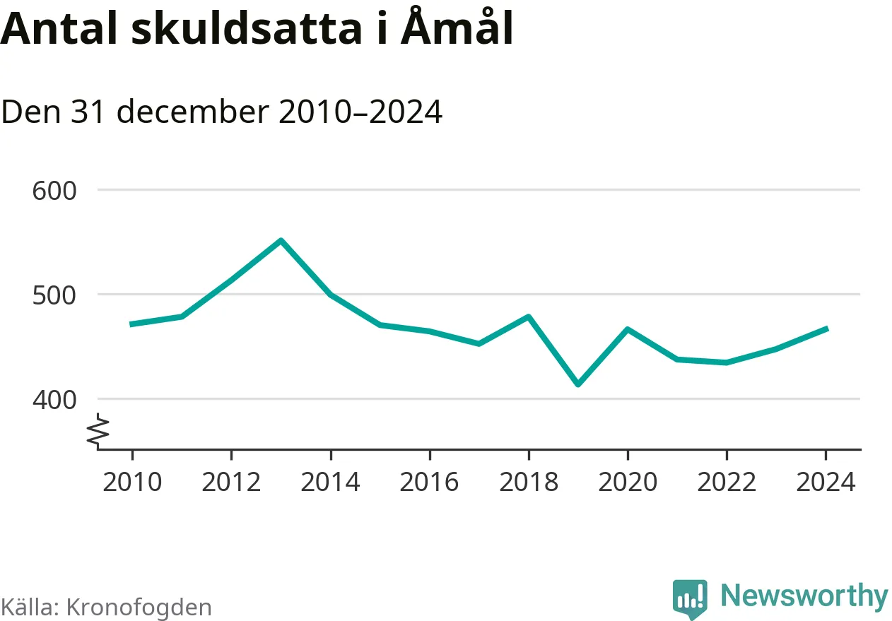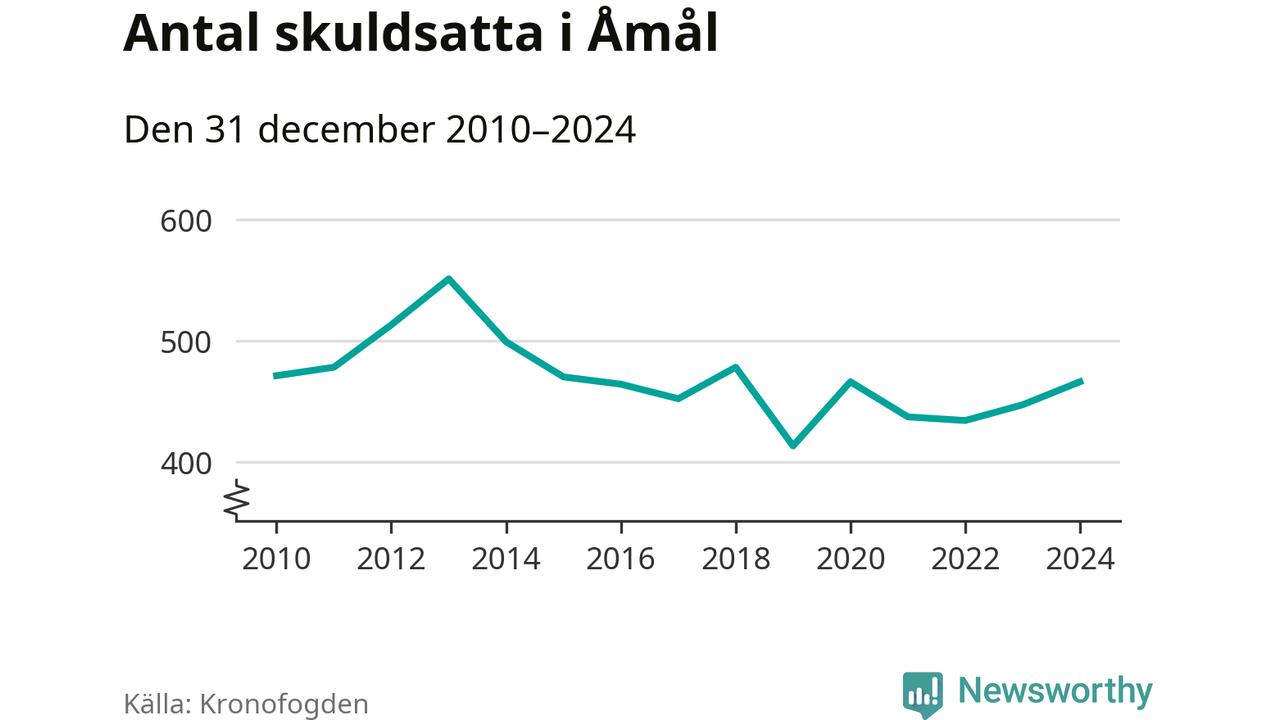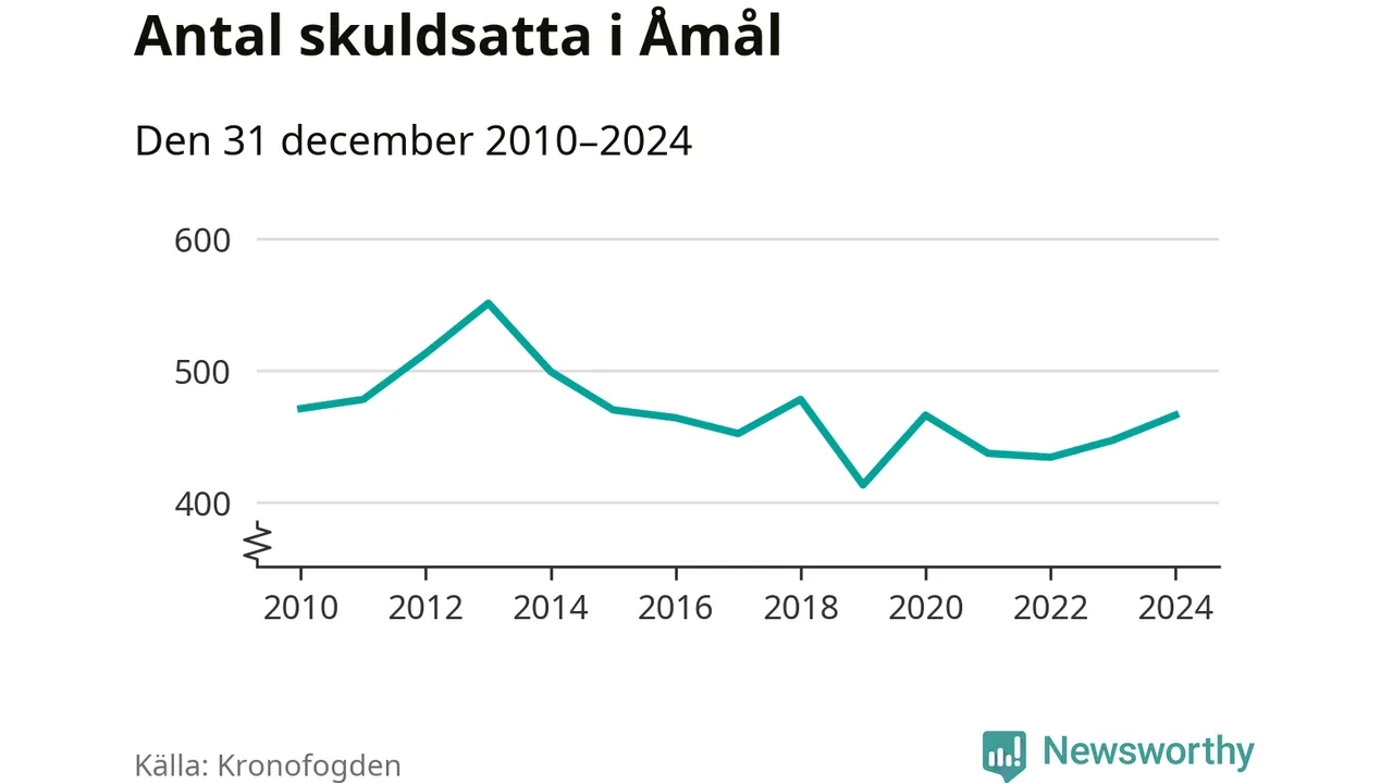 Allt fler Åmålsbor hamnar hos Kronofogden. Vid årskiftet var 466 invånare i kommunen skyldiga totalt 99 miljoner kronor. Det är en ökning med 19 personer – eller 4 procent – jämfört med året innan.