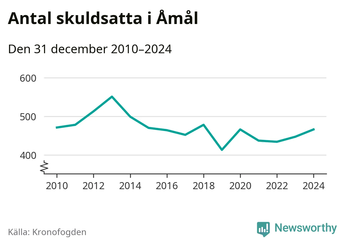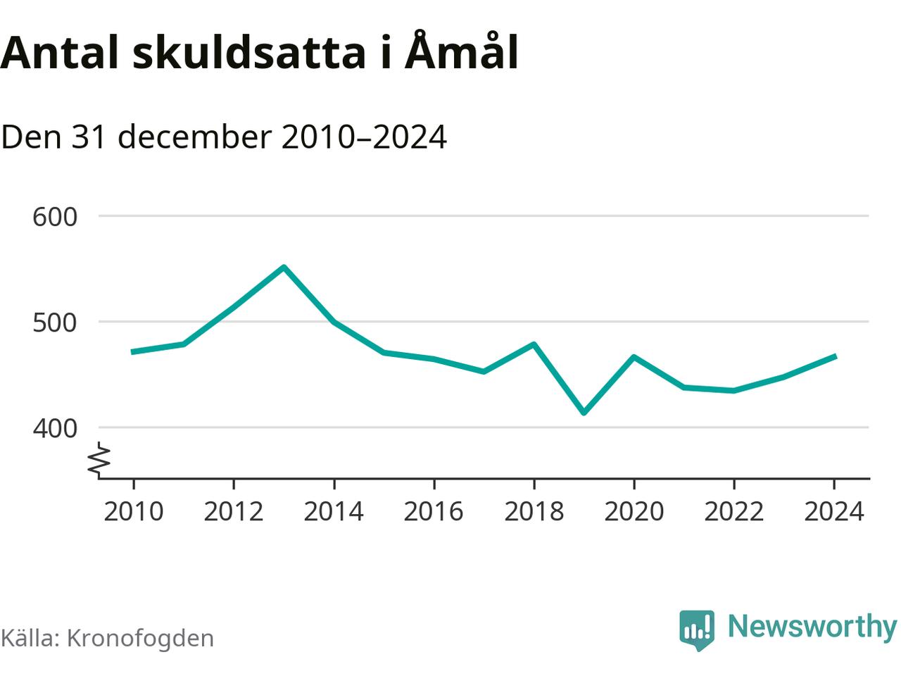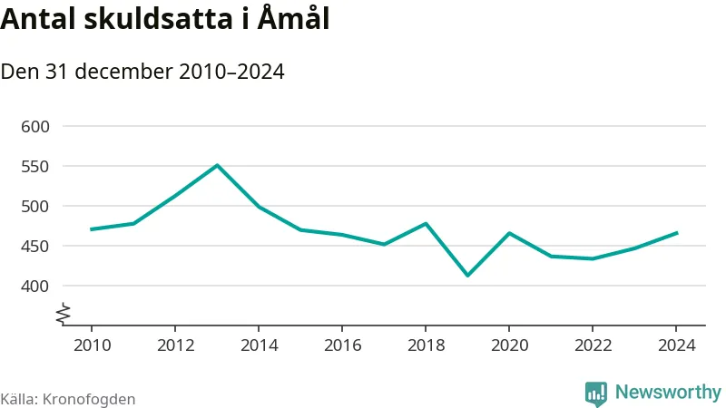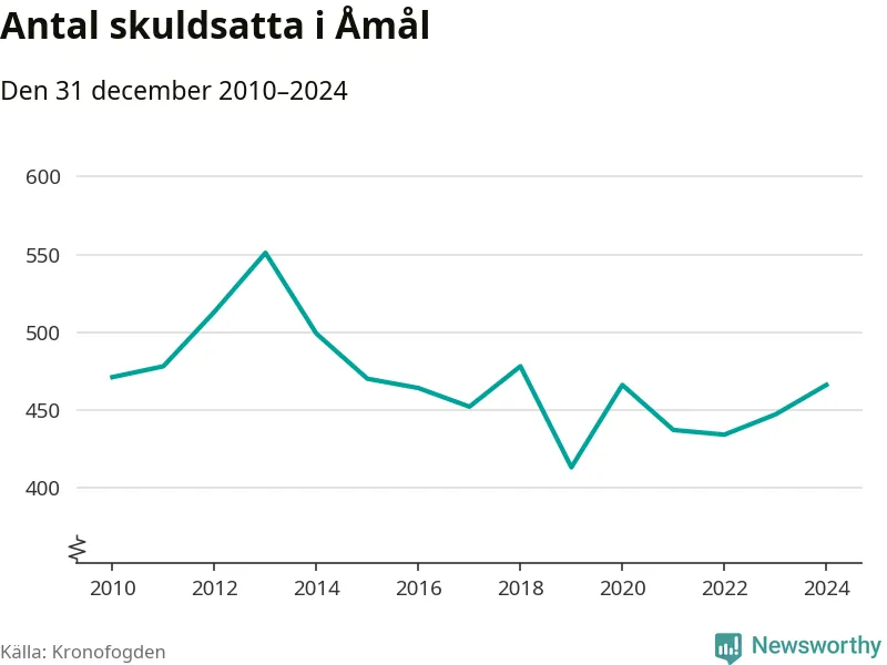 Allt fler Åmålsbor hamnar hos Kronofogden. Vid årskiftet var 466 invånare i kommunen skyldiga totalt 99 miljoner kronor. Det är en ökning med 19 personer – eller 4 procent – jämfört med året innan.