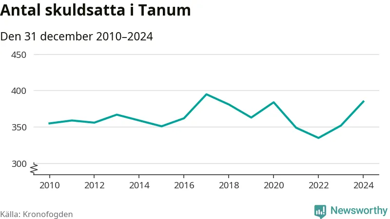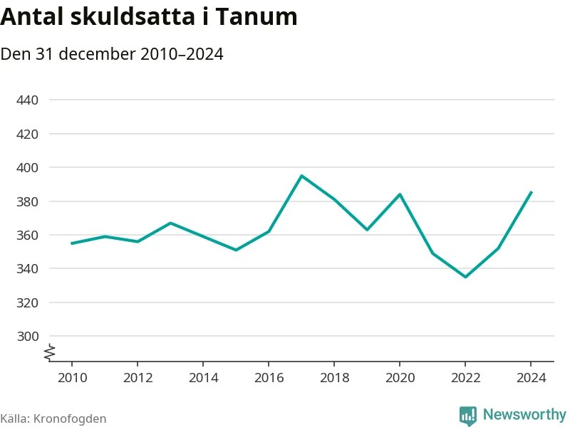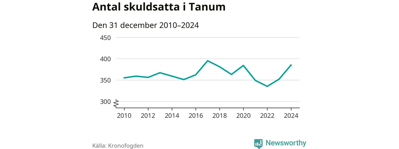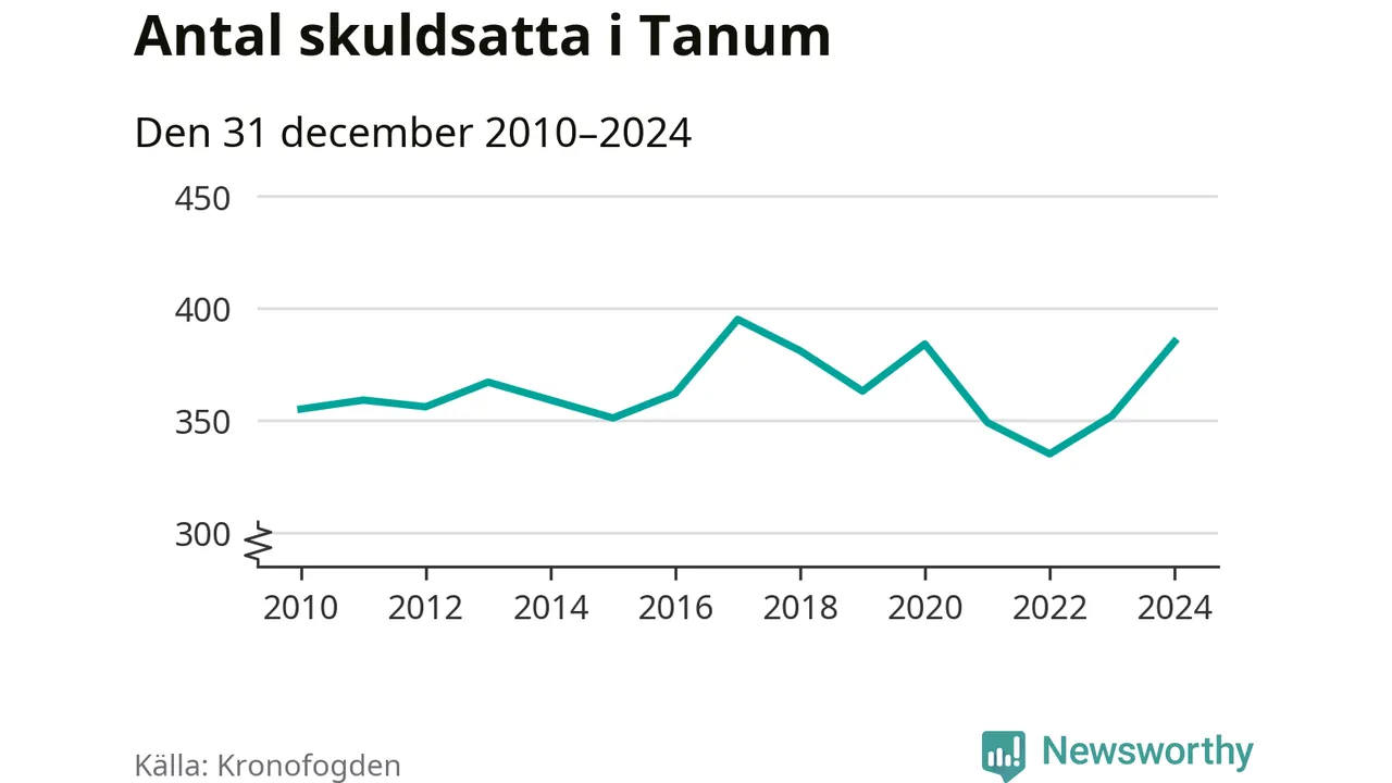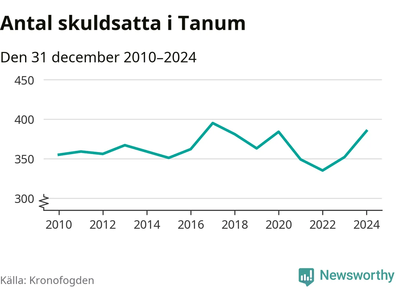 Allt fler Tanumsbor hamnar hos Kronofogden. Vid årskiftet var 385 invånare i kommunen skyldiga totalt 200,6 miljoner kronor. Det är en ökning med 33 personer – eller 9 procent – jämfört med året innan.
