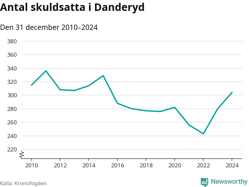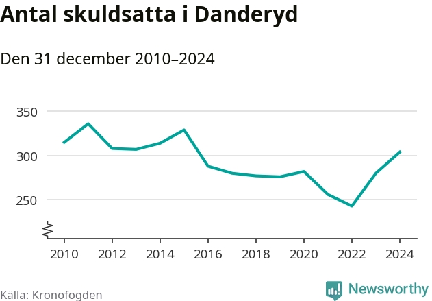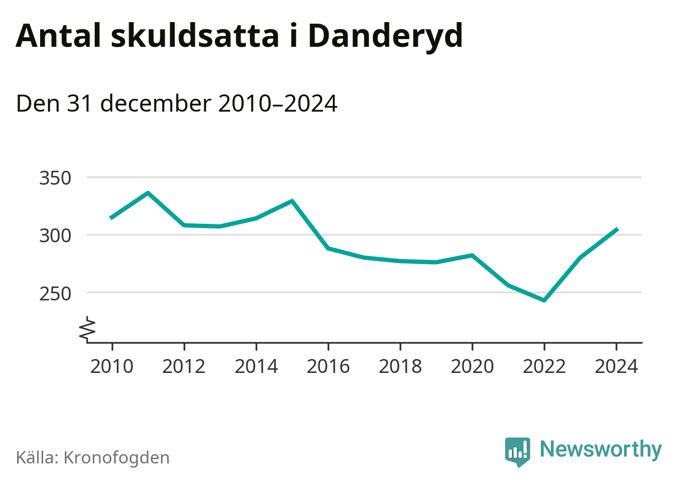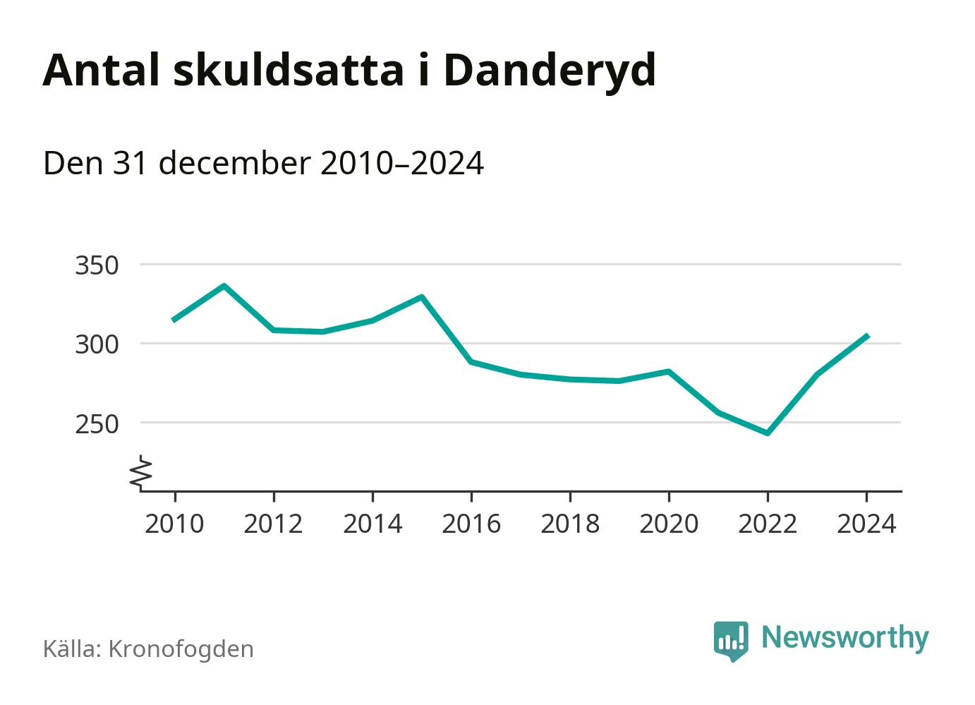 Allt fler Danderydsbor hamnar hos Kronofogden. Vid årskiftet var 304 invånare i kommunen skyldiga totalt 147,1 miljoner kronor. Det är en ökning med 24 personer – eller 9 procent – jämfört med året innan.