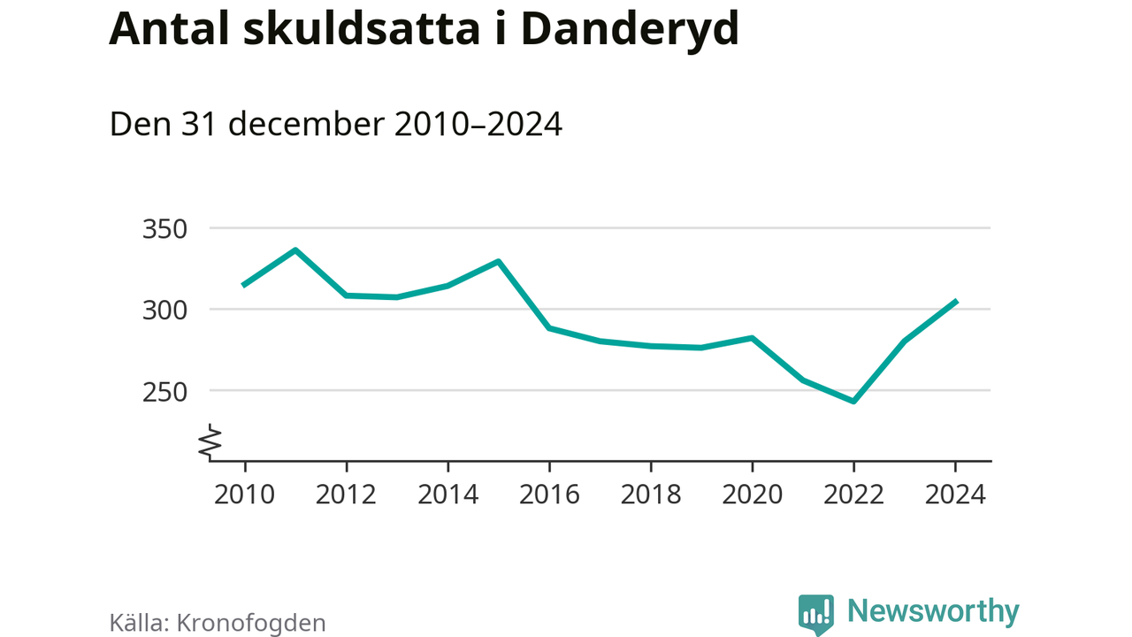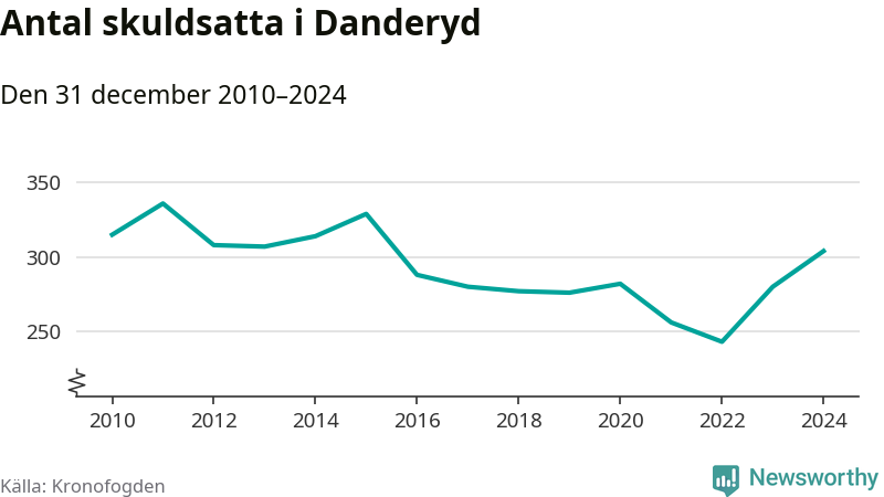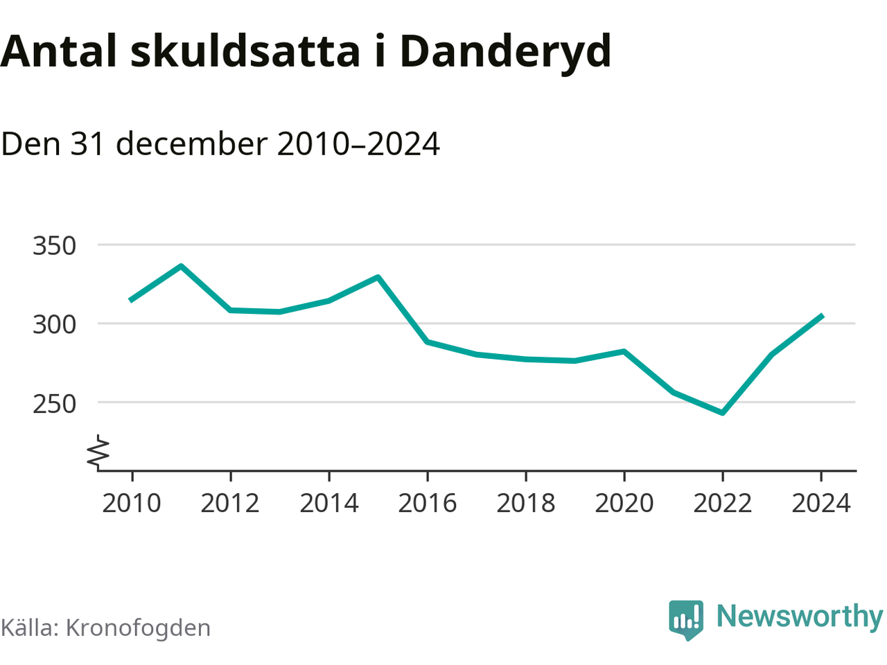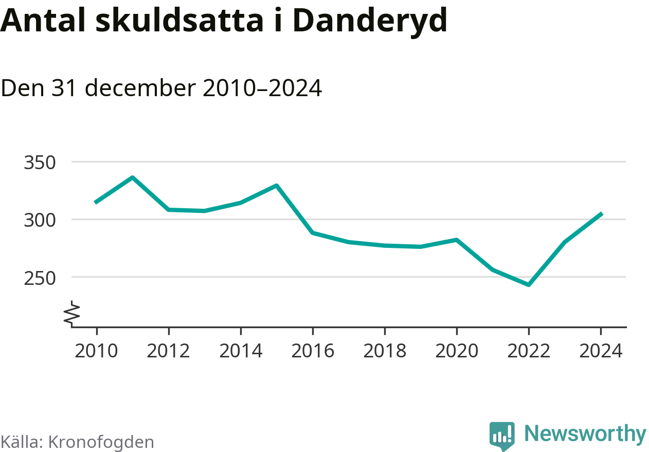Allt fler Danderydsbor hamnar hos Kronofogden. Vid årskiftet var 304 invånare i kommunen skyldiga totalt 147,1 miljoner kronor. Det är en ökning med 24 personer – eller 9 procent – jämfört med året innan.