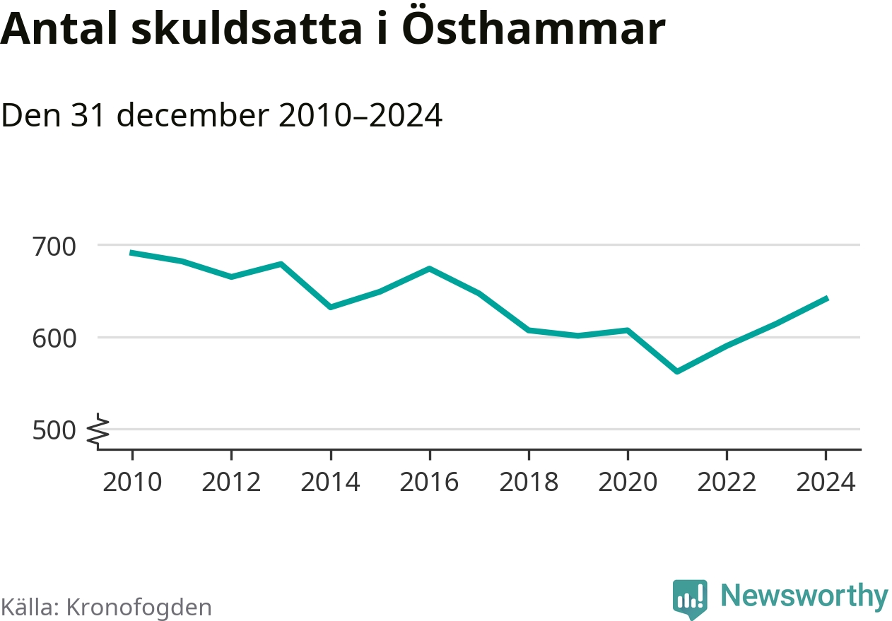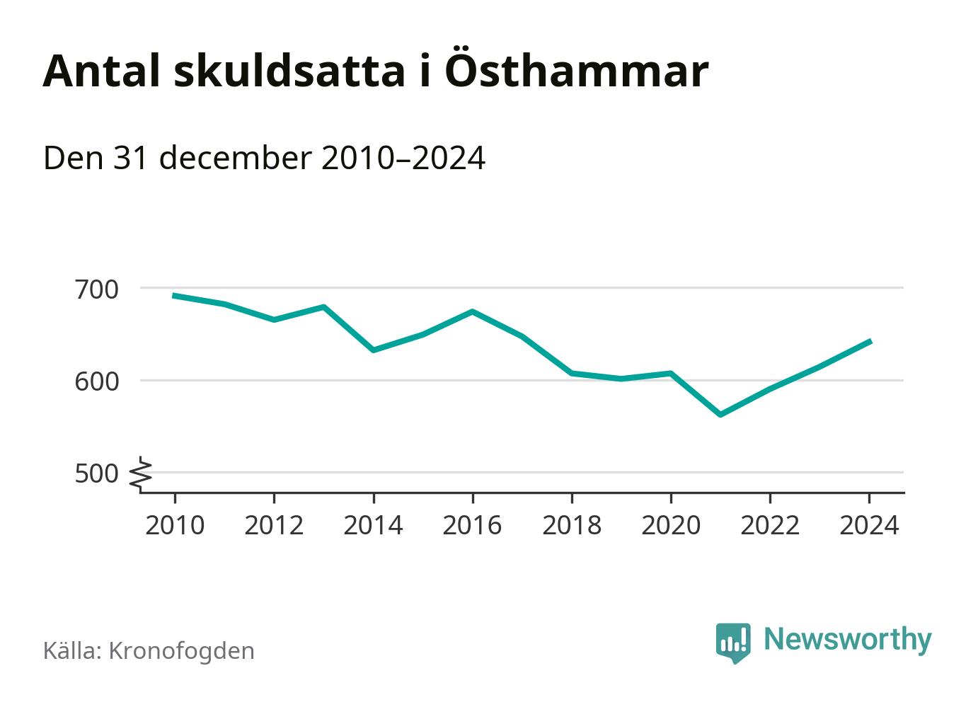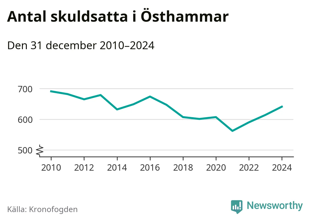 Allt fler Östhammarbor hamnar hos Kronofogden. Vid årskiftet var 641 invånare i kommunen skyldiga totalt 193,9 miljoner kronor. Det är en ökning med 27 personer – eller 4 procent – jämfört med året innan.