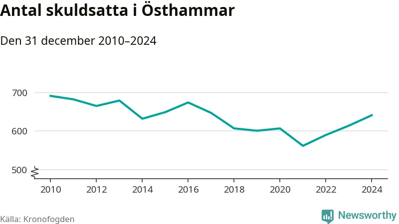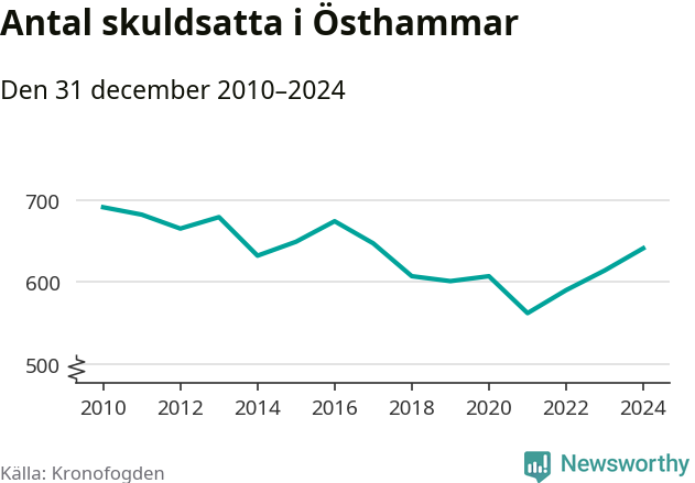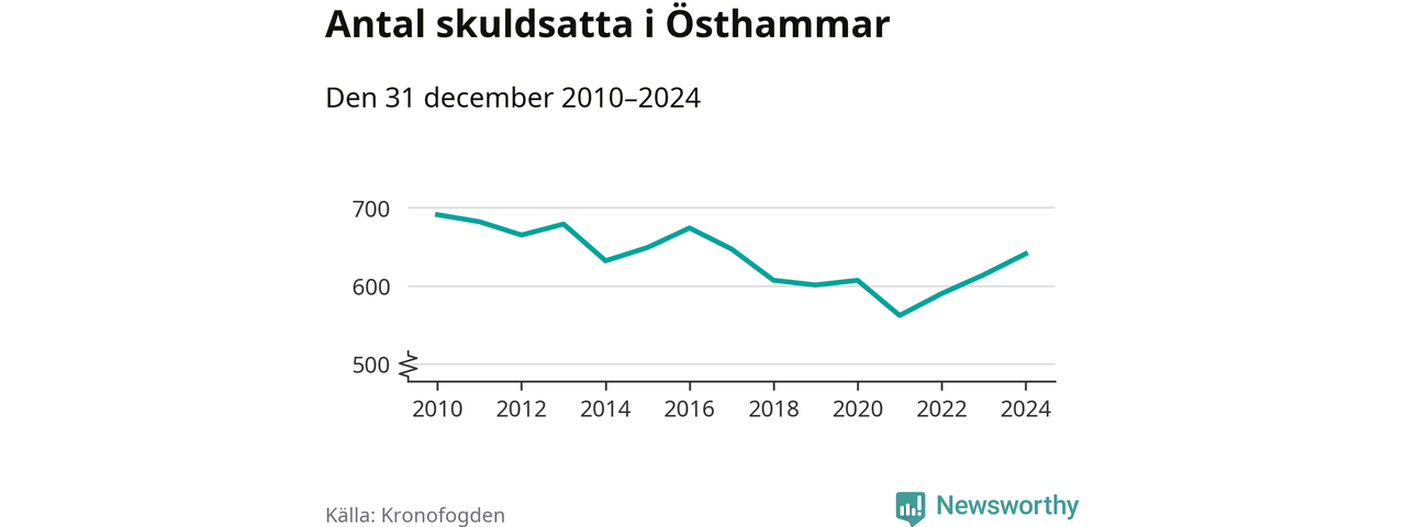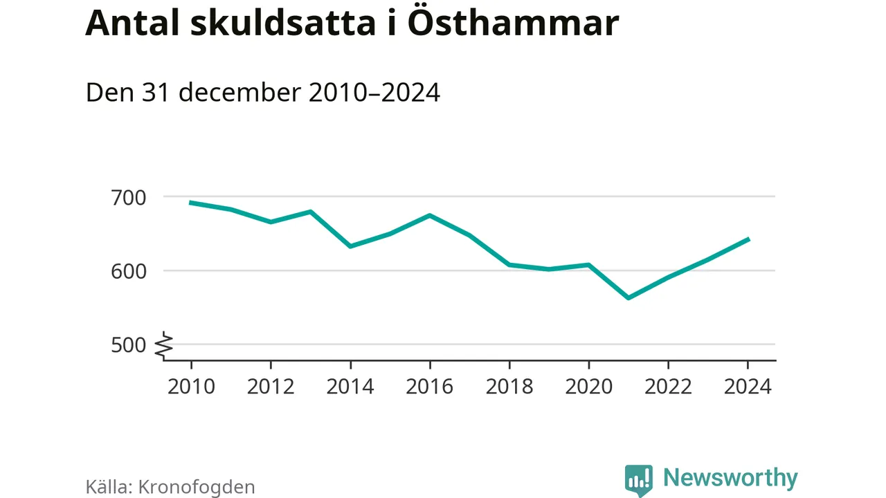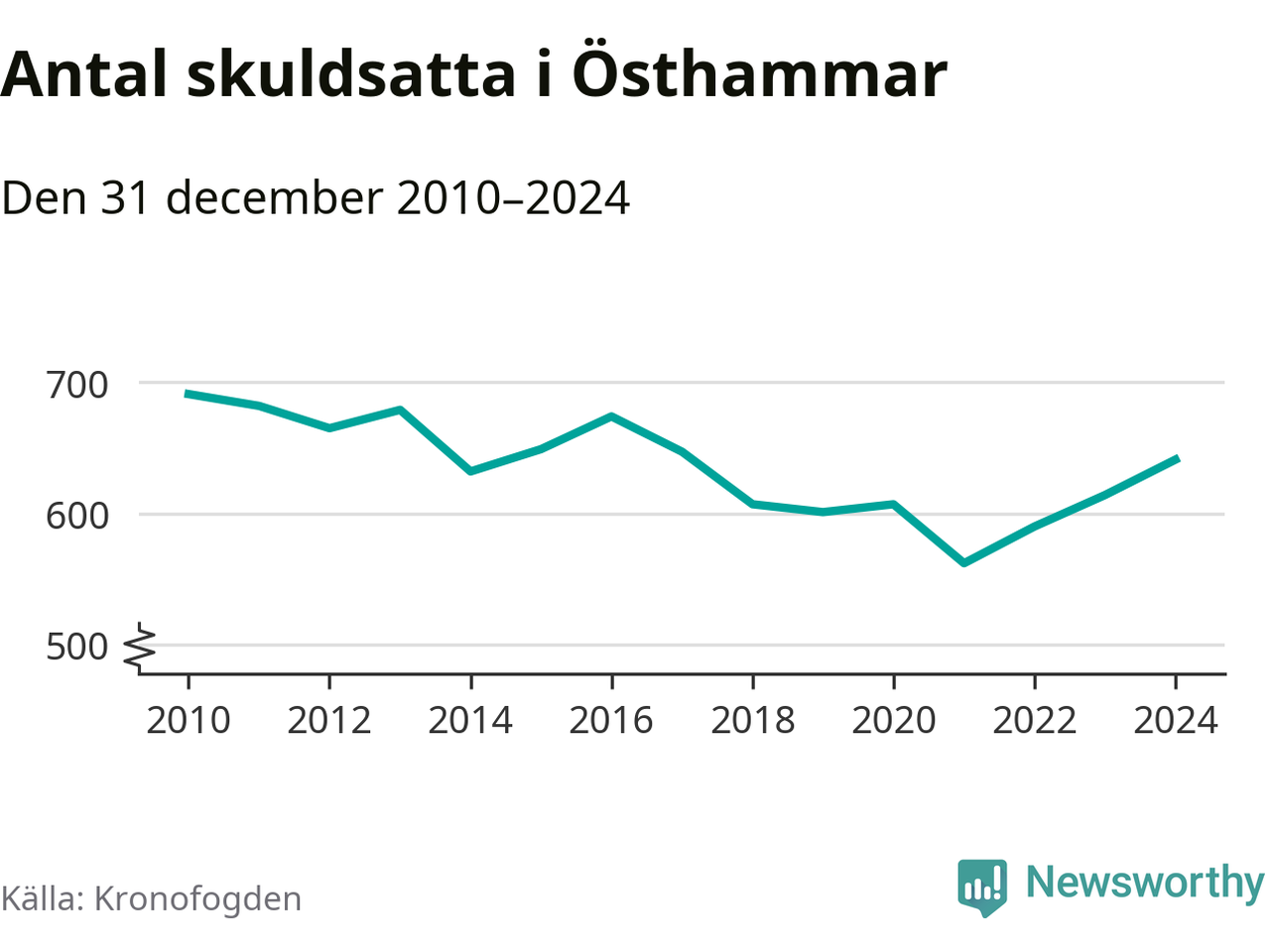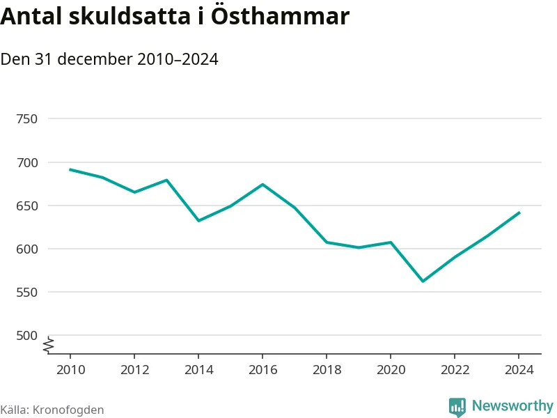 Allt fler Östhammarbor hamnar hos Kronofogden. Vid årskiftet var 641 invånare i kommunen skyldiga totalt 193,9 miljoner kronor. Det är en ökning med 27 personer – eller 4 procent – jämfört med året innan.