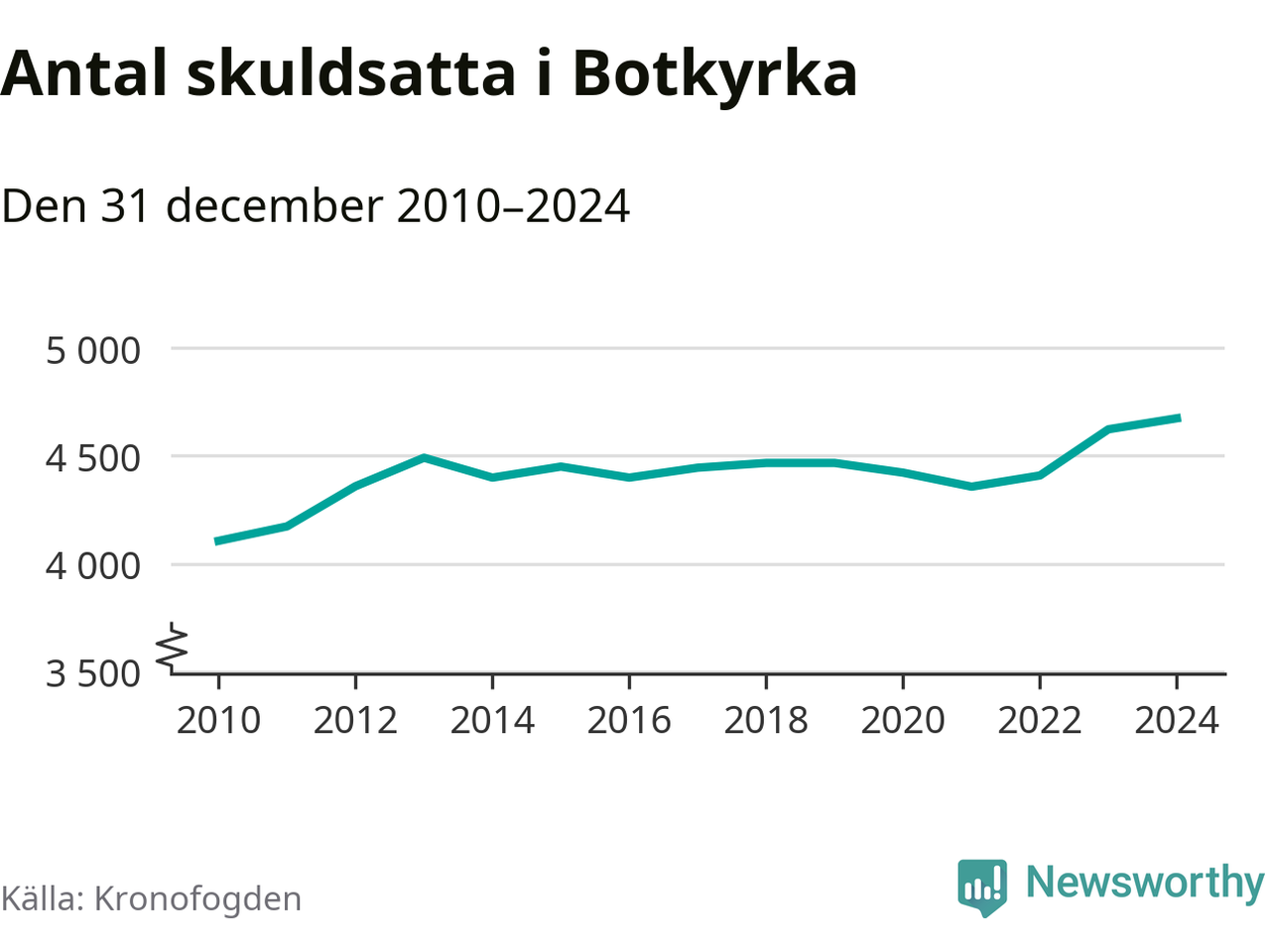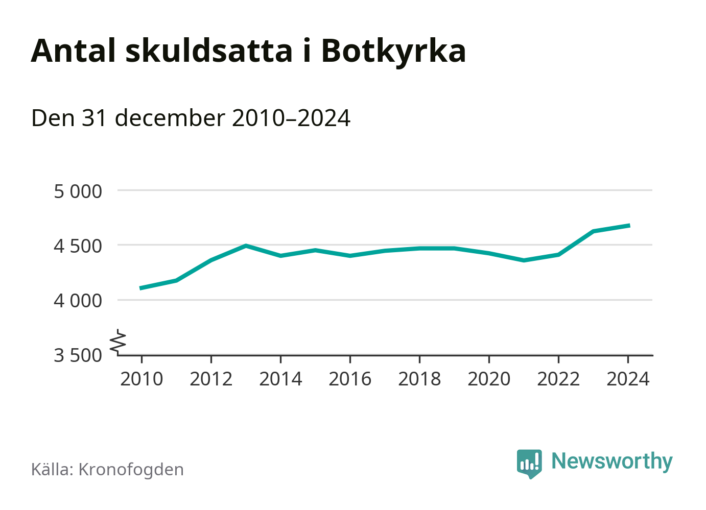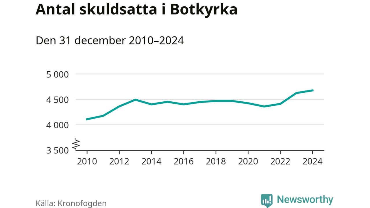 Inte sedan åtminstone 2010 har så många Botkyrkabor hamnat hos Kronofogden. Vid årskiftet var 4 674 invånare i kommunen skyldiga totalt två miljarder kronor. Det är en ökning med 51 personer – eller 1 procent – jämfört med året innan.