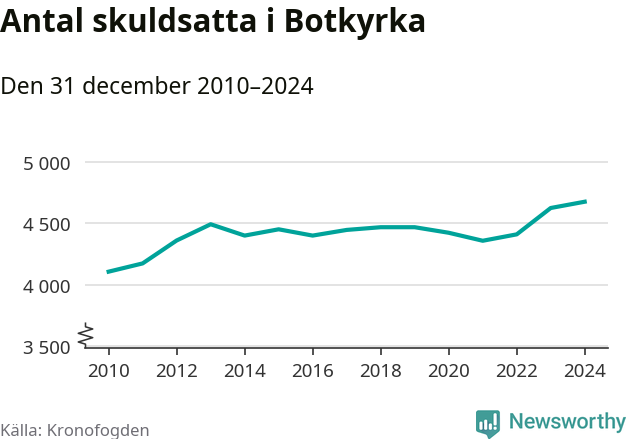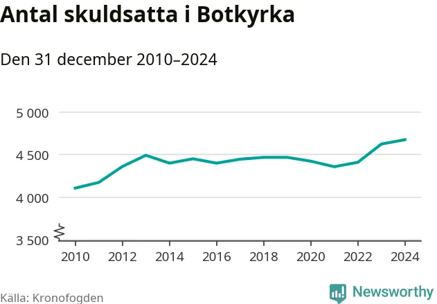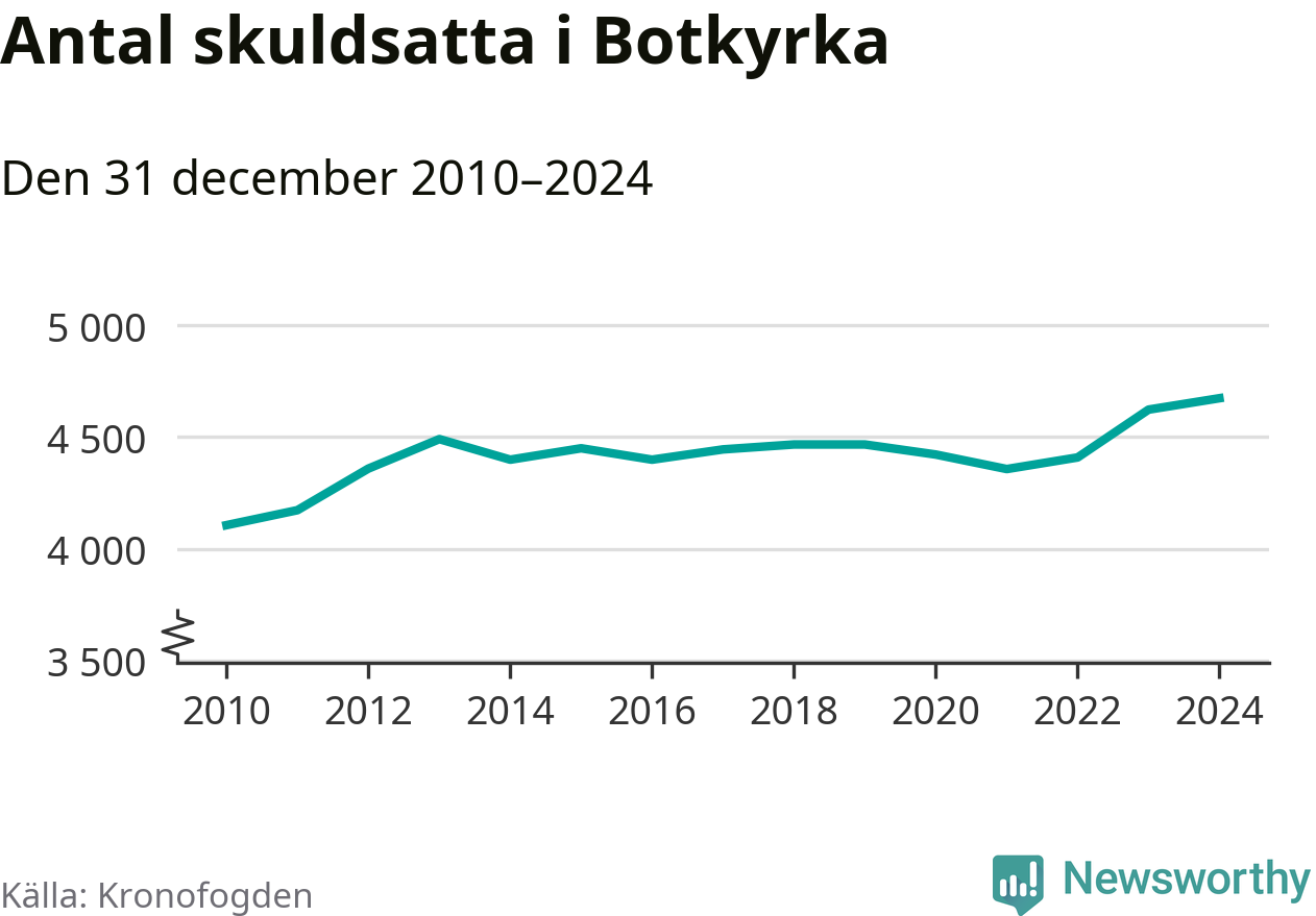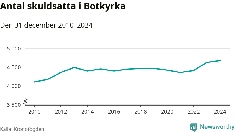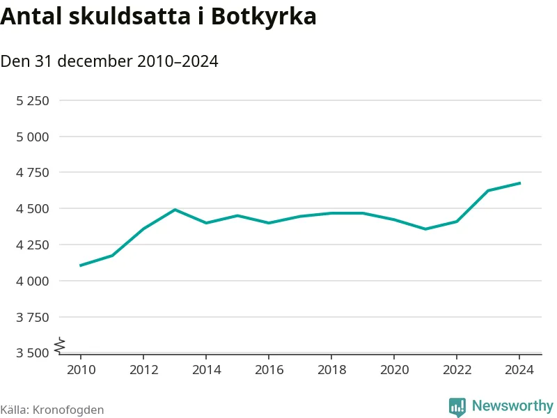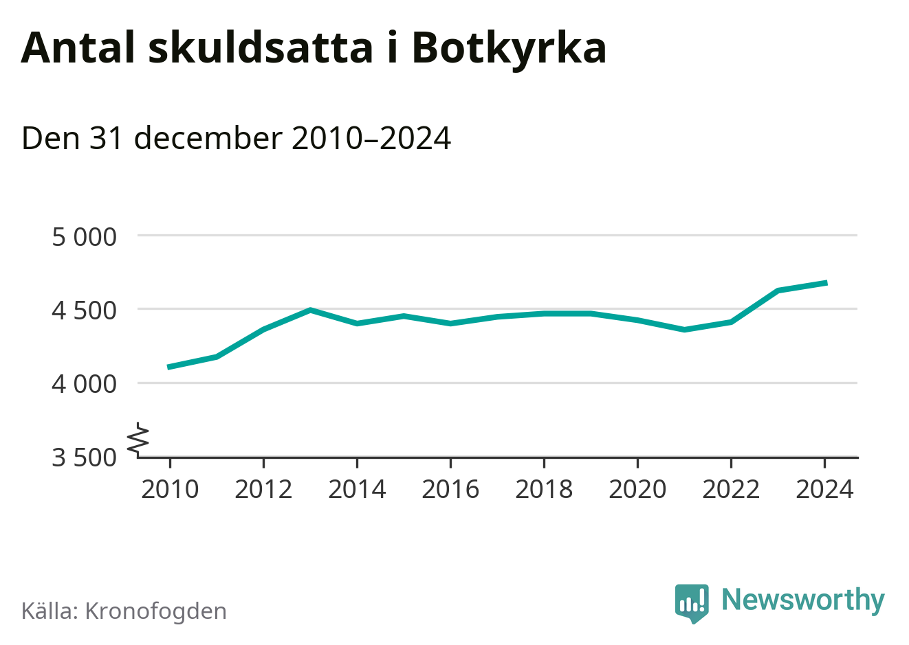 Inte sedan åtminstone 2010 har så många Botkyrkabor hamnat hos Kronofogden. Vid årskiftet var 4 674 invånare i kommunen skyldiga totalt två miljarder kronor. Det är en ökning med 51 personer – eller 1 procent – jämfört med året innan.