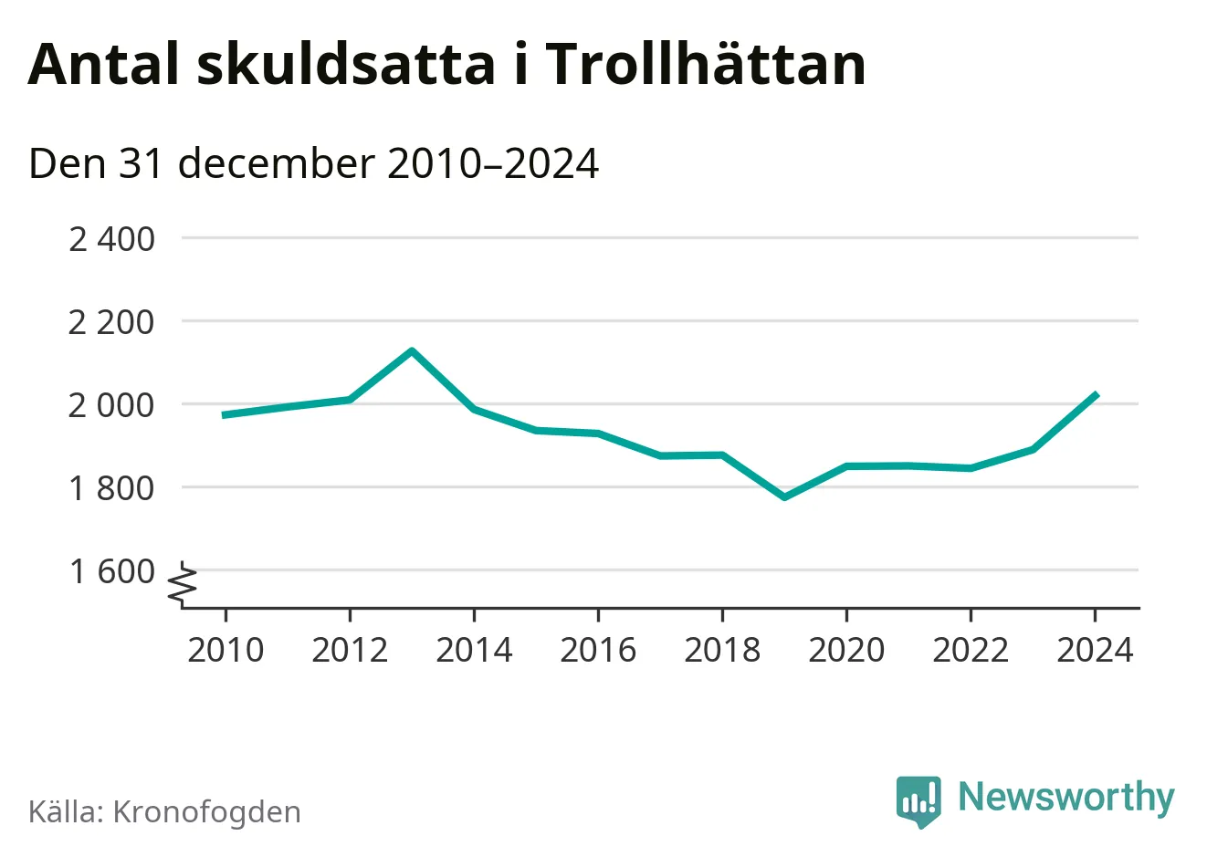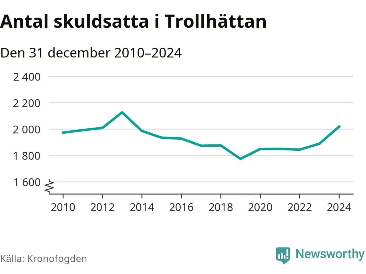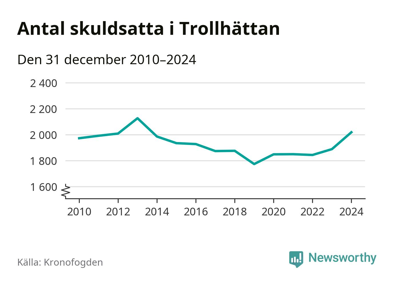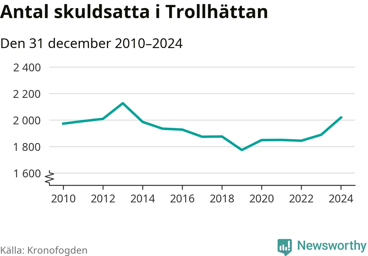 Allt fler Trollhättebor hamnar hos Kronofogden. Vid årskiftet var 2 018 invånare i kommunen skyldiga totalt 733,7 miljoner kronor. Det är en ökning med 130 personer – eller 7 procent – jämfört med året innan.