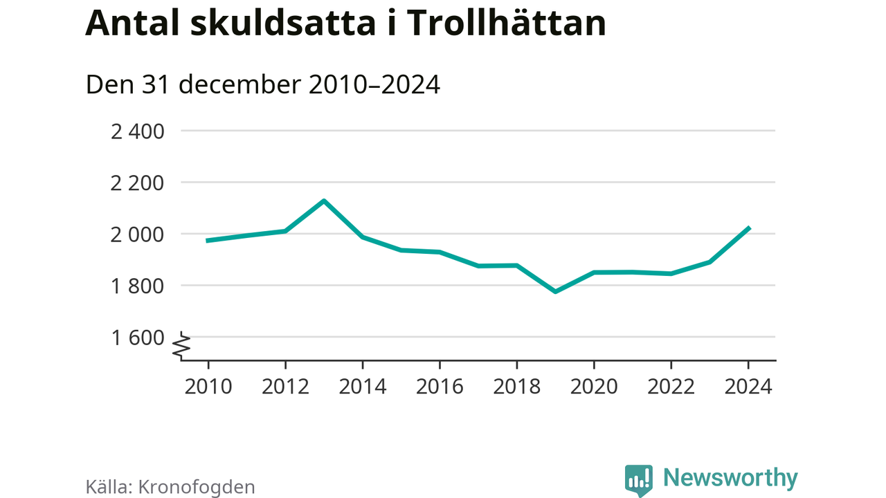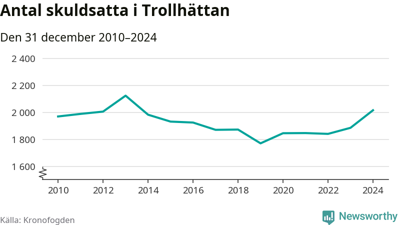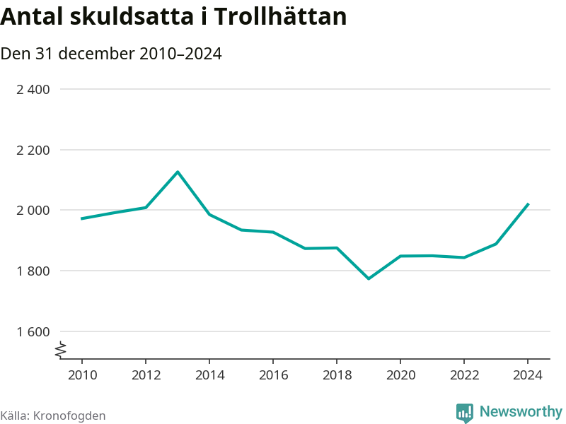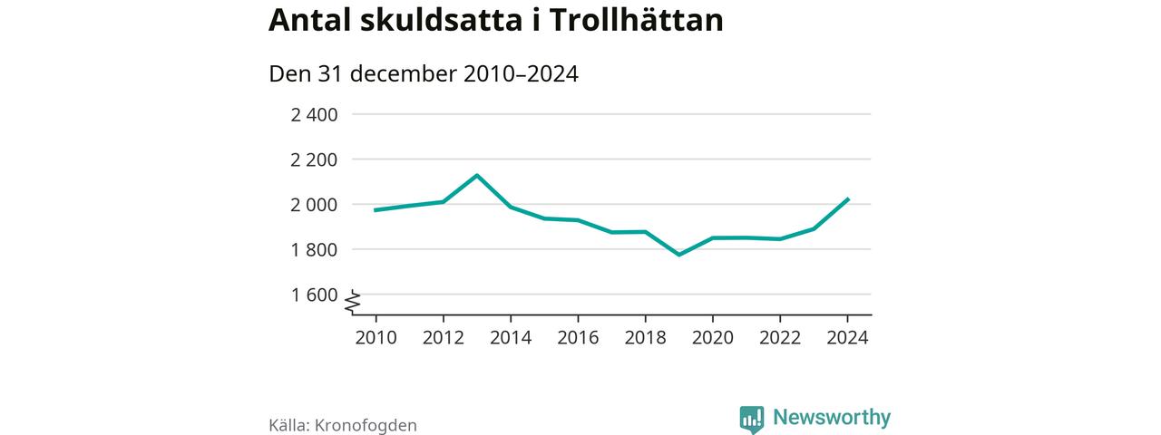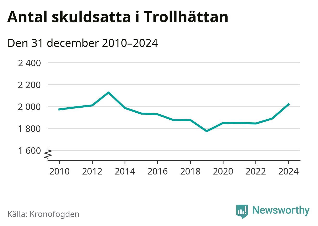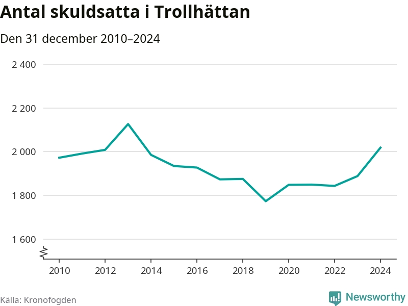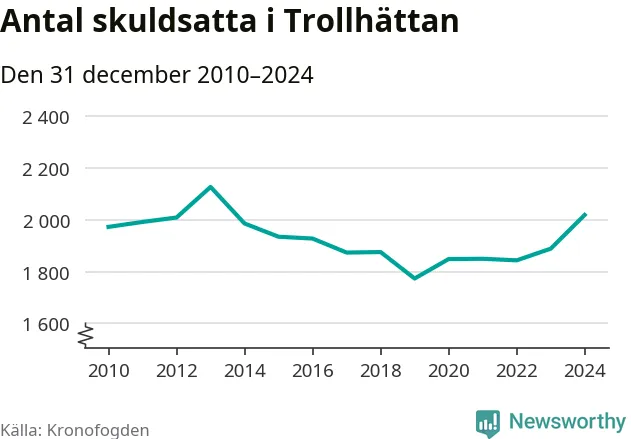 Allt fler Trollhättebor hamnar hos Kronofogden. Vid årskiftet var 2 018 invånare i kommunen skyldiga totalt 733,7 miljoner kronor. Det är en ökning med 130 personer – eller 7 procent – jämfört med året innan.