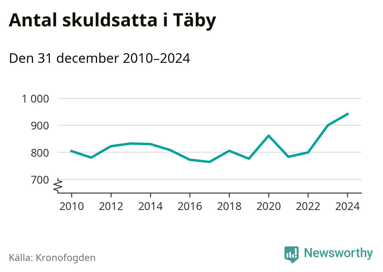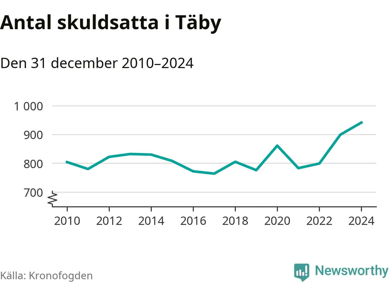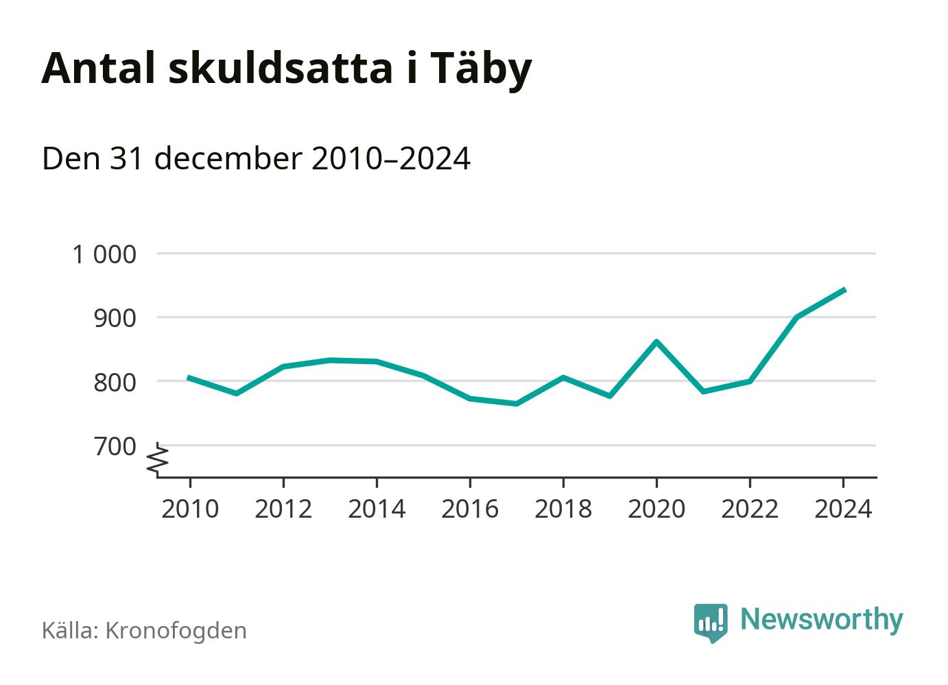 Inte sedan åtminstone 2010 har så många Täbybor hamnat hos Kronofogden. Vid årskiftet var 941 invånare i kommunen skyldiga totalt 386,3 miljoner kronor. Det är en ökning med 42 personer – eller 5 procent – jämfört med året innan.