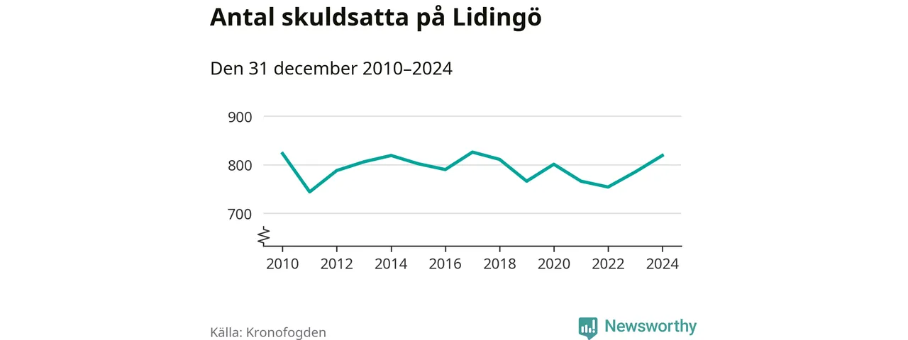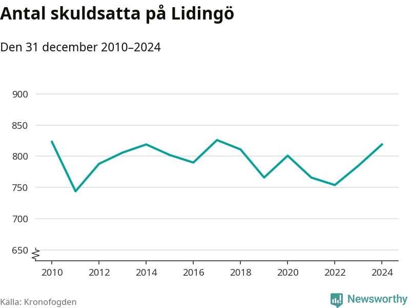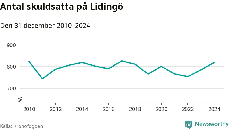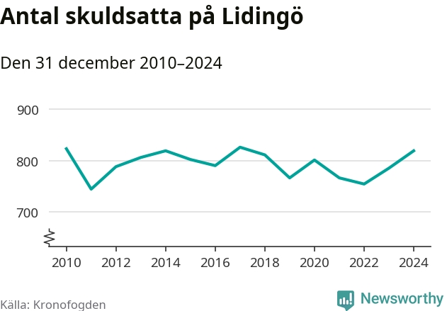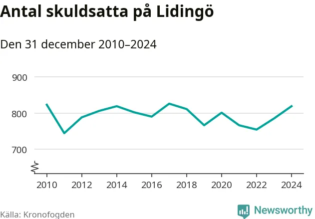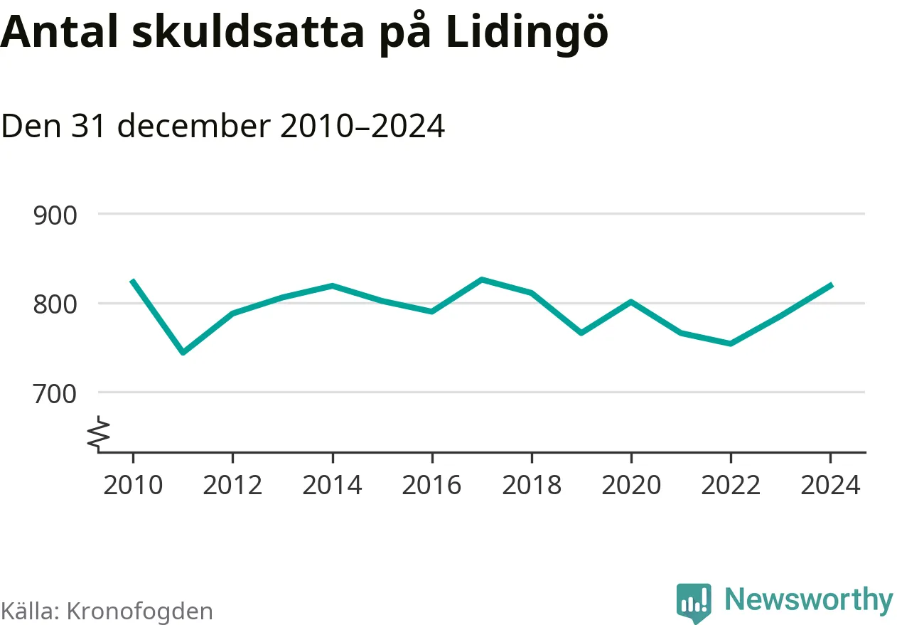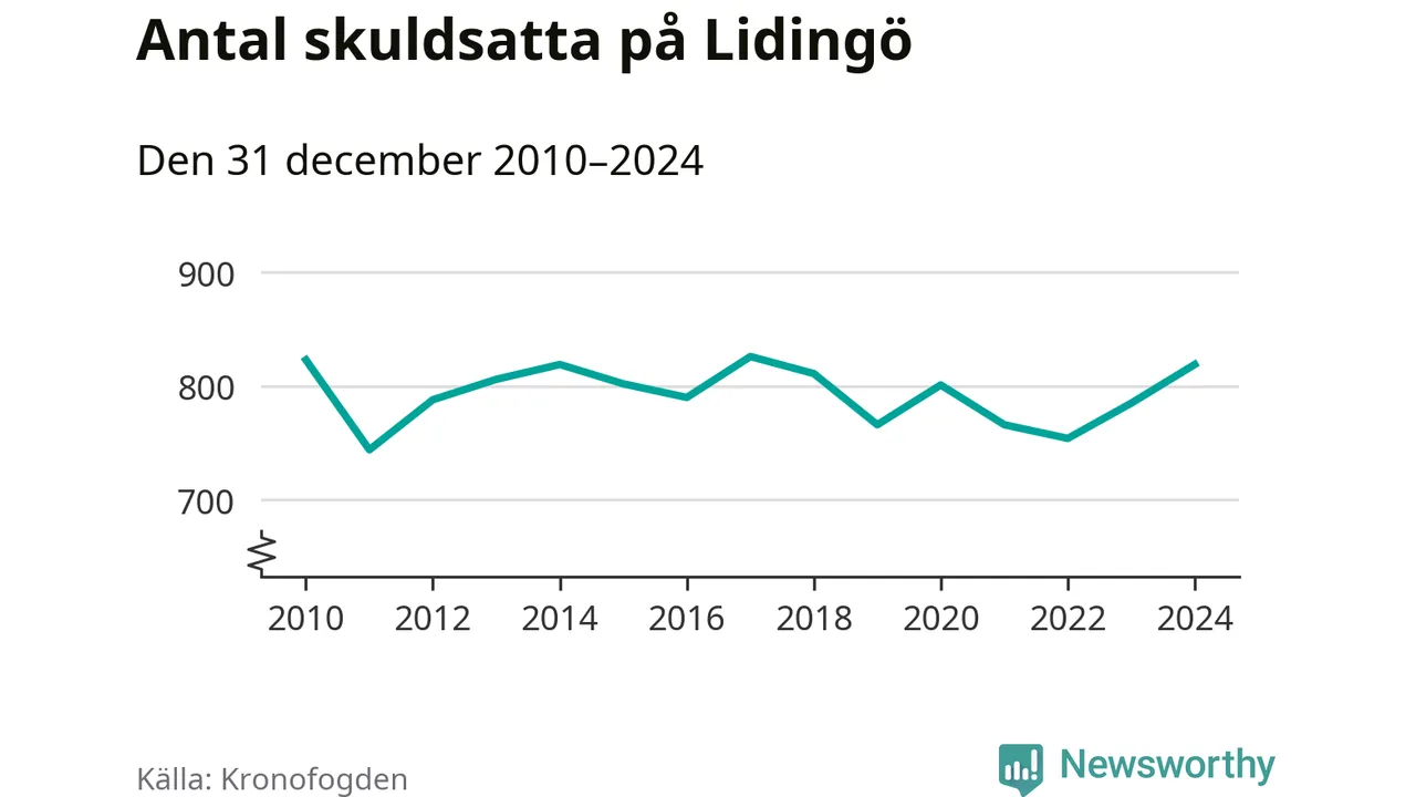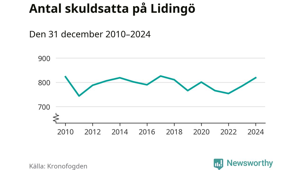 Allt fler Lidingöbor hamnar hos Kronofogden. Vid årskiftet var 819 invånare i kommunen skyldiga totalt 598,1 miljoner kronor. Det är en ökning med 34 personer – eller 4 procent – jämfört med året innan.