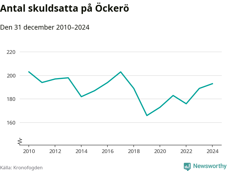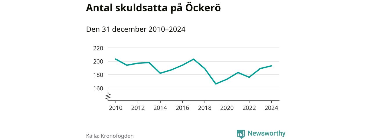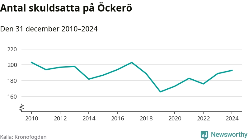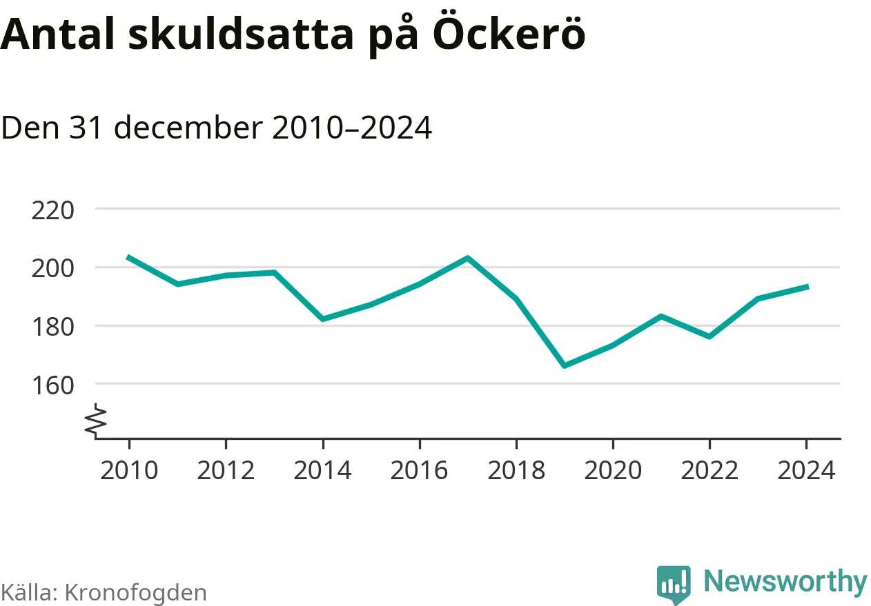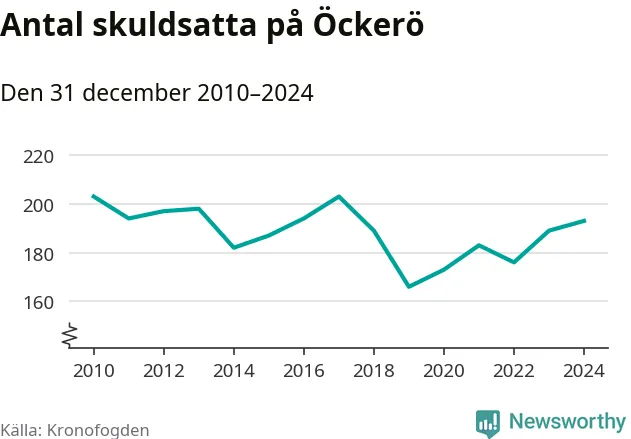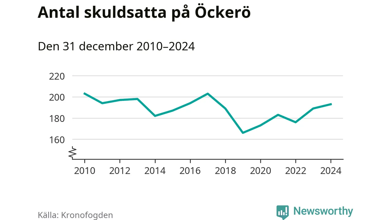 Allt fler Öckeröbor hamnar hos Kronofogden. Vid årskiftet var 193 invånare i kommunen skyldiga totalt 66,7 miljoner kronor. Det är en ökning med fyra personer jämfört med året innan.
