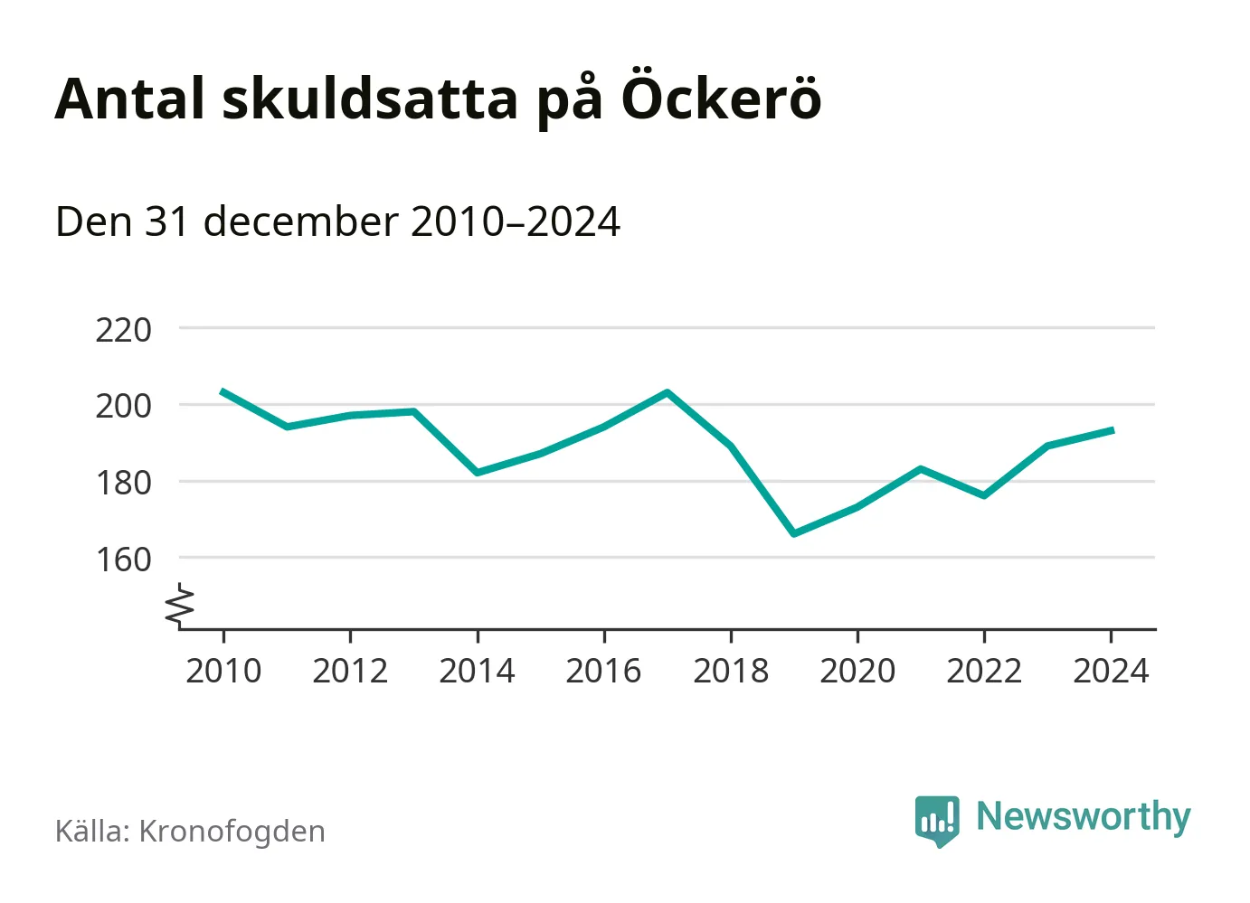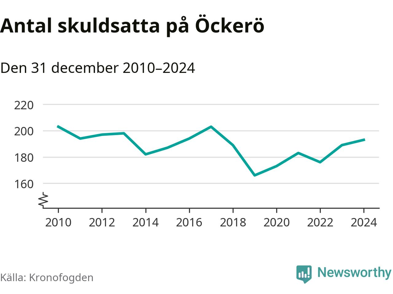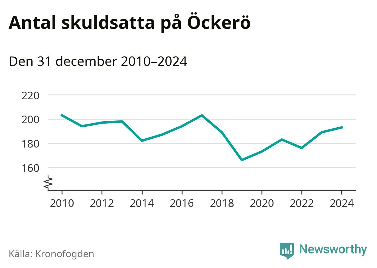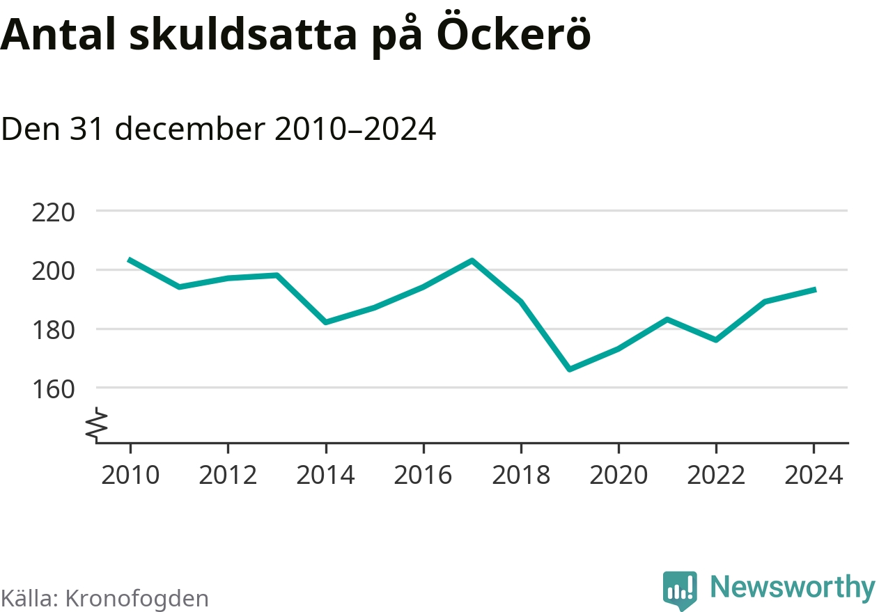 Allt fler Öckeröbor hamnar hos Kronofogden. Vid årskiftet var 193 invånare i kommunen skyldiga totalt 66,7 miljoner kronor. Det är en ökning med fyra personer jämfört med året innan.