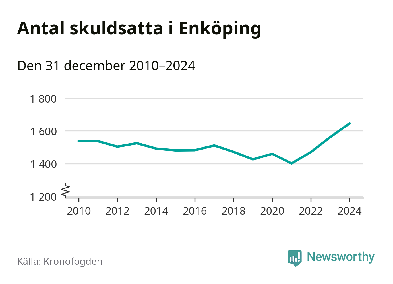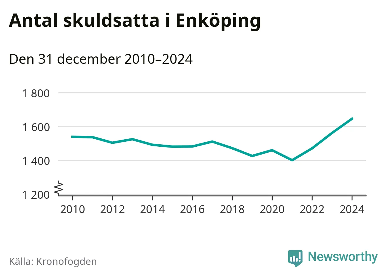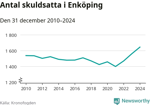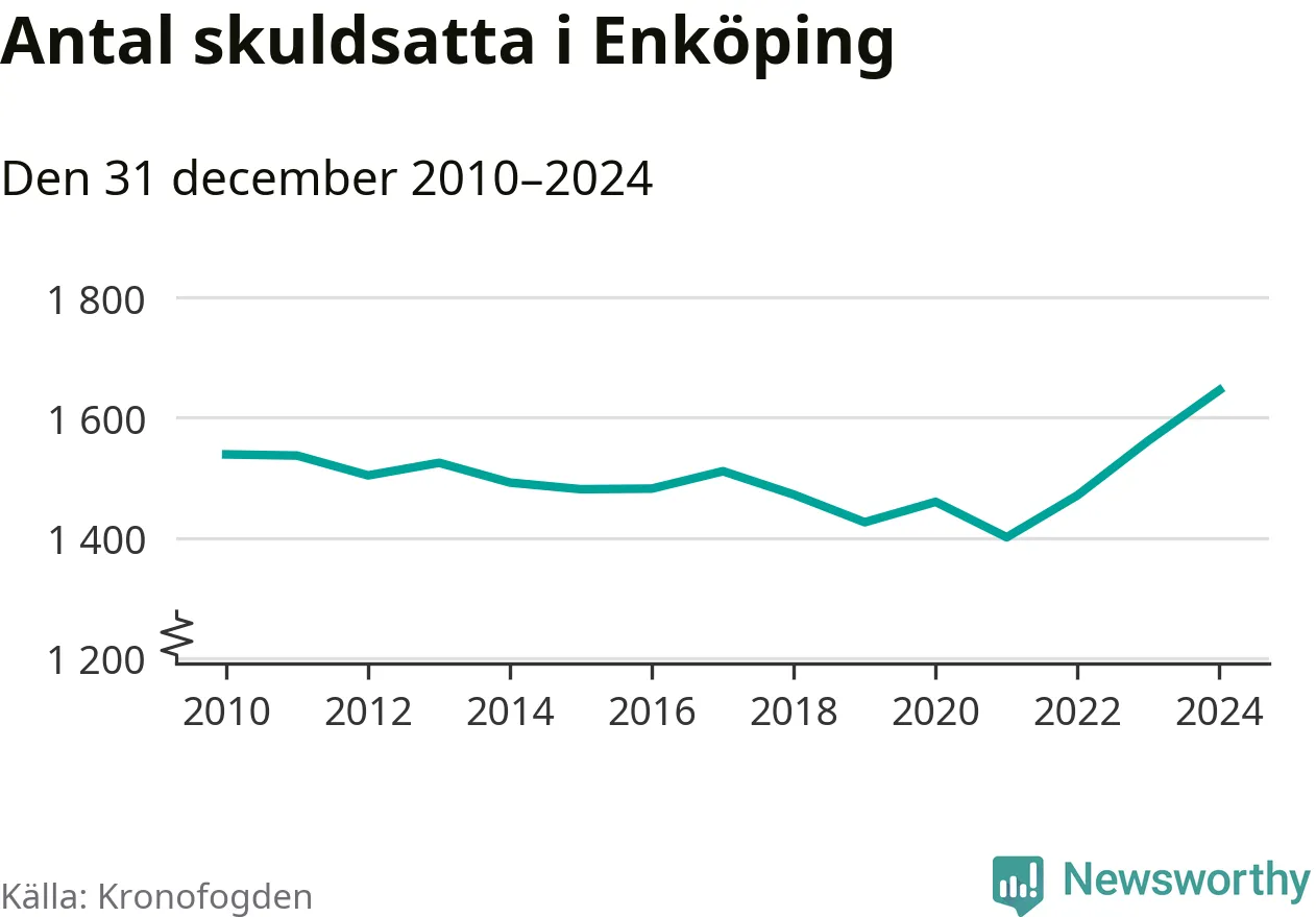 Inte sedan åtminstone 2010 har så många Enköpingsbor hamnat hos Kronofogden. Vid årskiftet var 1 646 invånare i kommunen skyldiga totalt 440,3 miljoner kronor. Det är en ökning med 84 personer – eller 5 procent – jämfört med året innan.
