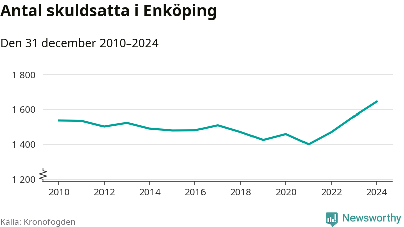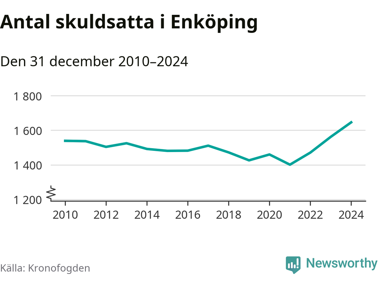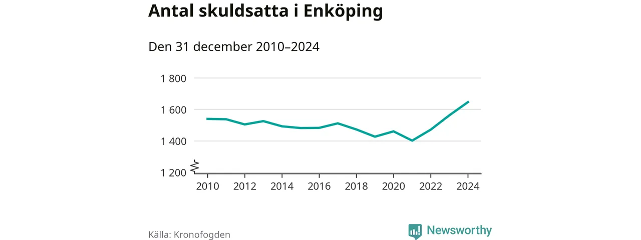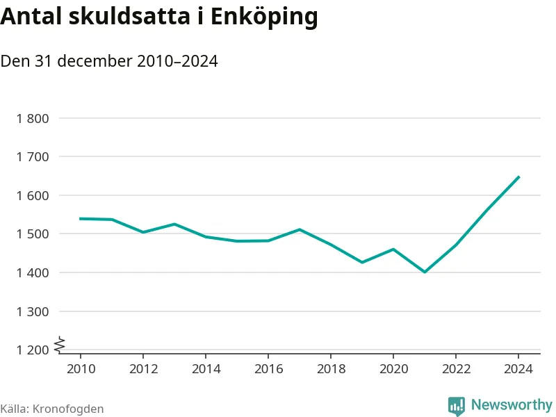 Inte sedan åtminstone 2010 har så många Enköpingsbor hamnat hos Kronofogden. Vid årskiftet var 1 646 invånare i kommunen skyldiga totalt 440,3 miljoner kronor. Det är en ökning med 84 personer – eller 5 procent – jämfört med året innan.