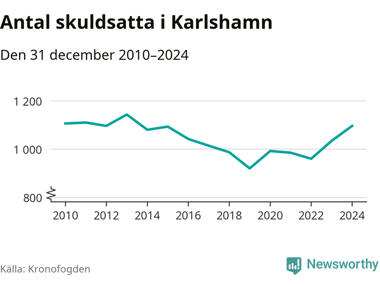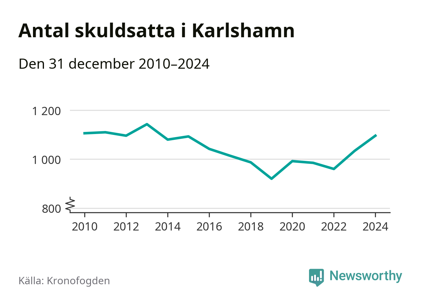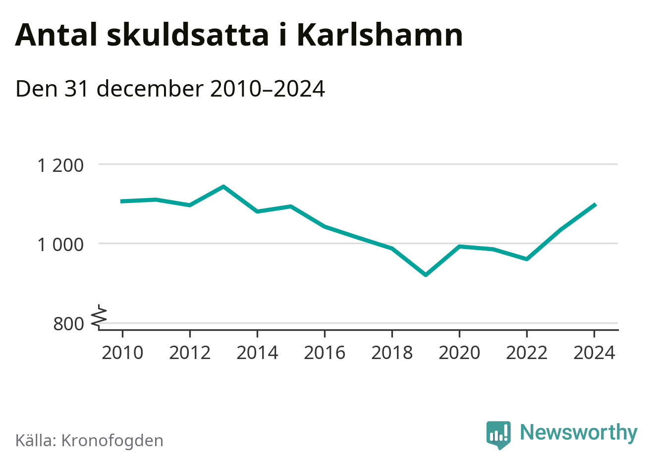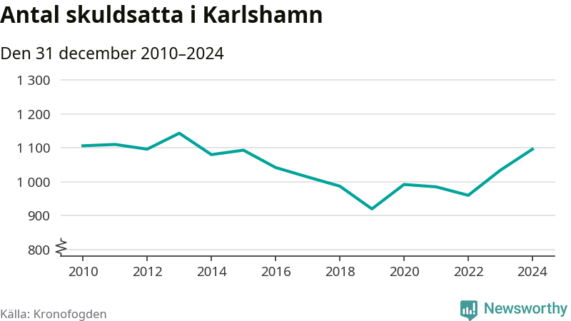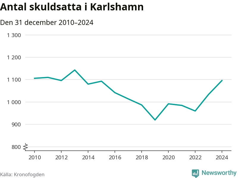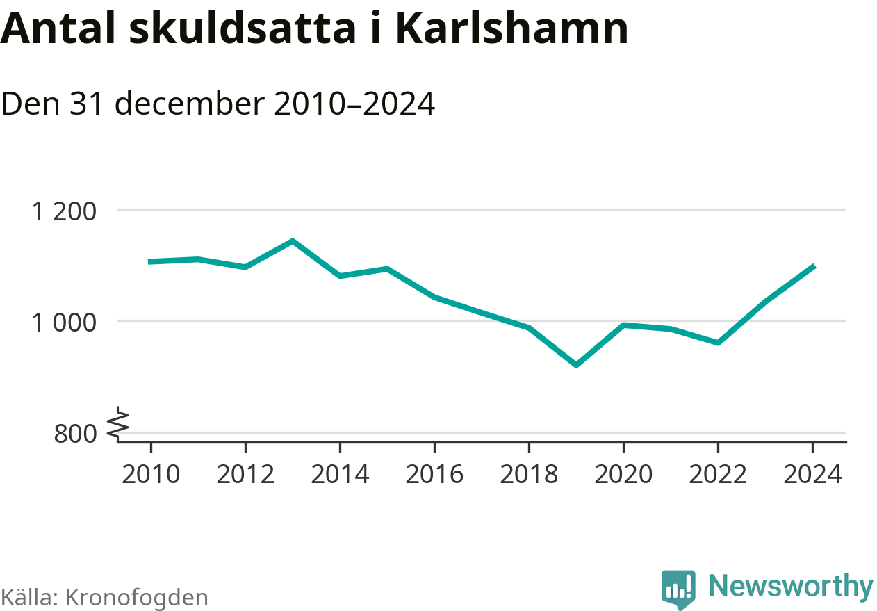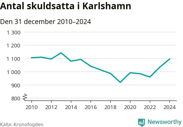 Allt fler Karlshamnsbor hamnar hos Kronofogden. Vid årskiftet var 1 096 invånare i kommunen skyldiga totalt 378,9 miljoner kronor. Det är en ökning med 62 personer – eller 6 procent – jämfört med året innan.