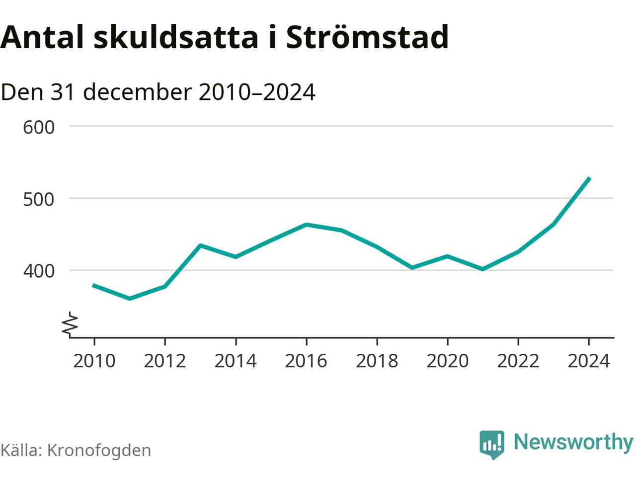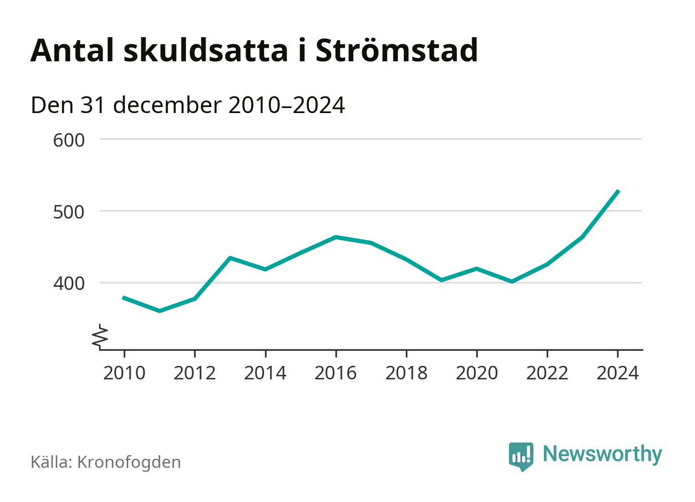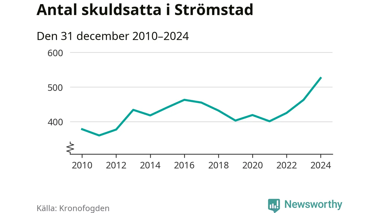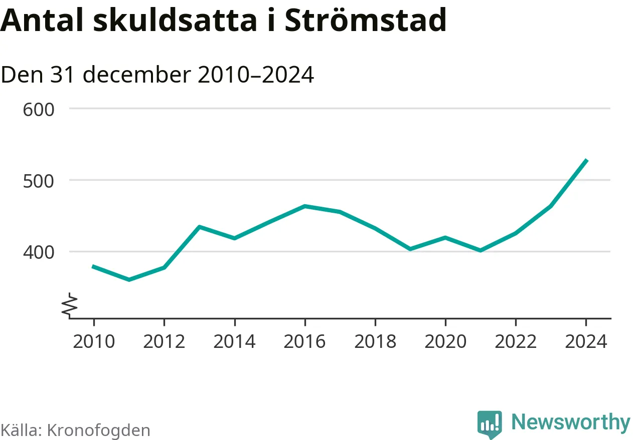 Inte sedan åtminstone 2010 har så många Strömstadsbor hamnat hos Kronofogden. Vid årskiftet var 526 invånare i kommunen skyldiga totalt 280,5 miljoner kronor. Det är en ökning med 63 personer – eller 14 procent – jämfört med året innan.