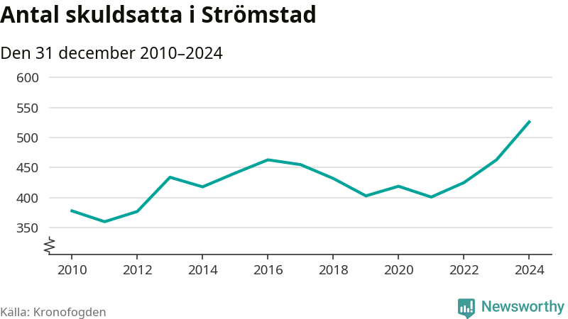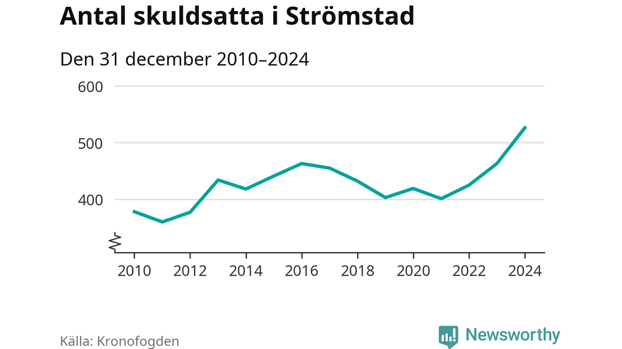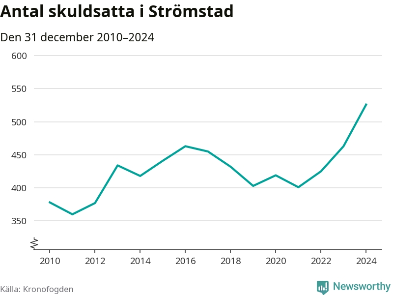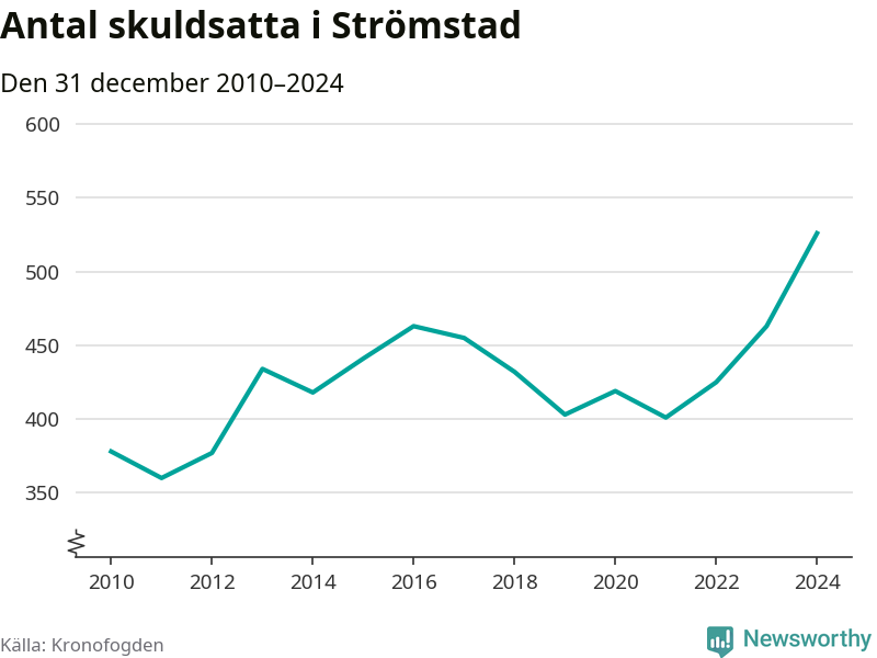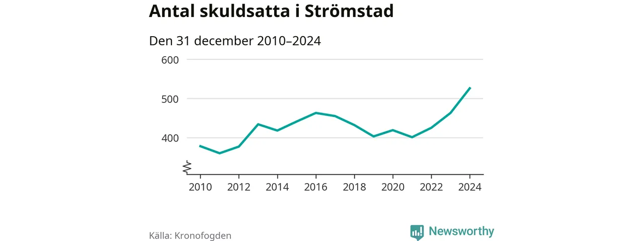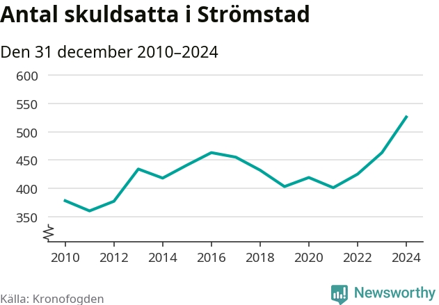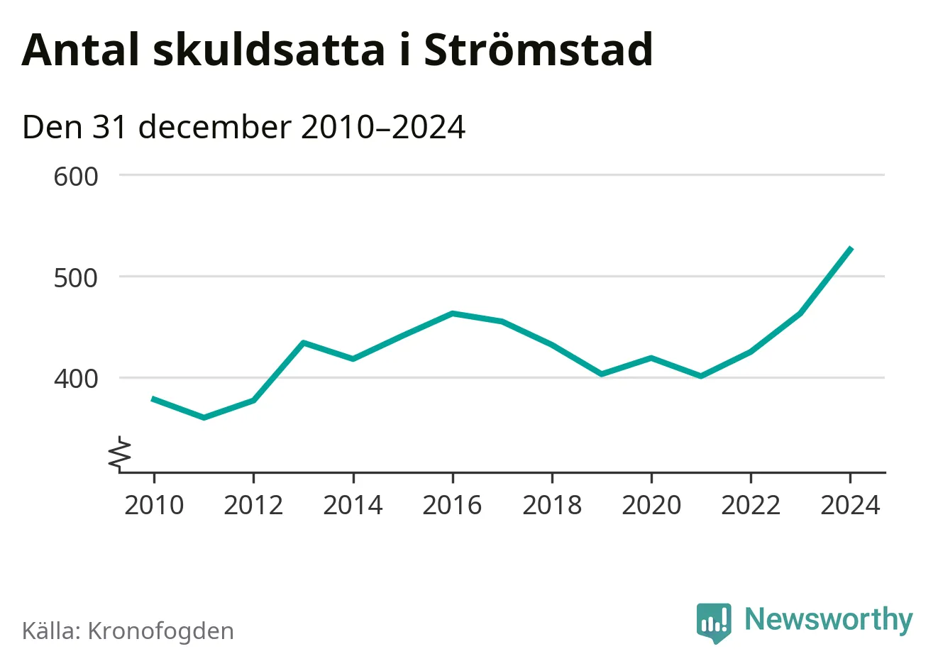 Inte sedan åtminstone 2010 har så många Strömstadsbor hamnat hos Kronofogden. Vid årskiftet var 526 invånare i kommunen skyldiga totalt 280,5 miljoner kronor. Det är en ökning med 63 personer – eller 14 procent – jämfört med året innan.