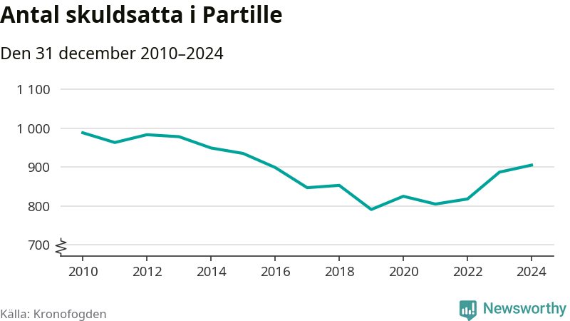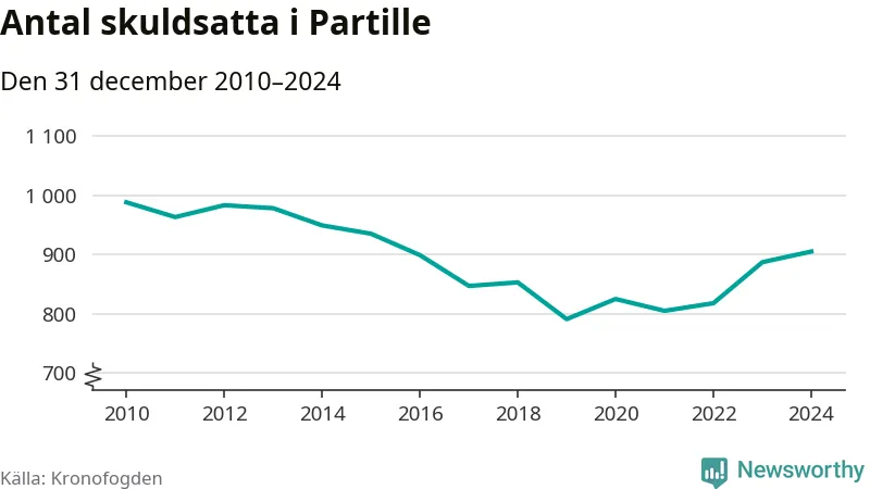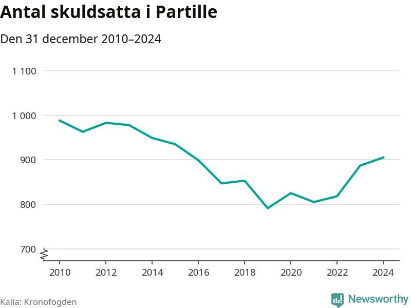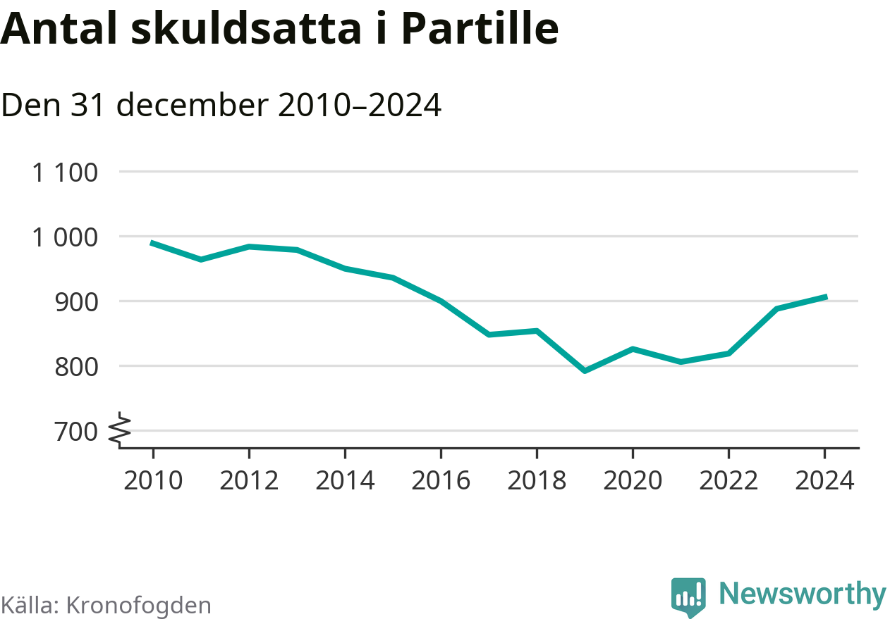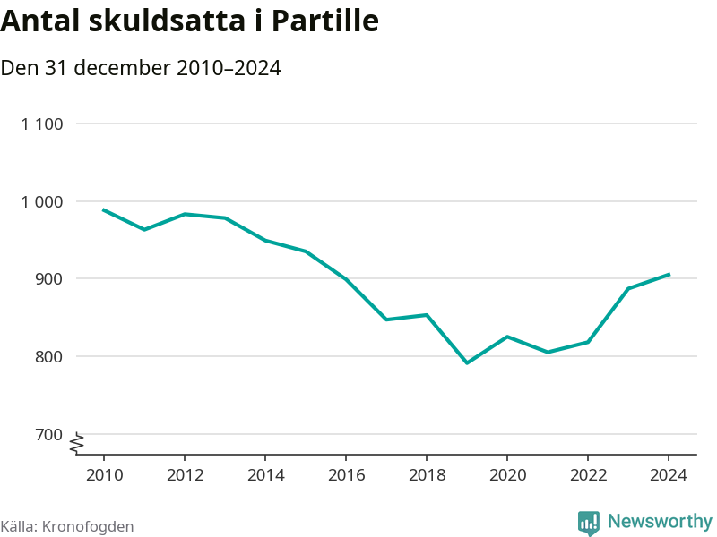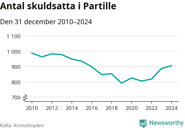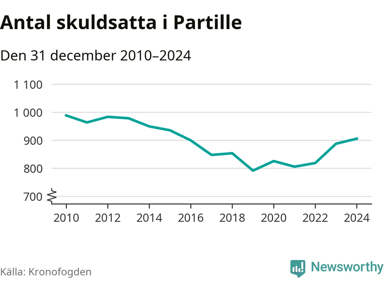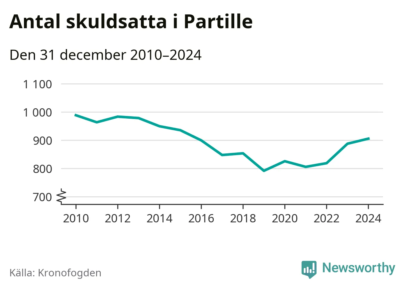 Allt fler Partillebor hamnar hos Kronofogden. Vid årskiftet var 905 invånare i kommunen skyldiga totalt 319,9 miljoner kronor. Det är en ökning med 18 personer – eller 2 procent – jämfört med året innan.