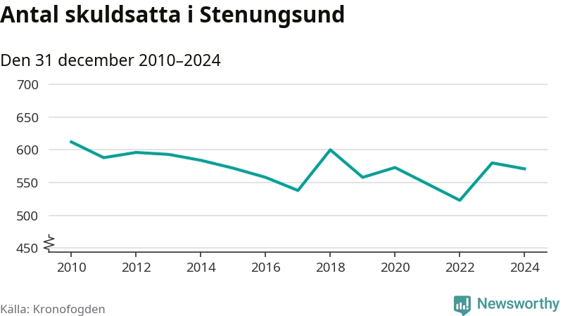 Antalet Stenungsundsbor hos Kronofogden minskade i fjol. Vid årskiftet var 571 invånare i kommunen skyldiga totalt 167,7 miljoner kronor. Det är en minskning med nio personer jämfört med året innan.