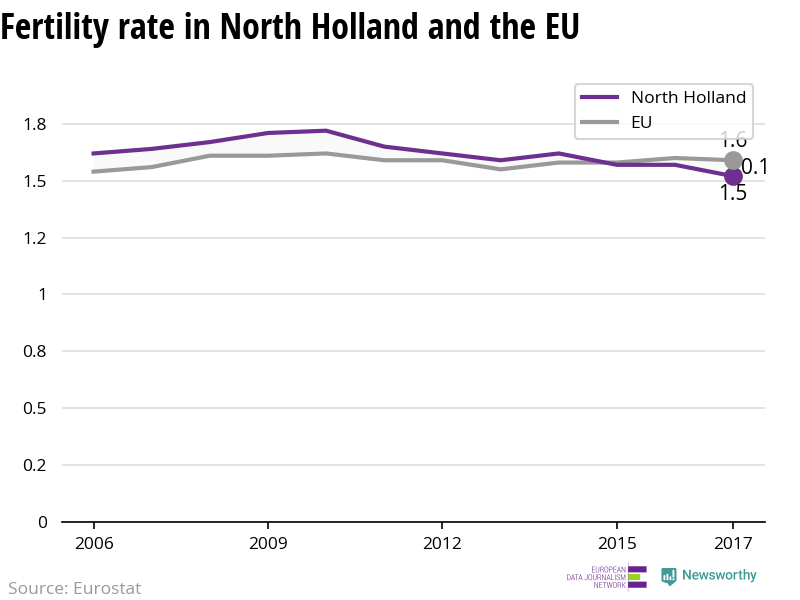 North Holland has a relatively low fertility rate compared with the rest of Europe, as each woman gives birth to on average just 1.52 children, based on the latest figures from 2017, and in the last five years, fertility rates have fallen, from 1.62 children per woman in 2012.
