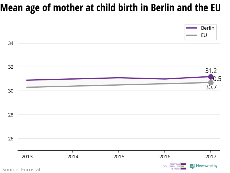 Women in Berlin have children on average when they are 31.2 years old, which is older than most regions in Europe.
