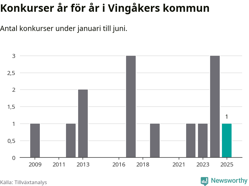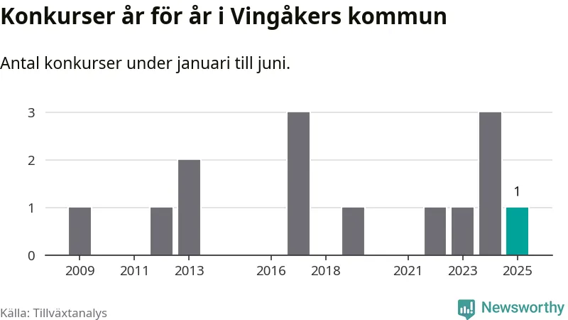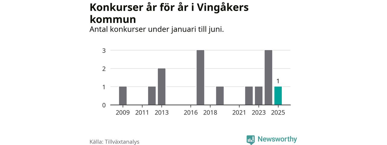 Konkursvågen i Sverige håller i sig. I Vingåkers kommun har ett företag fallit under årets första sex månader.