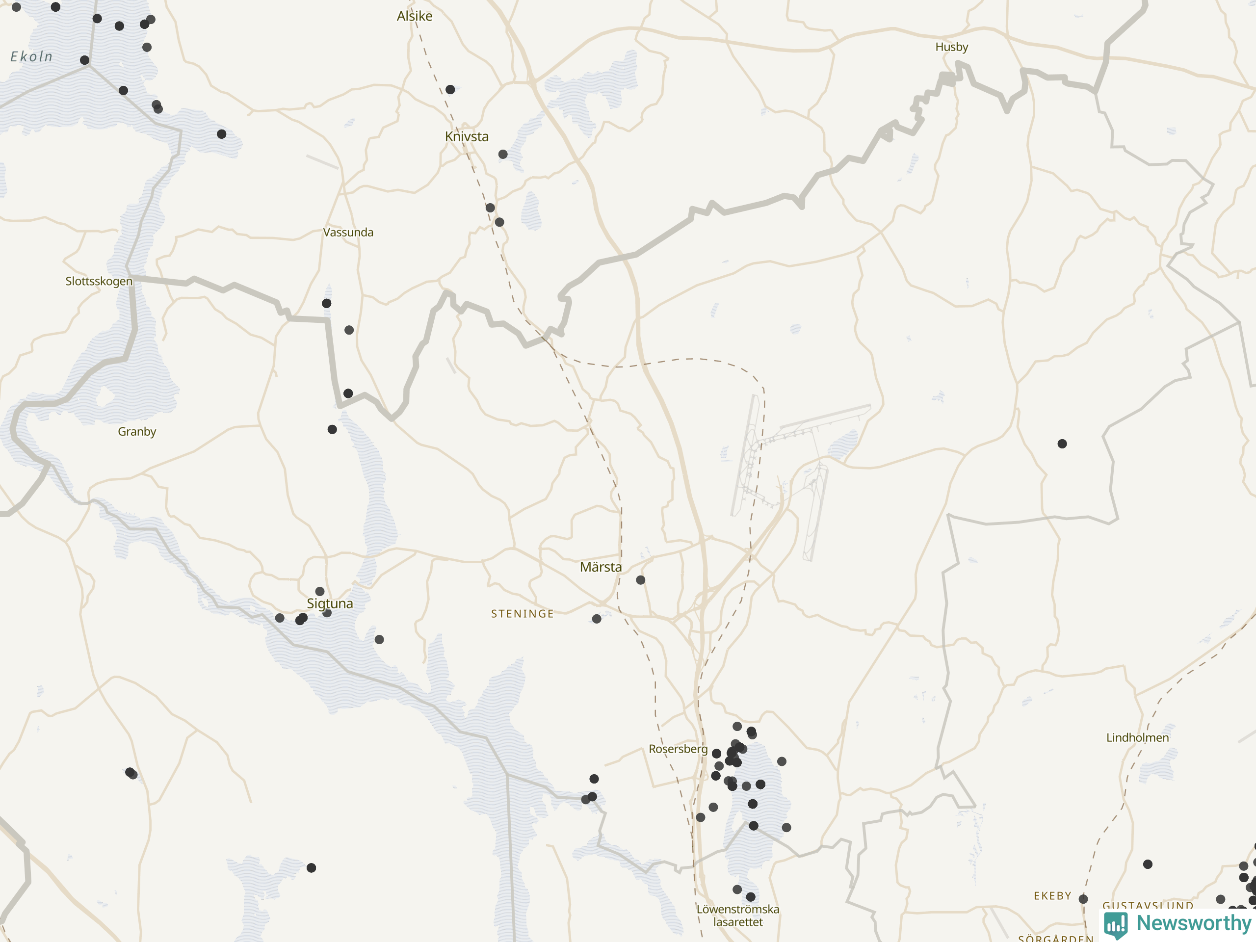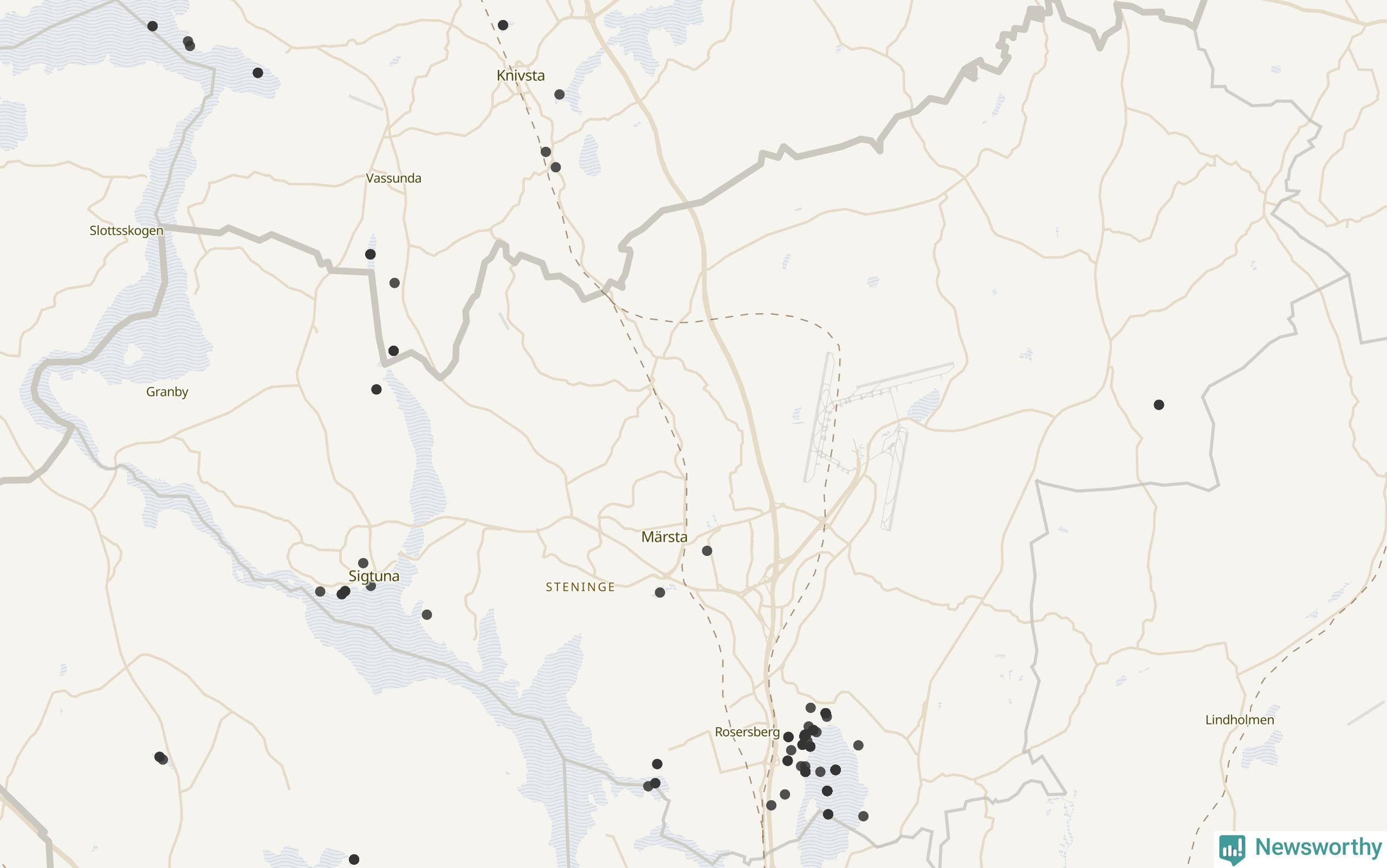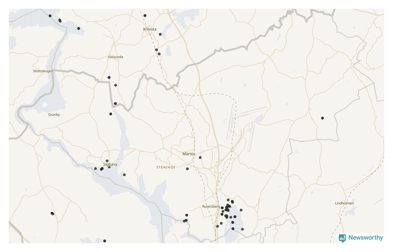 84 av de 208 högriskarterna har observerats i Sigtuna kommun minst en gång under de senaste 20 åren, enligt data från Artportalen. 28 av dem har rapporterats sedan årsskiftet.