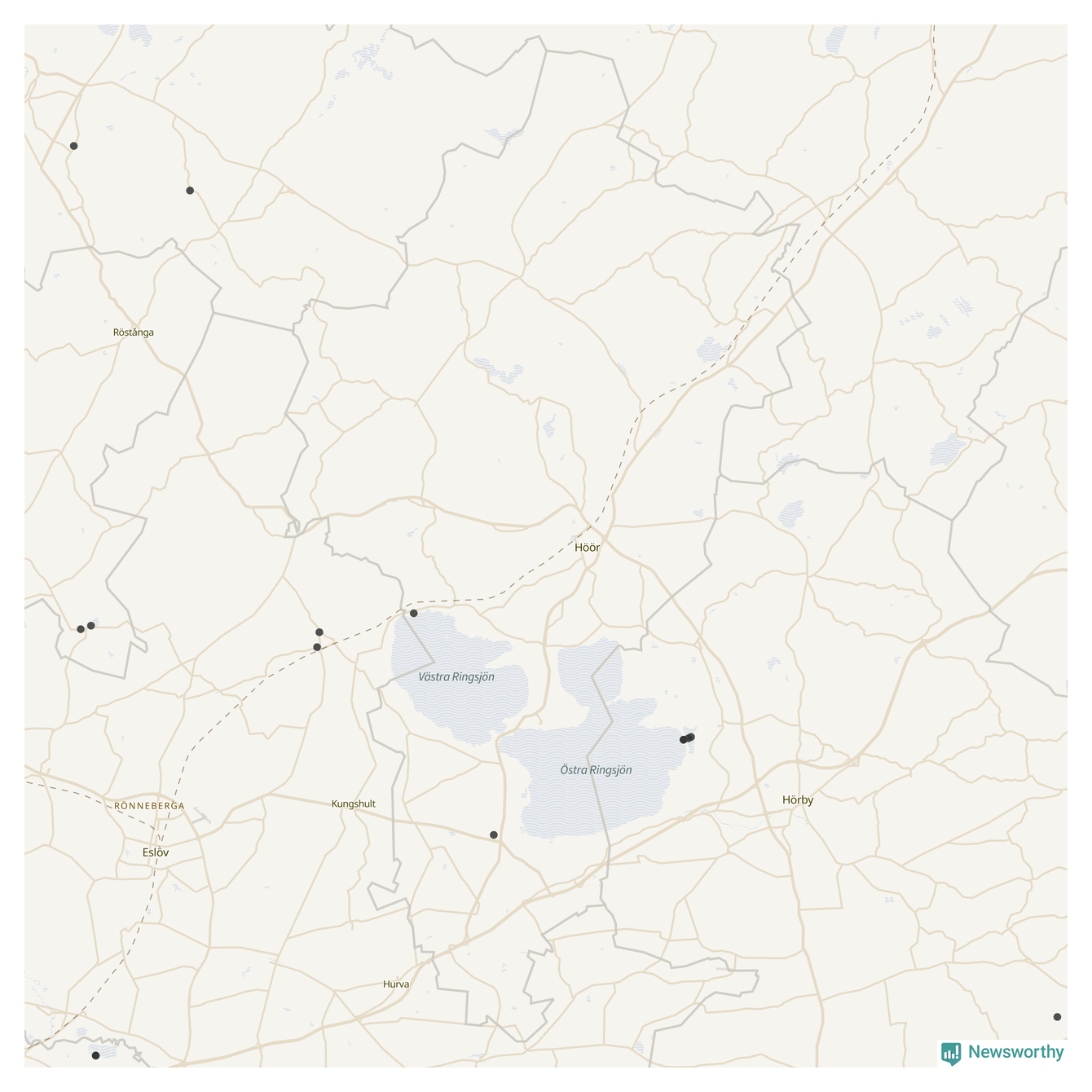 I Höörs kommun har även tvättbjörn observerats. Dessa har bara rapporterats i ett fåtal andra kommuner.