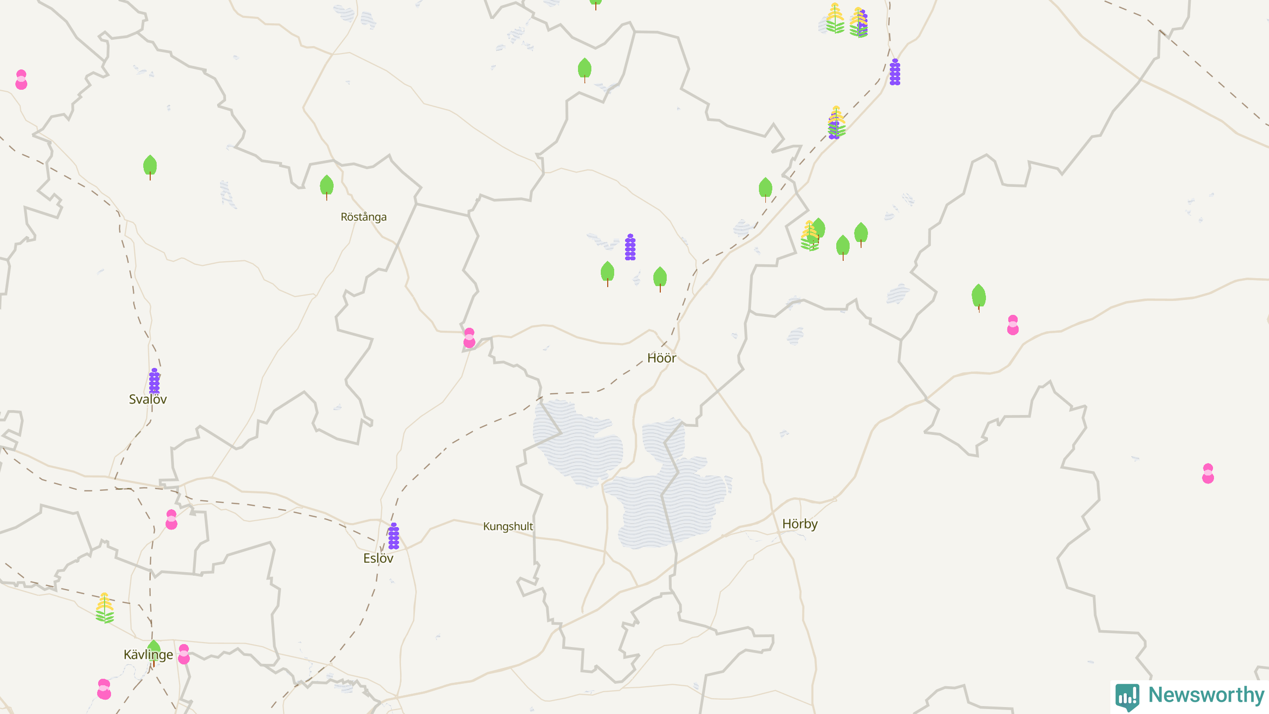 SLU Artdatabanken har på uppdrag av Naturvårdsverket och Havs- och vattenmyndigheten riskklassificerat 1 622 olika arter i Sverige – 208 av dem bedöms vara invasiva arter som utgör mycket hög risk för den biologiska mångfalden i Sverige. Flera finns redan i landet och många av dem är etablerade. Newsworthy har gått igenom drygt 1 300 000 observationer av dessa arter.