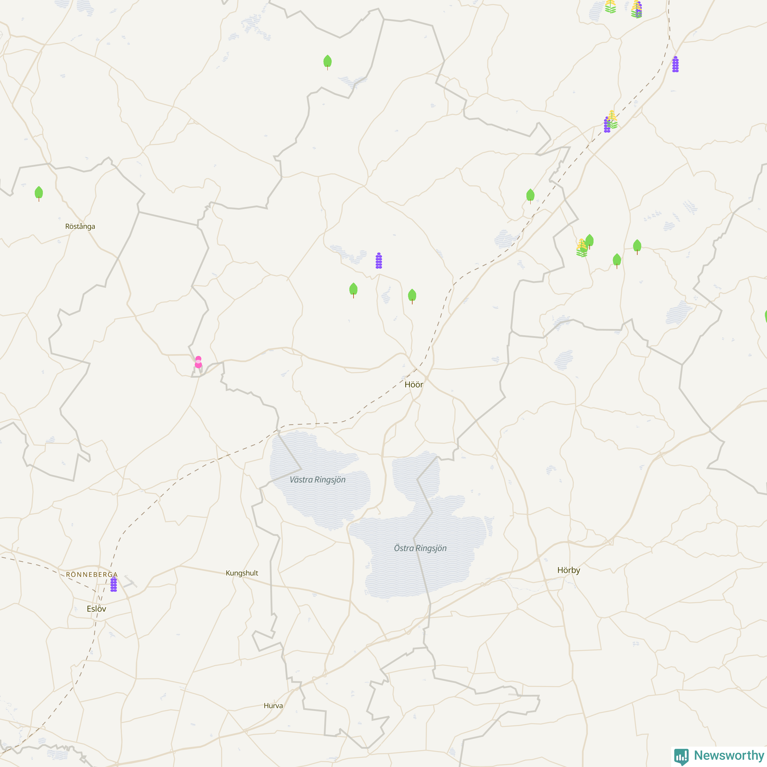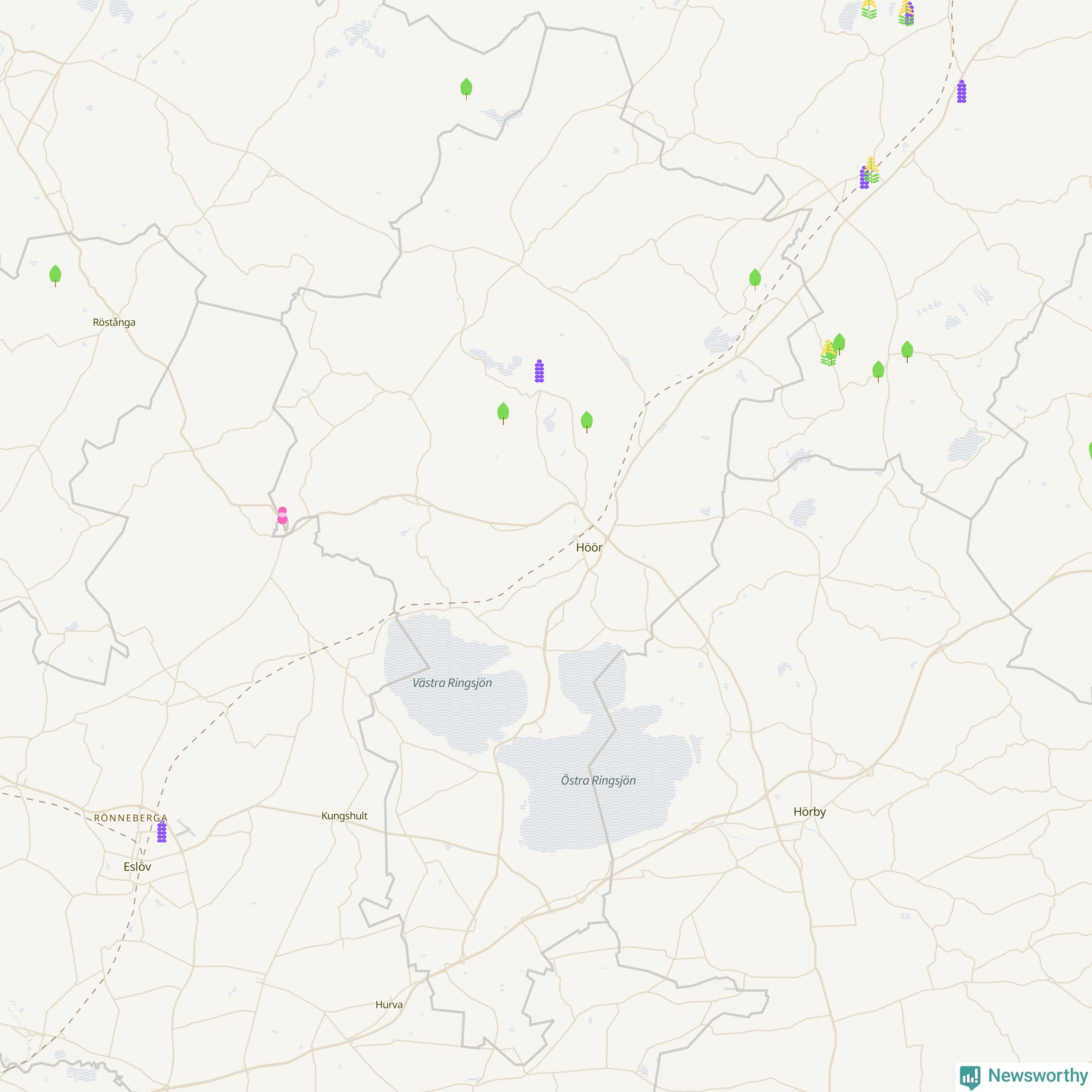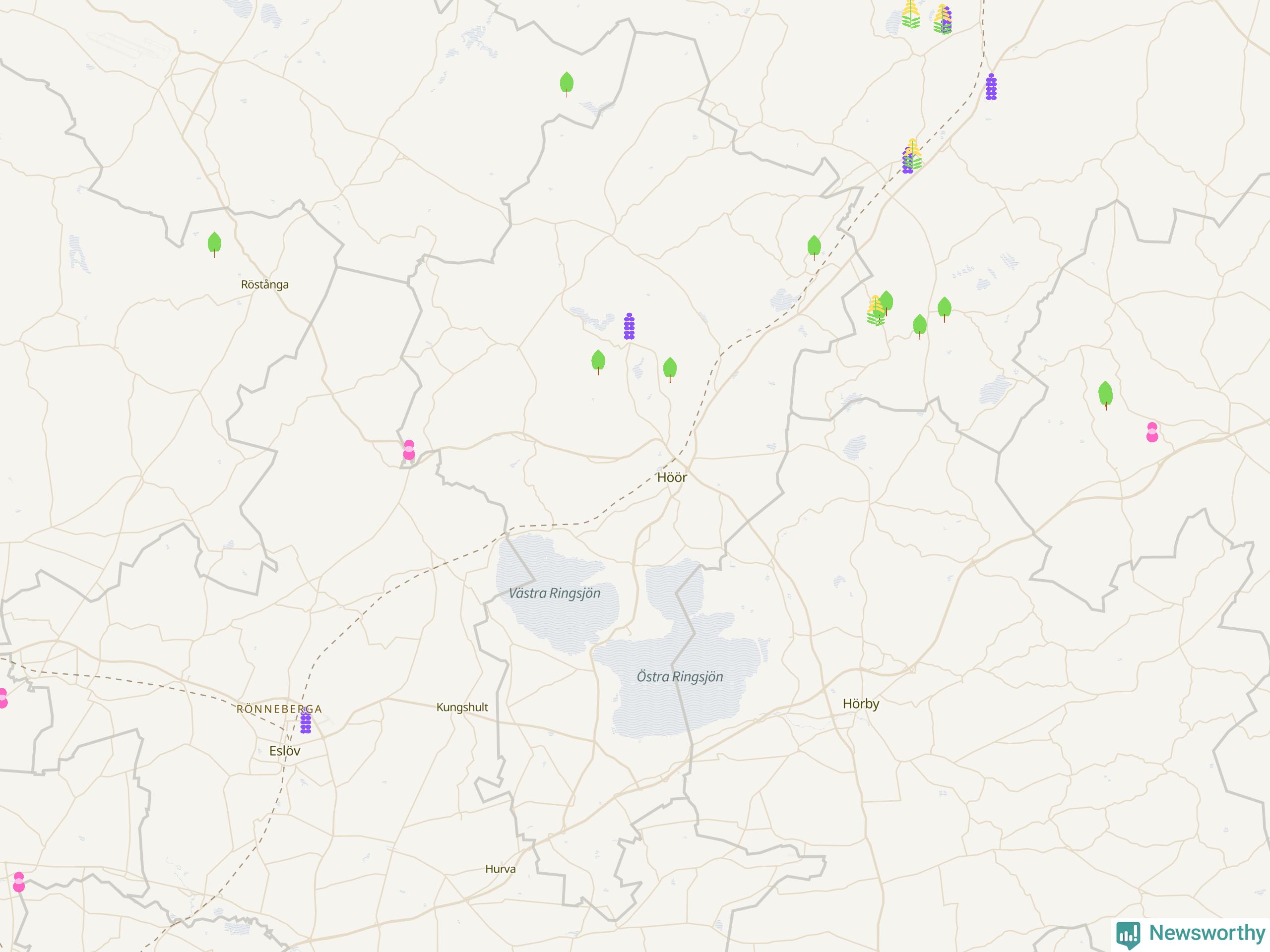 96 av de 208 högriskarterna har observerats i Höörs kommun minst en gång under de senaste 20 åren, enligt data från Artportalen. 24 av dem har rapporterats sedan årsskiftet.