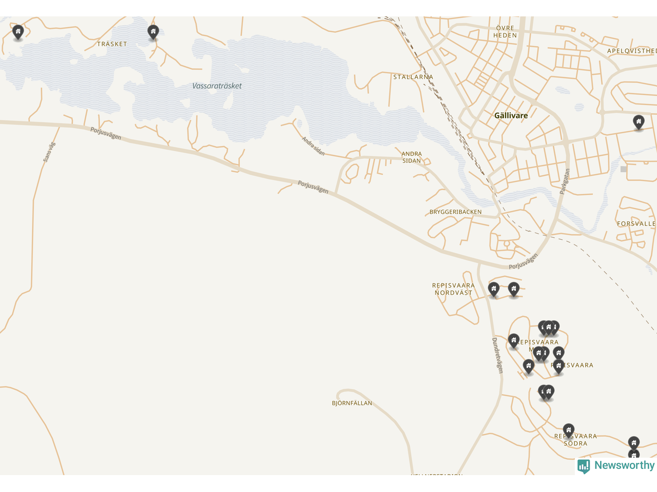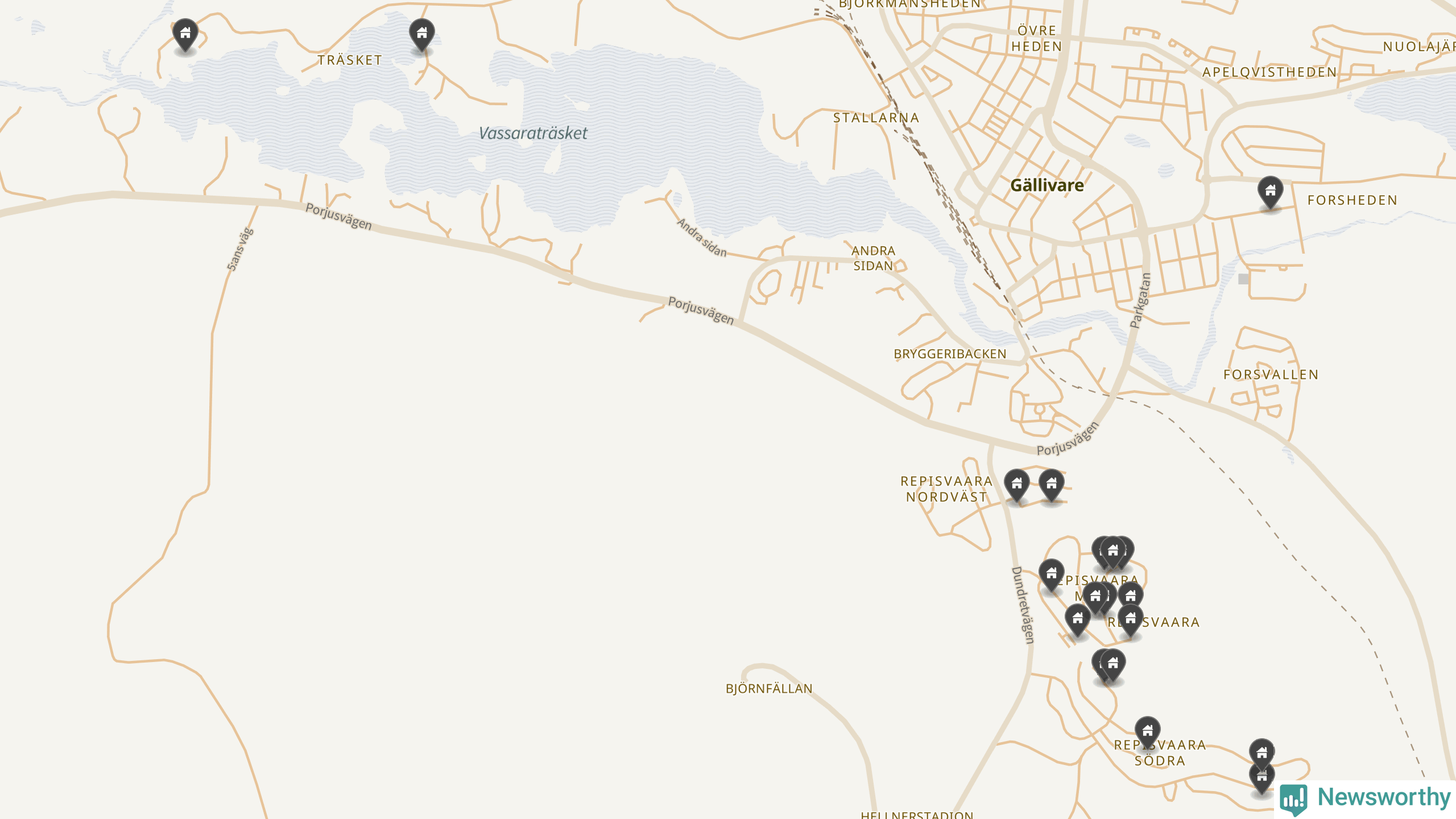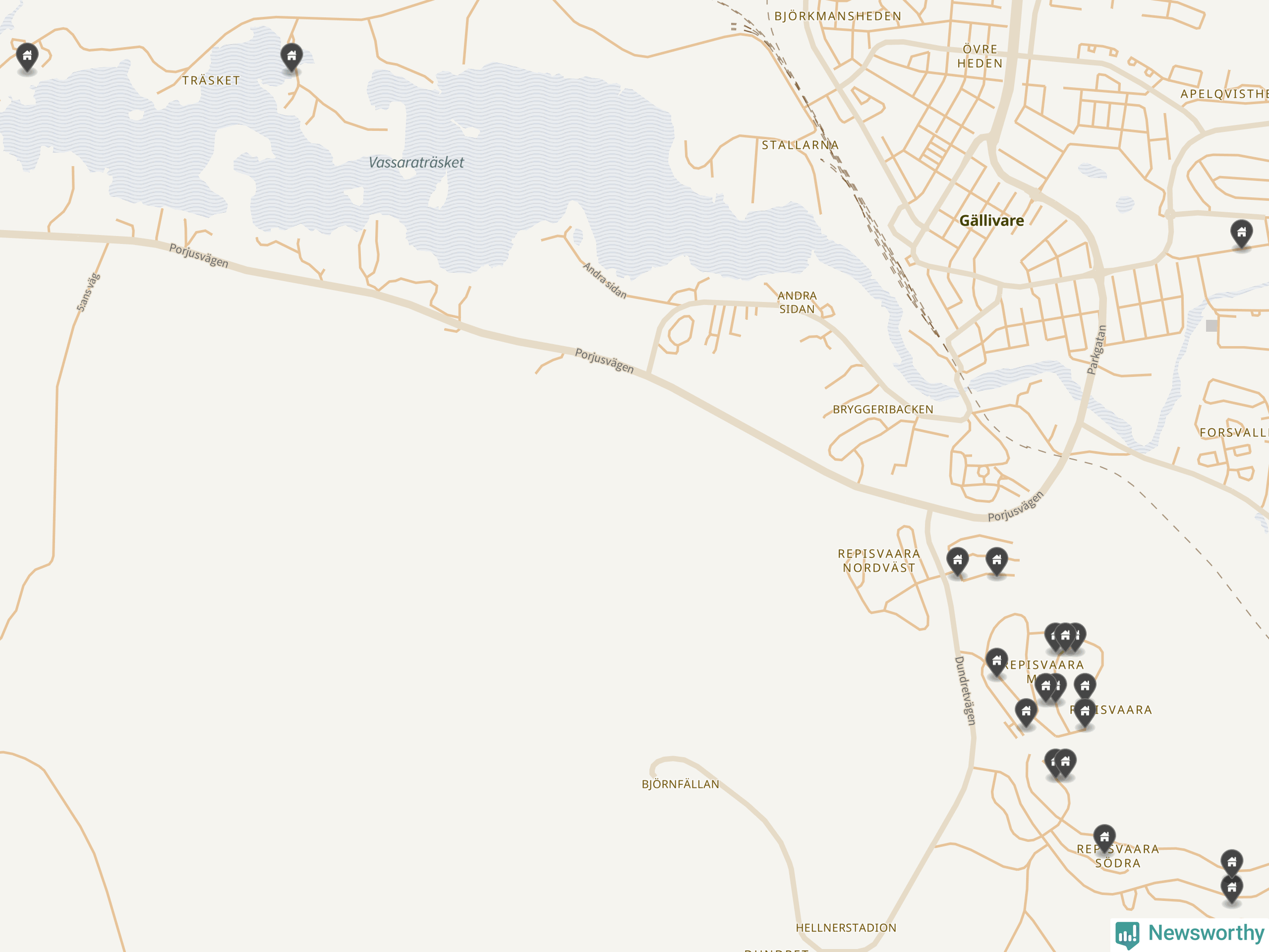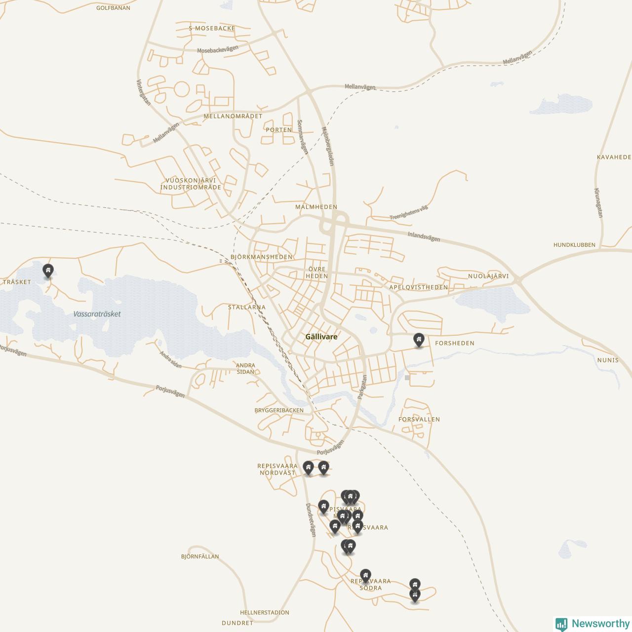 De 100 högst taxerade småhusfastigheterna i Gällivare har ett snittvärde på 4,1 miljoner kronor, vilket är omkring två miljoner lägre än snittet för alla kommuners 100 högst taxerade småhus. Det visar Newsworthys genomgång av kommunernas högst taxerade småhusfastigheter, som sammanställts med hjälp av data från The intelligence company.
