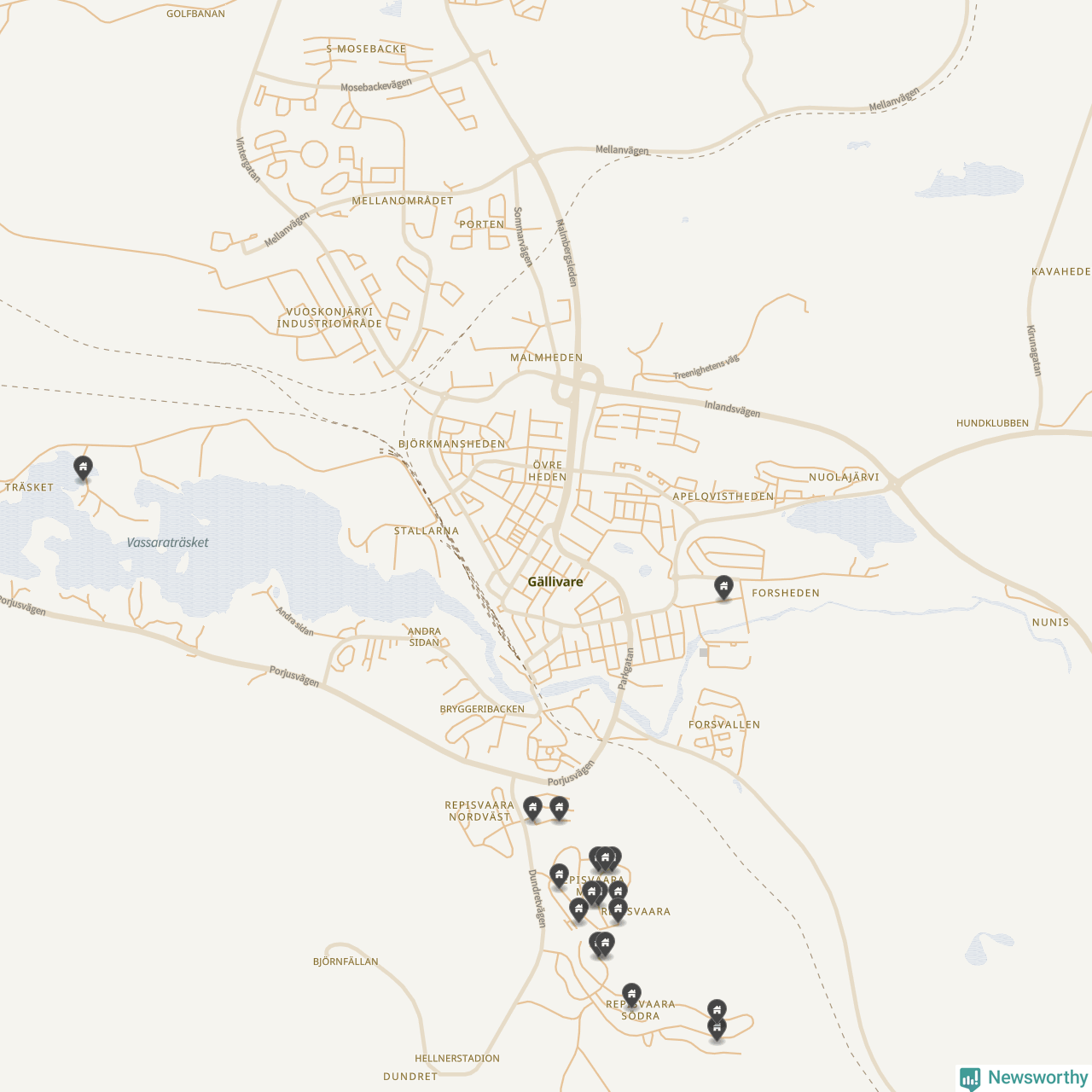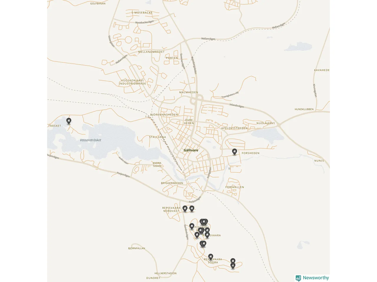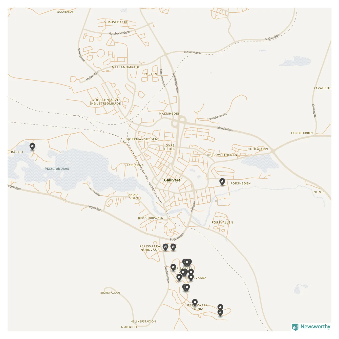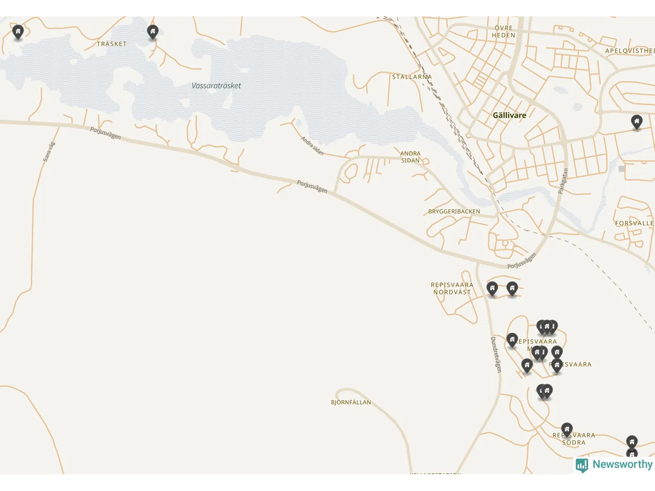 De 100 högst taxerade småhusfastigheterna i Gällivare har ett snittvärde på 4,1 miljoner kronor, vilket är omkring två miljoner lägre än snittet för alla kommuners 100 högst taxerade småhus. Det visar Newsworthys genomgång av kommunernas högst taxerade småhusfastigheter, som sammanställts med hjälp av data från The intelligence company.