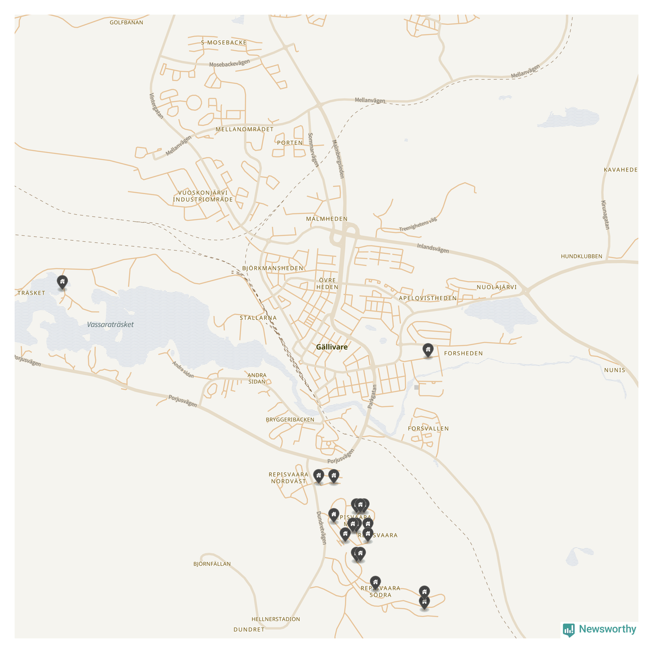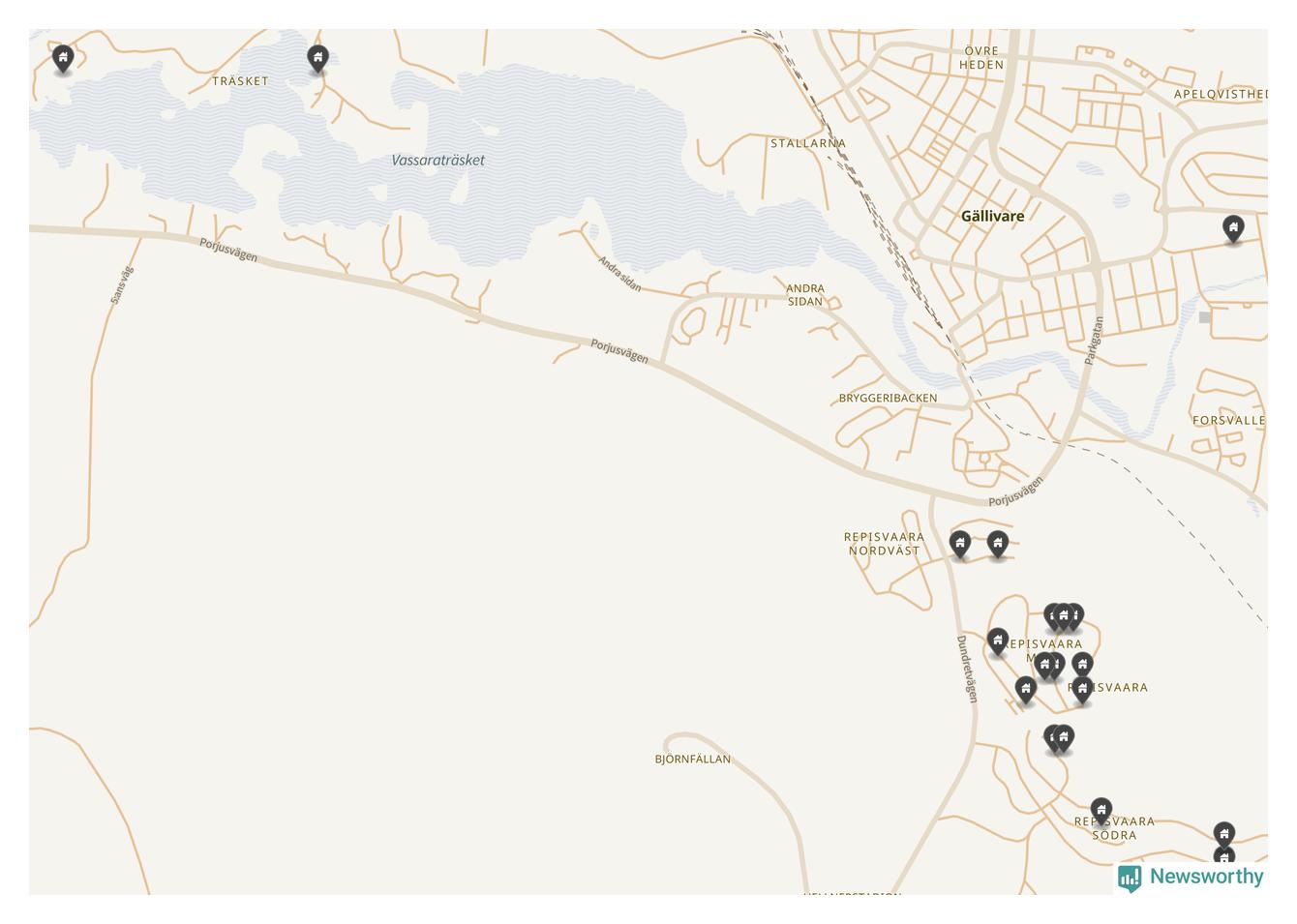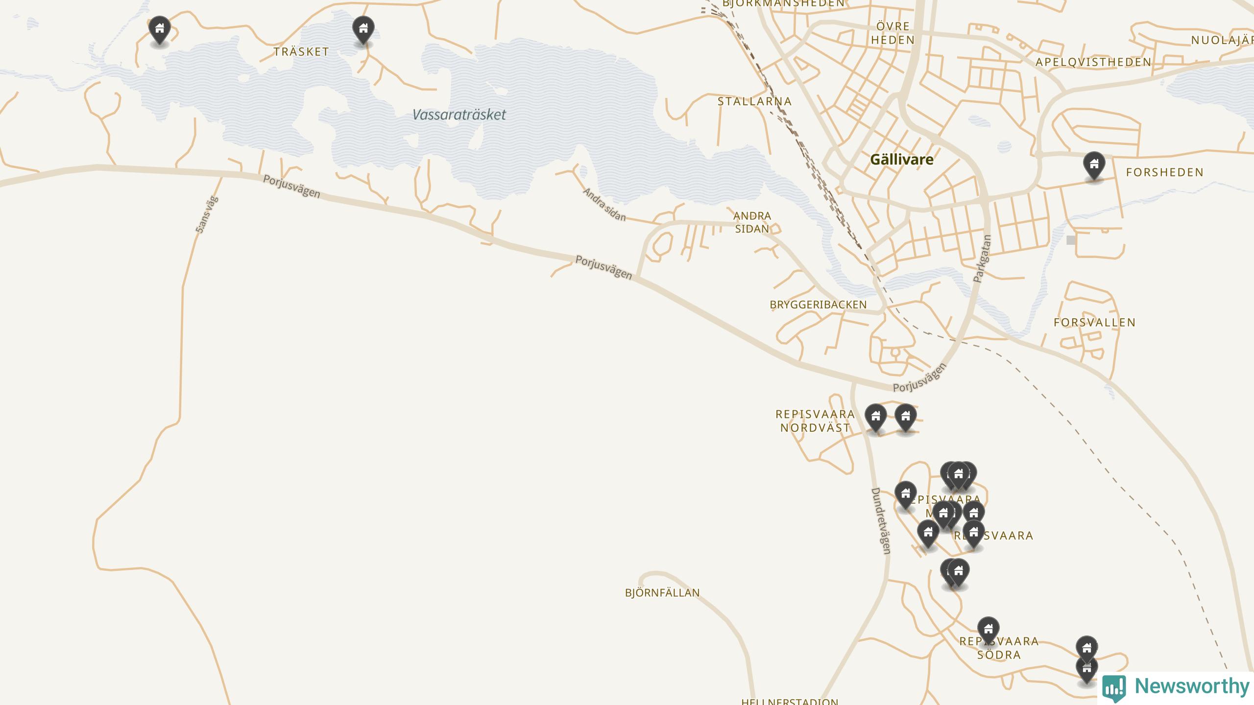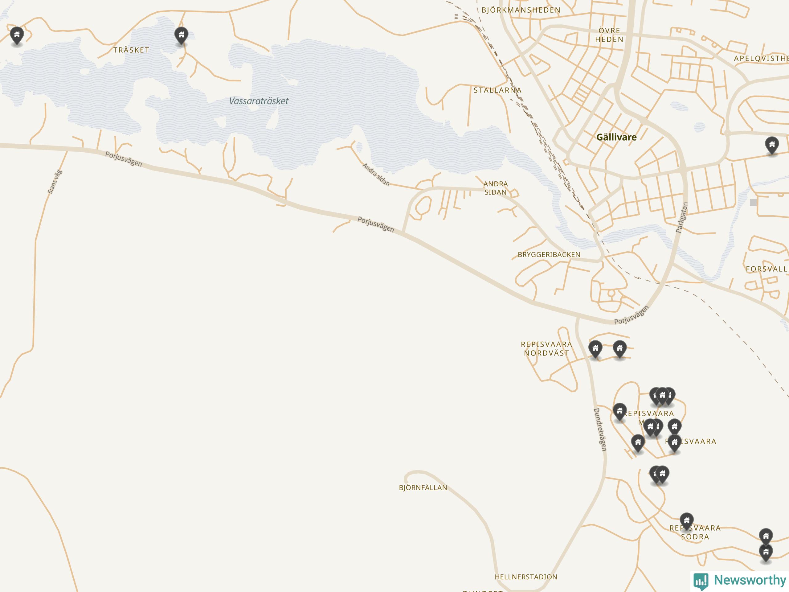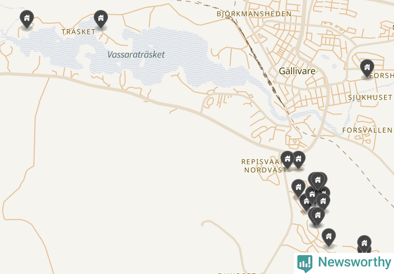 90 | Gällivare Gällivare 4:79 | Slåtterslingan 22 | 3,7 miljoner | 1 141 m² | Visa |