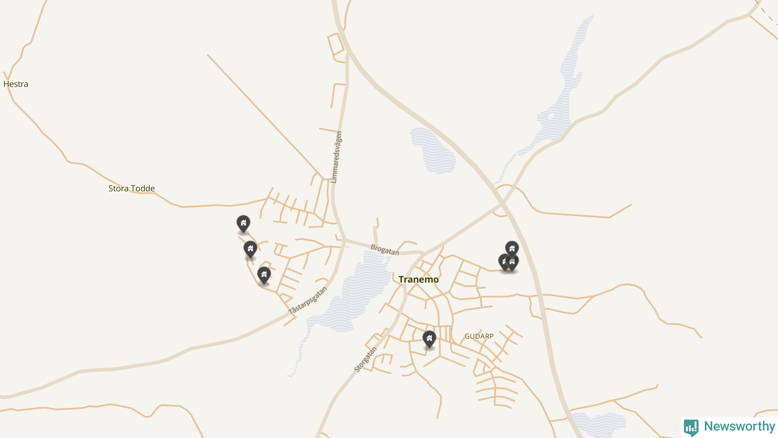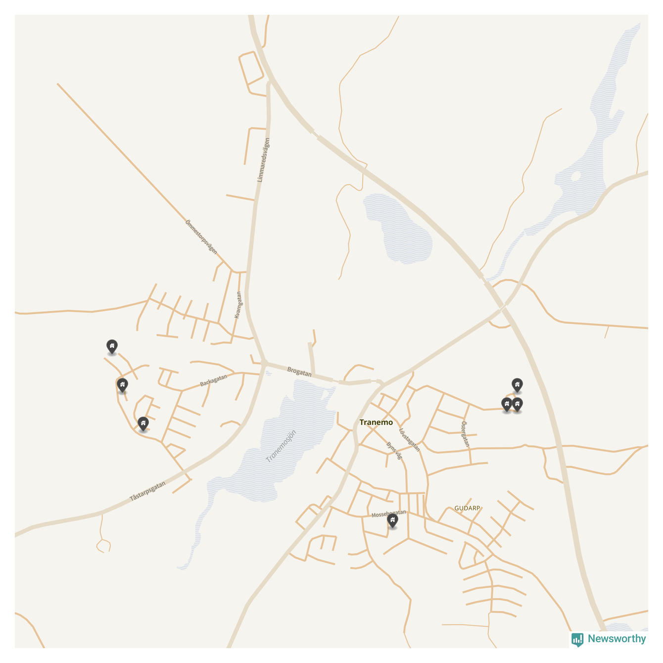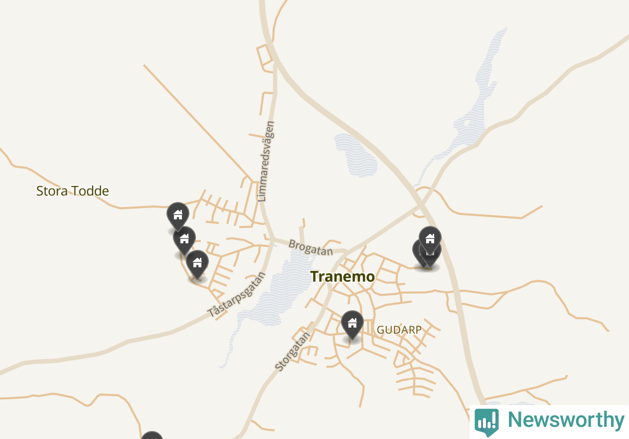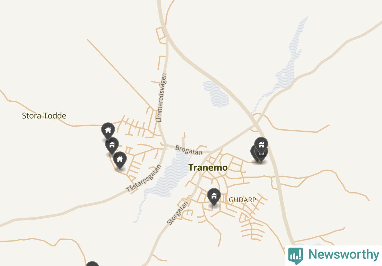 De 100 högst taxerade småhusfastigheterna i Tranemo har ett snittvärde på 2,2 miljoner kronor, vilket är omkring fyra miljoner lägre än snittet för alla kommuners 100 högst taxerade småhus. Det visar Newsworthys genomgång av kommunernas högst taxerade småhusfastigheter, som sammanställts med hjälp av data från The intelligence company.