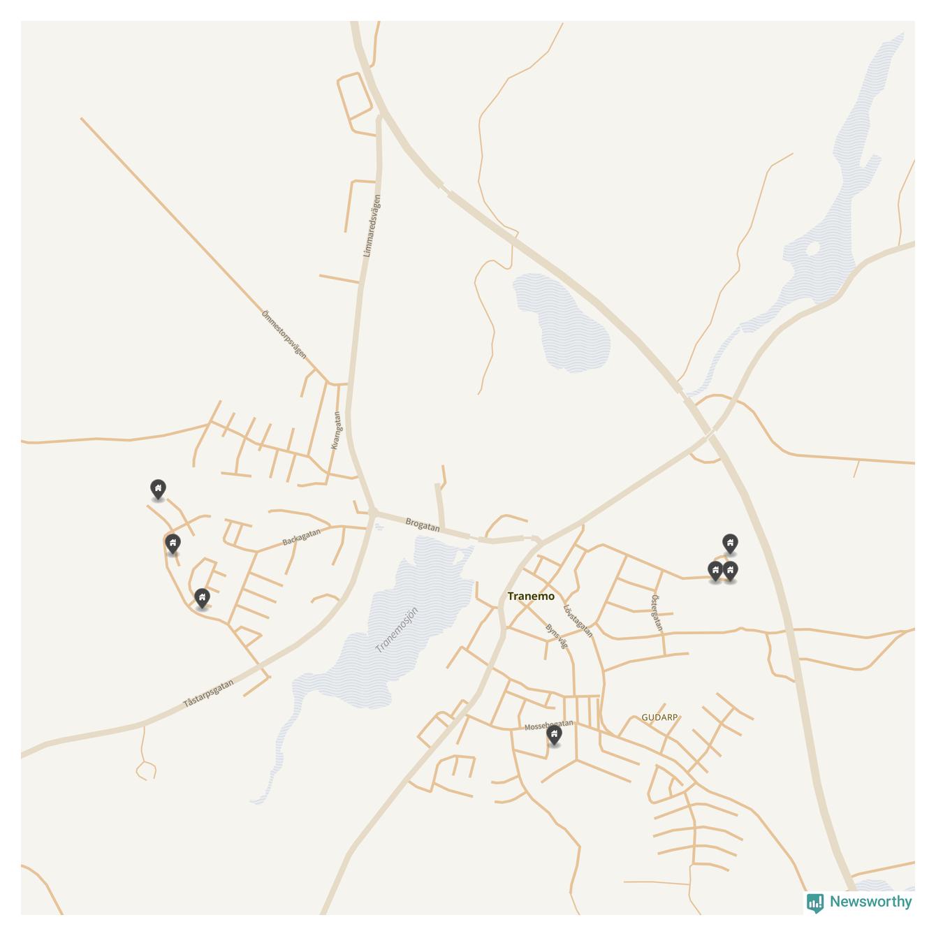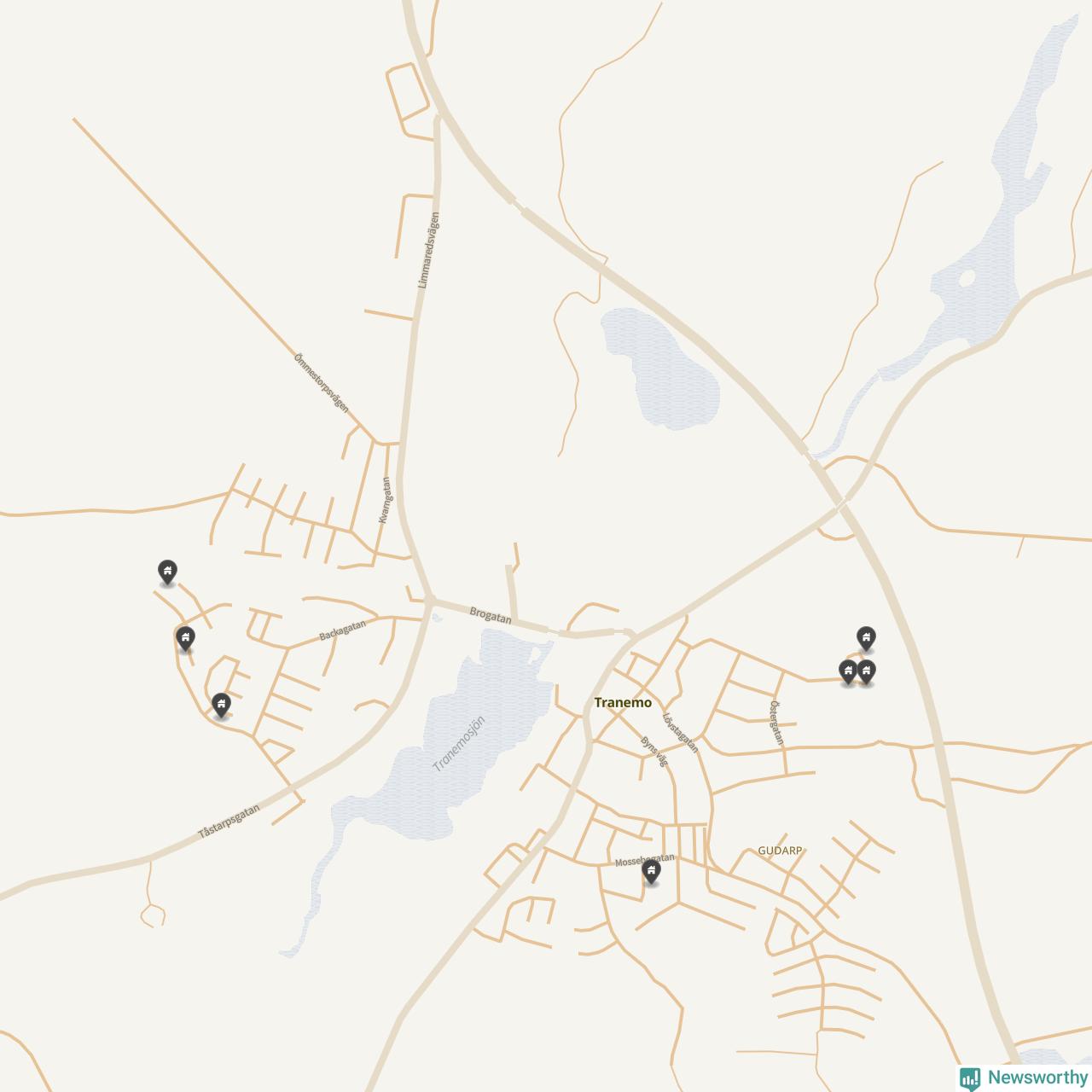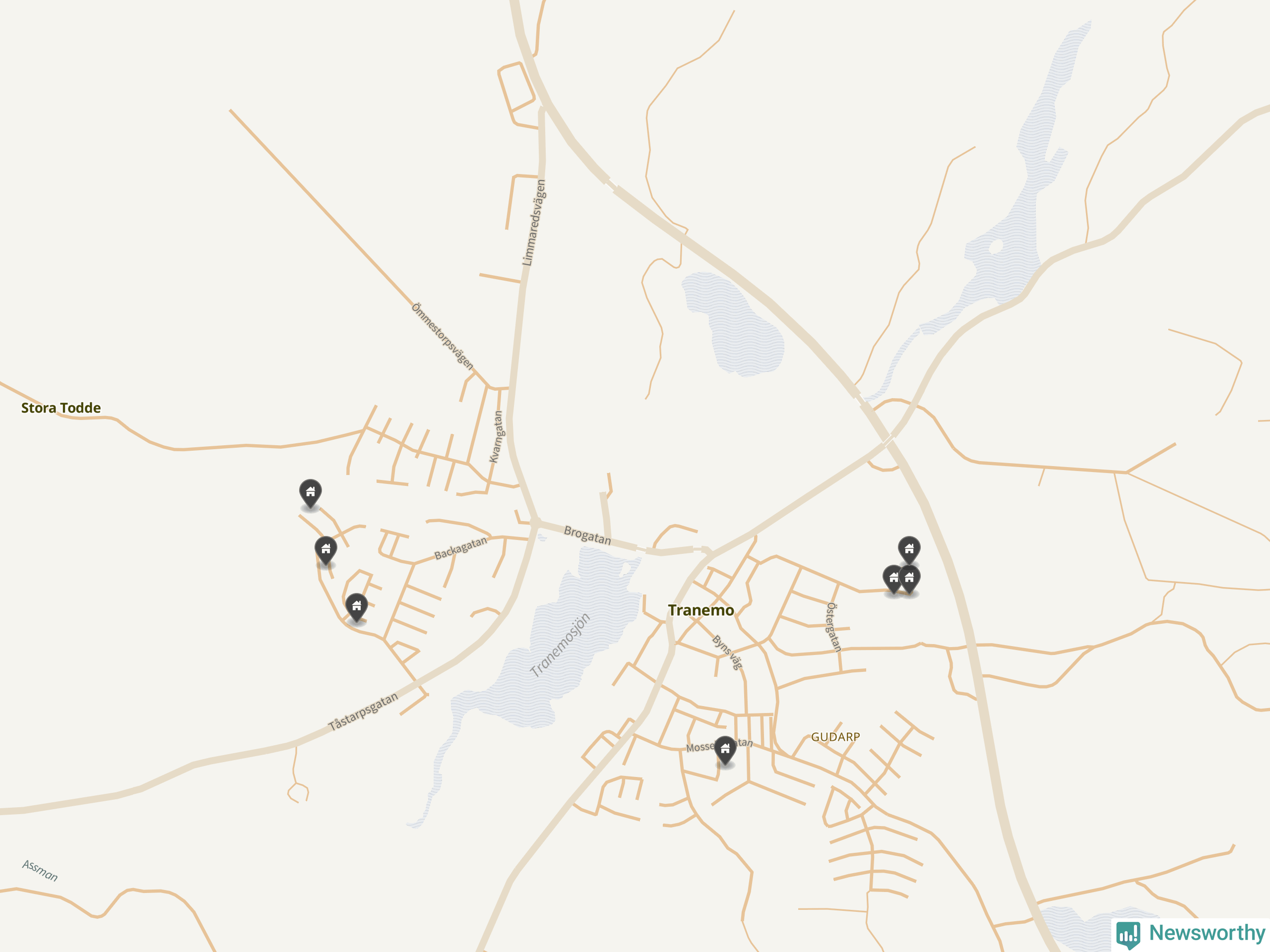 De 100 högst taxerade småhusfastigheterna i Tranemo har ett snittvärde på 2,2 miljoner kronor, vilket är omkring fyra miljoner lägre än snittet för alla kommuners 100 högst taxerade småhus. Det visar Newsworthys genomgång av kommunernas högst taxerade småhusfastigheter, som sammanställts med hjälp av data från The intelligence company.