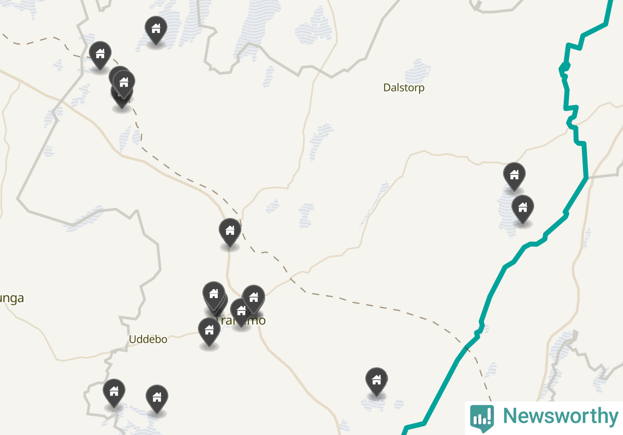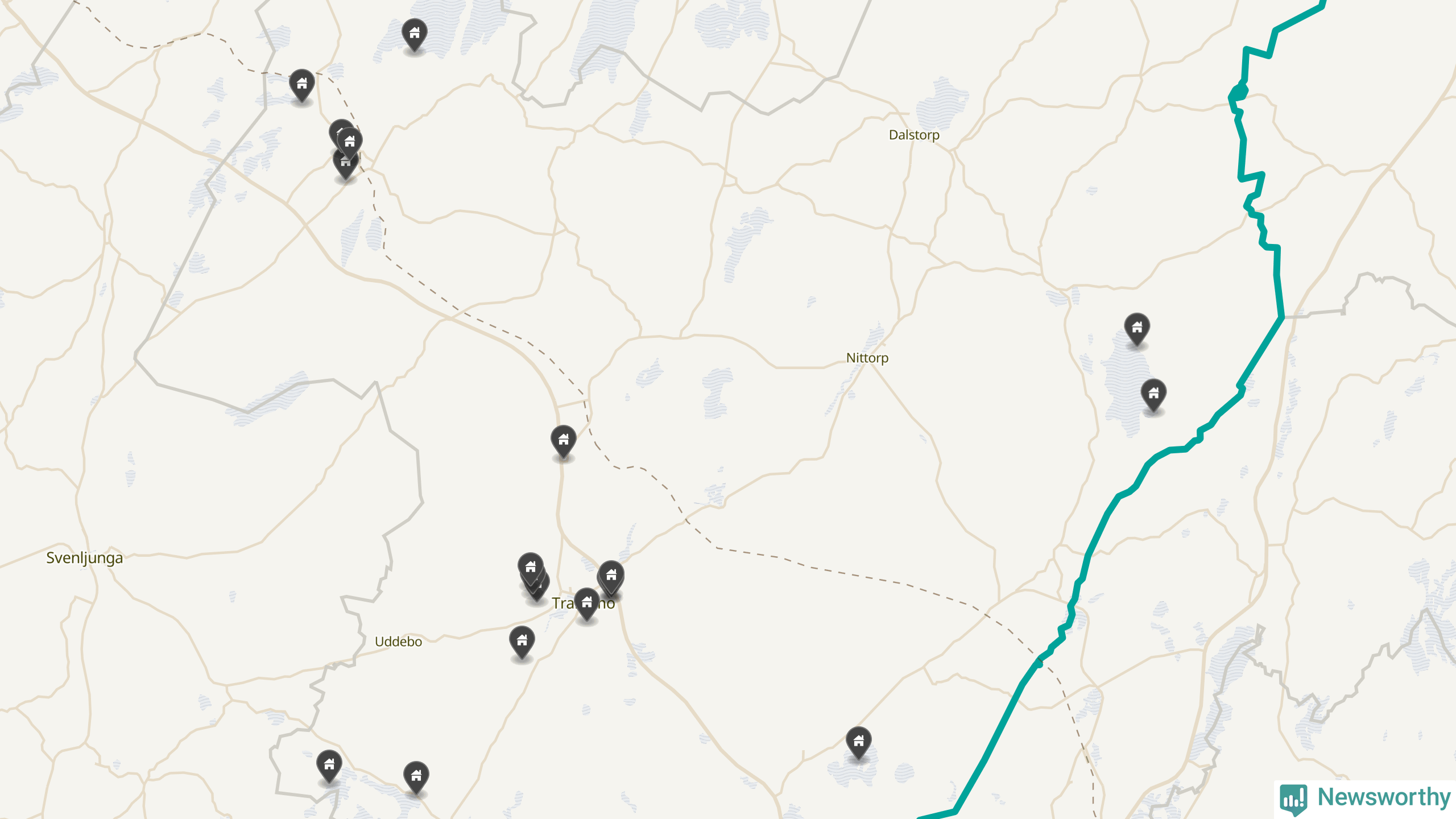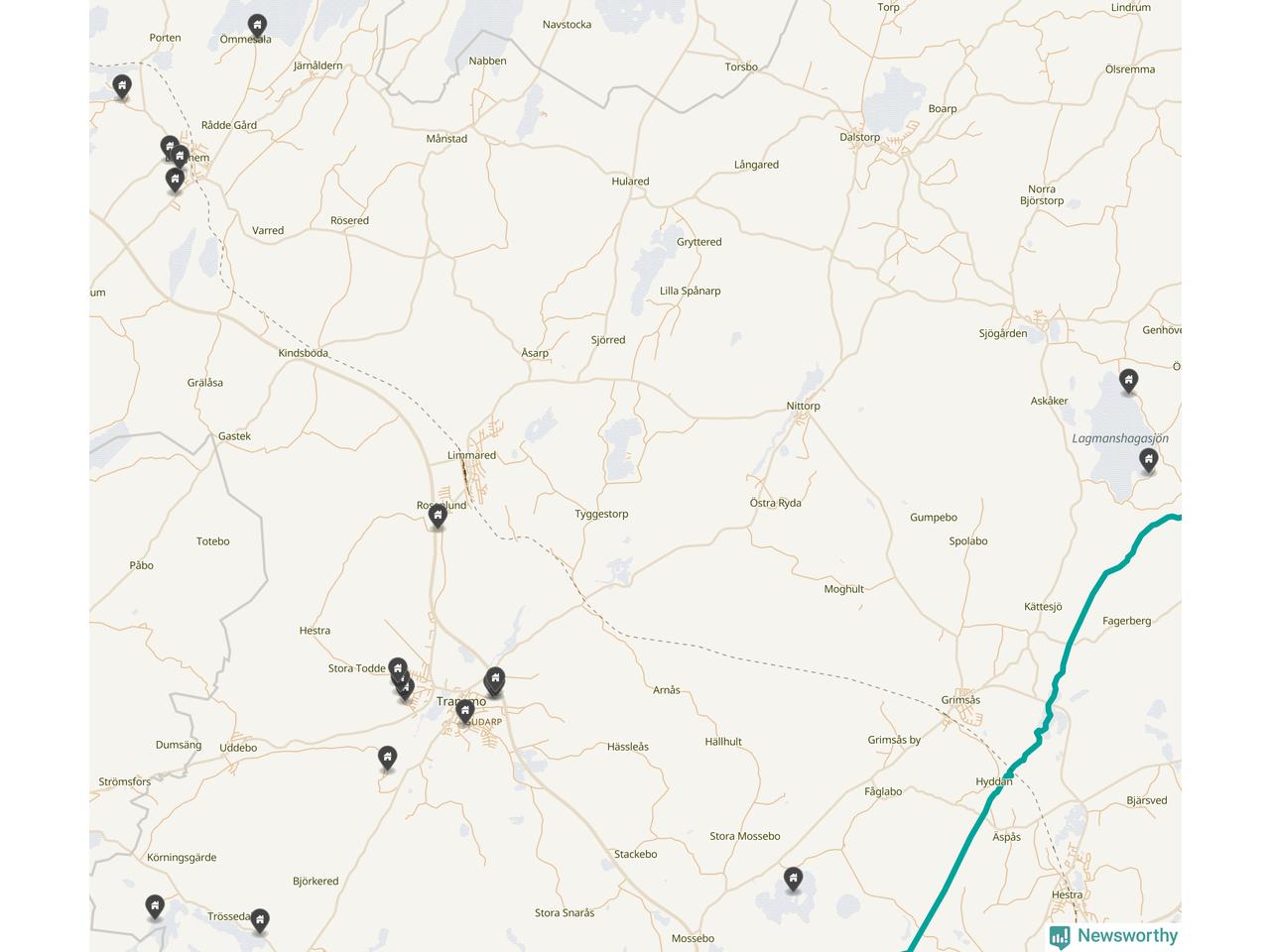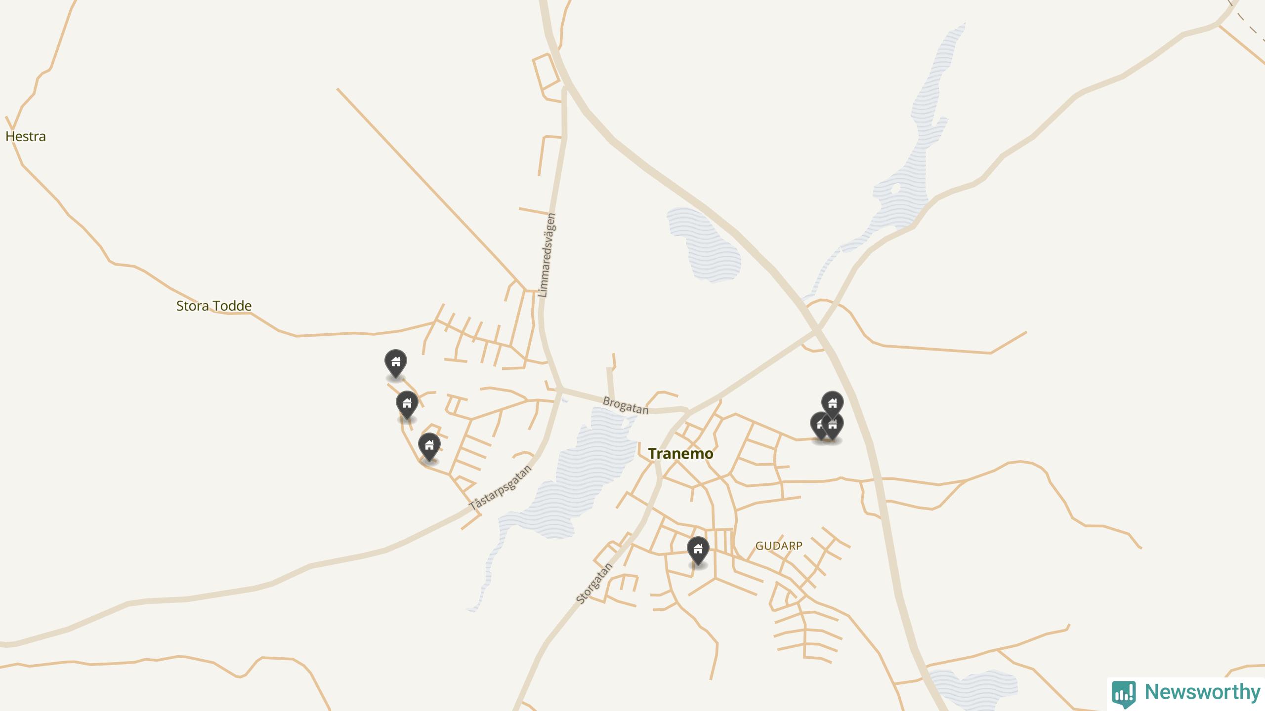 De 100 högst taxerade småhusfastigheterna i Tranemo har ett snittvärde på 2,2 miljoner kronor, vilket är omkring fyra miljoner lägre än snittet för alla kommuners 100 högst taxerade småhus. Det visar Newsworthys genomgång av kommunernas högst taxerade småhusfastigheter, som sammanställts med hjälp av data från The intelligence company.