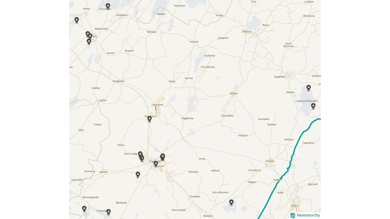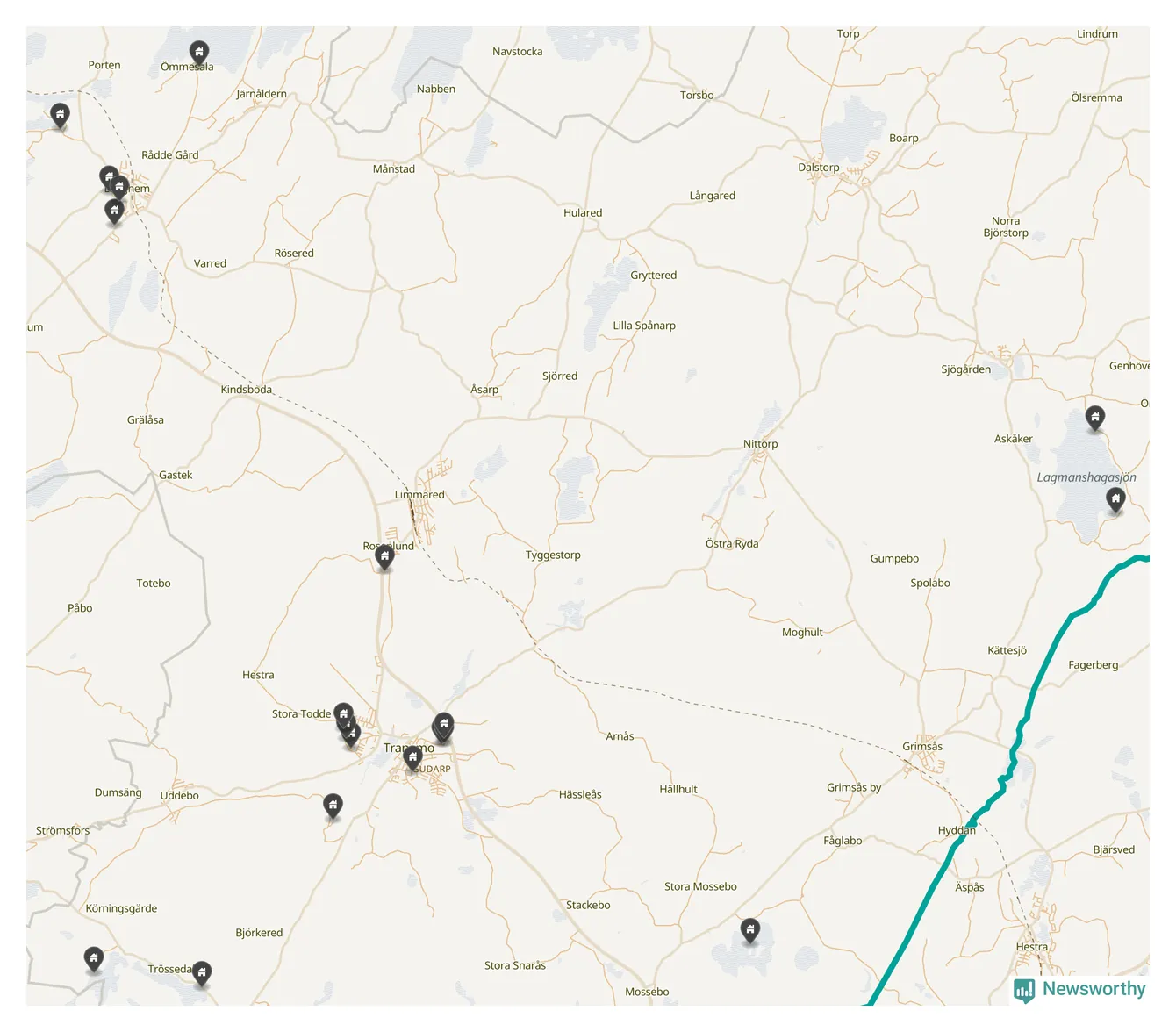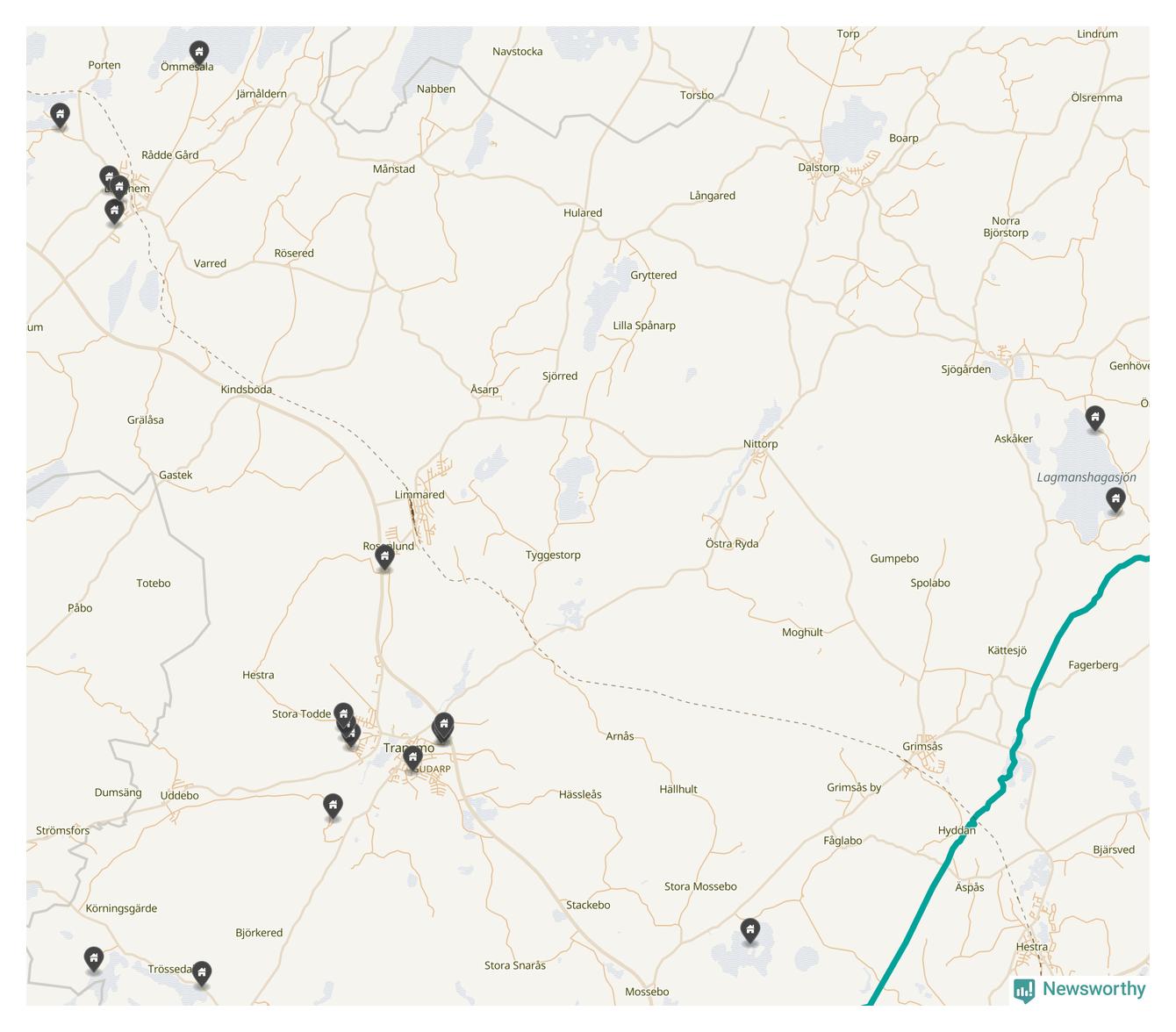 9Tranemo Gudarp 24:186Kornstigen 52,7 miljoner8 670 m²Visa